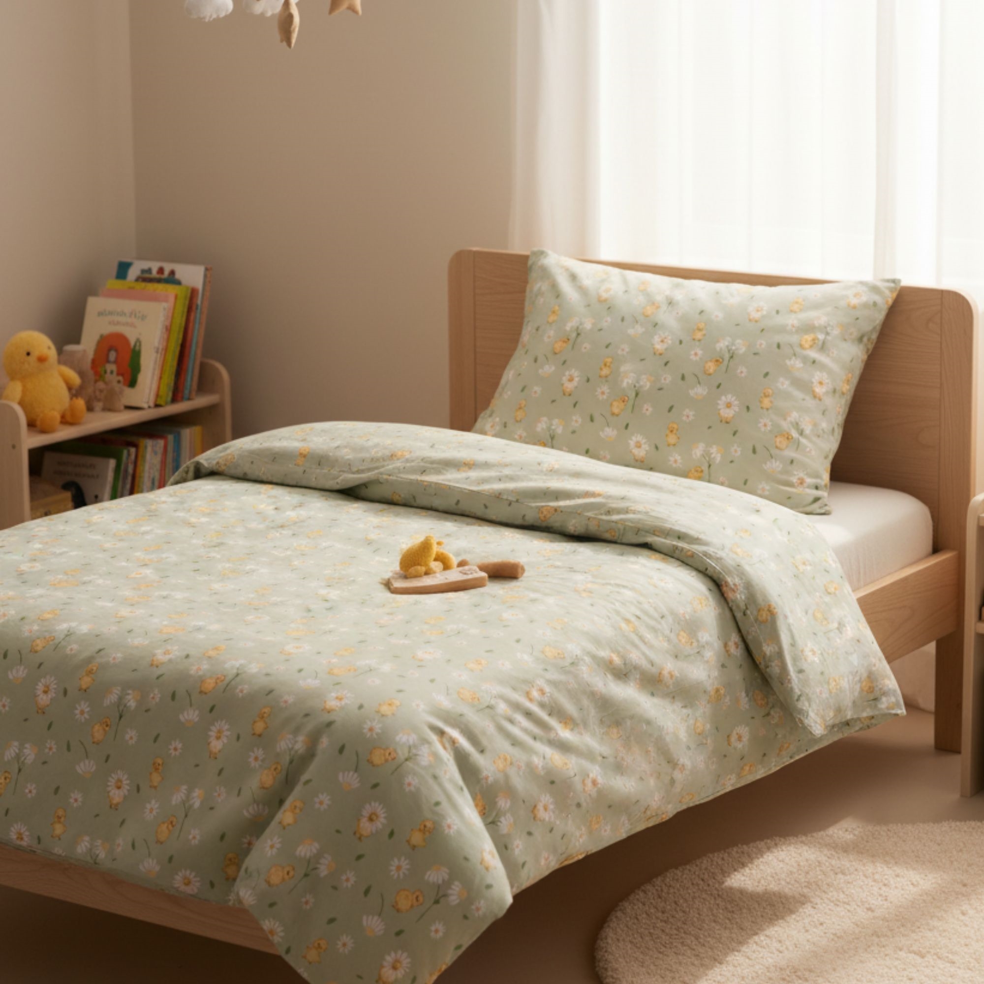 By Mats junior-beddengoed 100x140 cm - groen met eendjes en bloemen