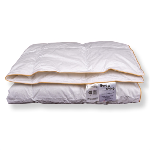 Voorpagina »Inrichting » De kinderkamer » Juniordeken 100x140 cm Allergievriendelijke junior zomerdeken 100x140 cm - Lichte zomerdeken met witte Europese ganzendons - Borg Living baby ganzendonsdeken Bespaar53% Borg Living 204,4995,49EURBespaar 109,- Gratis verzending voor dit artikelOp voorraad Aantal In winkelwagen Bekijk meer van:Borg Living Artikelnr:BL240-8 Lees onze dekengids Lees over onderhoud van dekens en kussens Bekijk ons grote assortiment kussens Heb je vragen over het product? Licht, luchtig & ademendSchone, witte ganzendonsAllergievriendelijk Afmeting: 100x140 cm Type: Zomerdeken - koel Vulling: 90% nieuwe Europese witte ganzendons Vulgewicht: 130g Draagkracht: Meer dan 12 (oude meetmethode) CUIN: 800 (nieuwe meetmethode) Tijk: 100% katoenen cambric 80/80 Constructie: 5x7 kassettedecke met gouden bies Merk: Borg Living Wassen: 60° (Belangrijk enzymvrij wasmiddel te gebruiken hier) Drogen: Drogen met droogballen Garantie: 5 jaar Certificering: NOMITE - Vrij van huisstofmijt Certificering: Downafresh - 100% zuivere dons Certificering: Downpass - Hoogste dierenethische normen Certificering: STANDARD 100 by OEKO-TEX® (BJ025 147484 TESTEX). Uw garantie dat het product vrij is van schadelijke chemicaliën. Luchtige en lichte junior deken Een luchtige en lichte junior zomerdeken gevuld met nieuwe, witte, Europese ganzendons. De fijne dons en de dichtgeweven katoenen cambric tijk zorgen voor een deken die zijdezacht aanvoelt en licht om het lichaam van het kind valt. Met een draagkracht van meer dan 12 krijgt u een deken van hoge kwaliteit die de ideale balans biedt tussen ademend vermogen en lichtheid. Katoenen cambric tijk De zachte tijk van 100% katoenen cambric is geweven in kleine, dichte cassettevakken, die zorgen voor een gelijkmatige verdeling van de dons en optimale ventilatie gedurende de nacht. De dichte weving zorgt er ook voor dat de junior deken NOMITE gecertificeerd is, omdat huisstofmijt niet door de tijk kan dringen, wat de deken ook geschikt maakt voor allergiepatiënten. Bekijk hier ons grote assortiment junior beddengoed in 100x140 cm Een reeks certificeringen Deze serie zomerdekens met ganzendons heeft een reeks certificeringen die uw garantie zijn voor een goede en hygiënische kwaliteitsdeken. De deken is zowel NOMITE- als Downafresh gecertificeerd, wat garandeert dat de dons is gereinigd en verwerkt volgens strenge Europese normen en afkomstig is van producenten die dierenwelzijnsregels naleven. Voor gemakkelijke opslag wordt de deken geleverd in een praktische opbergtas, zodat u de eigenschappen van de deken kunt beschermen en behouden wanneer deze niet in gebruik is. Zorg er wel voor dat de deken volledig droog is voordat u deze opbergt - eventueel na een ronde in de droger. Het Deense merk Borg Living produceert exclusieve series dekens, kussens en woontextiel voor uw huis. Het merk, opgericht in 2013, staat onder andere bekend om hun vernieuwende kwaliteit en design. De fantastische producten van Borg Living dragen bij aan een optimale en comfortabele nachtrust en verfraaien uw huis met moderne en stijlvolle woonaccessoires. Terug naar Juniordeken 100x140 cm