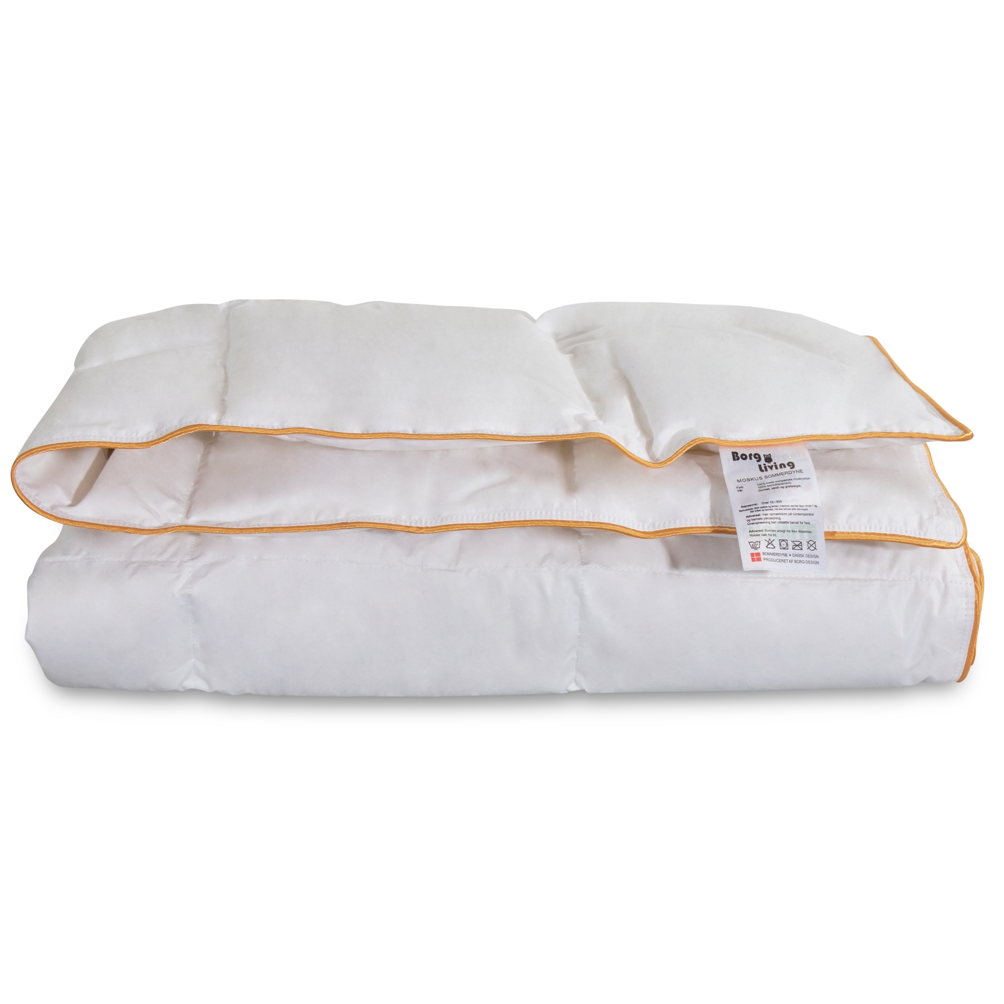 Voorpagina »Inrichting » De kinderkamer » Baby dekbed 70x100 cm Baby zomerdekbed - 100% Zuiver wit muskusdons - 70x100 cm - Licht en luchtig donsdekbed voor baby van Borg Living Bespaar56% Borg Living 108,9947,99EURSpar 61,- Op voorraad Aantal In winkelwagen Bekijk meer van:Borg Living Artikelnr:BL230-7 Lees onze dekbedgids Lees over het onderhoud van dekbedden en kussens Bekijk ons uitgebreide assortiment kussens Heb je vragen over het product? Luxe zomerdekbed - Licht en luchtigNOMITE gecertificeerd - Hypoallergeen100% puur witte muskusdons Grootte: 70x100 cm baby dekbed Type: Zomerdekbed - Koel dekbed Vulling: 100% zuiver wit Europees muskusdons Merk: Borg Living Draagvermogen: meer dan 12 (oude meetmethode) Draagvermogen: 800 (nieuwe meetmethode) Vulgewicht: 80 g Bolster: 100% superkatoen cambric 80\/80 Constructie: 3x5 doorgestikt cassettendekbed met gouden pipingrand Wassen: 60° (Belangrijk om enzymvrij wasmiddel te gebruiken) Drogen: Droger met droogballen Garantie: 5 jaar Certificering: NOMITE - Huisstofmijtvrij Certificering: DOWNAFRESH - 100% puur dons Certificering: STANDARD 100 by OEKO-TEX® (BEHO-062282) \/ HKD 18299 TESTEX Certificering: Downpass - Hoogste dierenethiek (06458131) Bekijk hier al onze kussens voor kinderen Heerlijk koel en luchtig baby zomerdekbed met 100% Europees muskusdons - perfect voor de warme zomernachten. Het dekbed is extra licht en luchtig en wordt daarom aanbevolen voor kinderen die het 's nachts warm hebben en de neiging hebben te zweten tijdens het slapen. Het bolster van het dekbed is doorgestikt, wat betekent dat het dekbed kleine kanaaltjes tussen de cassettes heeft die de luchtcirculatie kunnen helpen verbeteren. Dit zorgt voor een optimale balans tussen warmte en ademend vermogen. Het 100% zachte, fijne eiderdonsachtige muskusdons van het dekbed maakt het isolerende vermogen uniek. Dekbedden met 100% dons zijn vaak duurzamer dan gemengde dekbedden. Met de juiste verzorging kunnen ze vele jaren meegaan zonder hun zachtheid of isolerend vermogen te verliezen. Het dekbed heeft een hoog draagvermogen van meer dan 12, wat betekent dat het dons warmte vasthoudt en overtollig vocht afvoert - hoe hoger het draagvermogen, hoe beter de kwaliteit. Het zachte en lichte dons zorgt ervoor dat het dekbed gemakkelijk om het lichaam valt. Het dekbed is in cassettes genaaid, zodat het dons gelijkmatig in het dekbed verdeeld wordt. Het zomerdekbed heeft een heerlijk zachte bolster gemaakt van 100% super katoen cambric, die zo dicht geweven is dat er geen huisstofmijt doorheen kan komen. Dit zomerdekbed heeft diverse certificeringen, wat een garantie is voor een kwalitatief en hygiënisch dekbed. Het dekbed is NOMITE gecertificeerd, wat betekent dat het uitermate geschikt is voor mensen met allergieën, omdat het vrij is van huisstofmijt. Het is ook DOWNAFRESH gecertificeerd – deze certificering garandeert dat de dons die in de productie worden gebruikt, zijn gewassen en gereinigd volgens de strenge Europese normen. De Downafresh-certificering garandeert bovendien dat het ingezamelde dons voldoet aan de wetgeving met betrekking tot goed dierenwelzijn. Het Deense merk Borg Living produceert exclusieve series dekbedden, kussens en huishoudtextiel voor jouw woning. Het merk, opgericht in 2013, staat onder andere bekend om hun innovatieve aanpak in kwaliteit en design. De fantastische producten van Borg Living dragen bij aan een optimale en comfortabele nachtrust en decoreren je huis met moderne en stijlvolle woonaccessoires. Terug naar Baby dekbed 70x100 cm