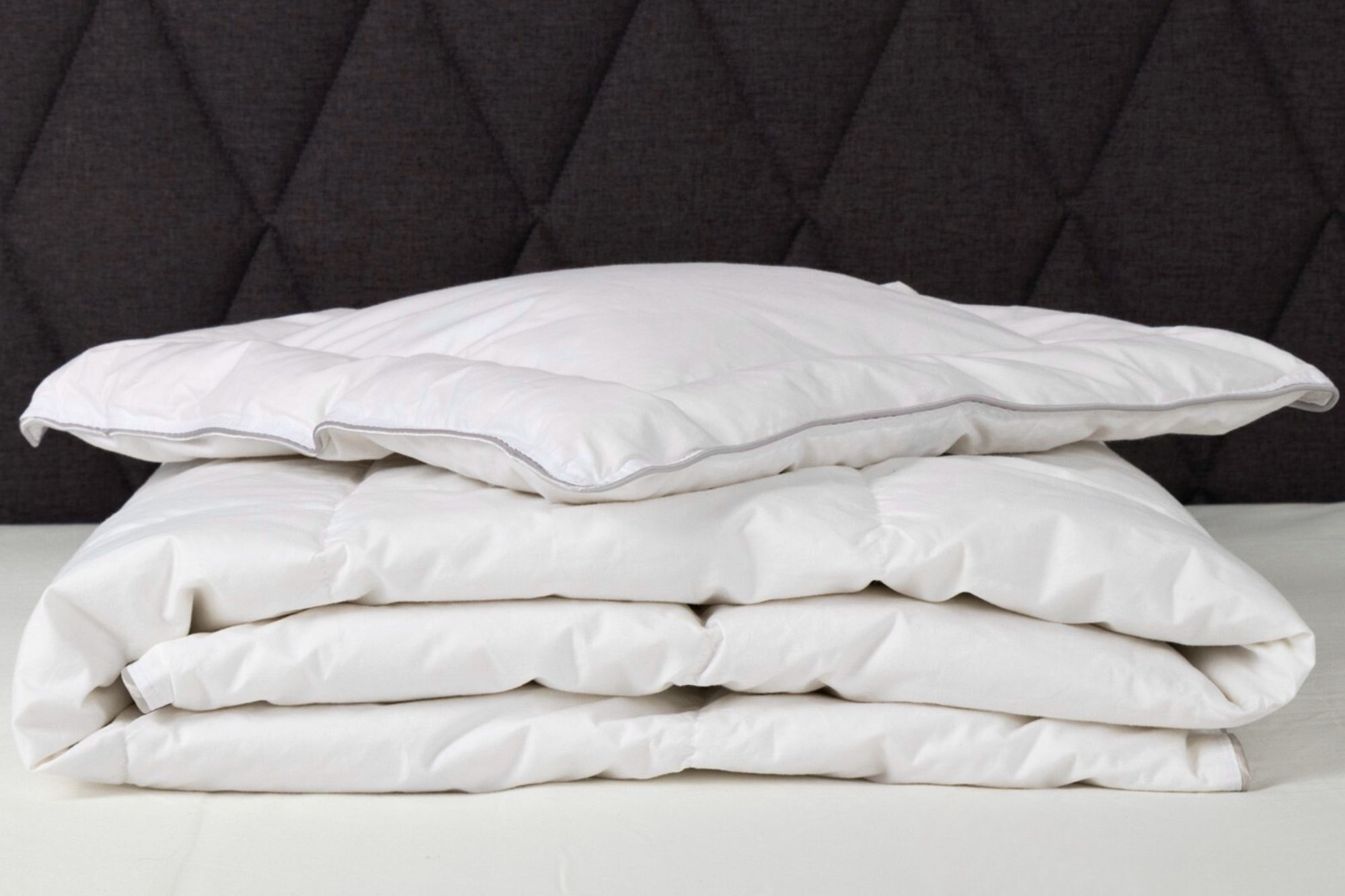 De zachte omslag van 100% katoencambric is donsbestendig en fijn dicht geweven in cassettes, zodat huisstofmijten niet kunnen doordringen en de donsveren de beste isolatie en meest gelijkmatige warmteverdeling hebben. Deze dichte weving zorgt er ook voor dat het babydeken NOMITE gecertificeerd is, omdat huisstofmijten niet door de omslag kunnen dringen, wat het deken ook geschikt maakt voor allergiepatiënten.