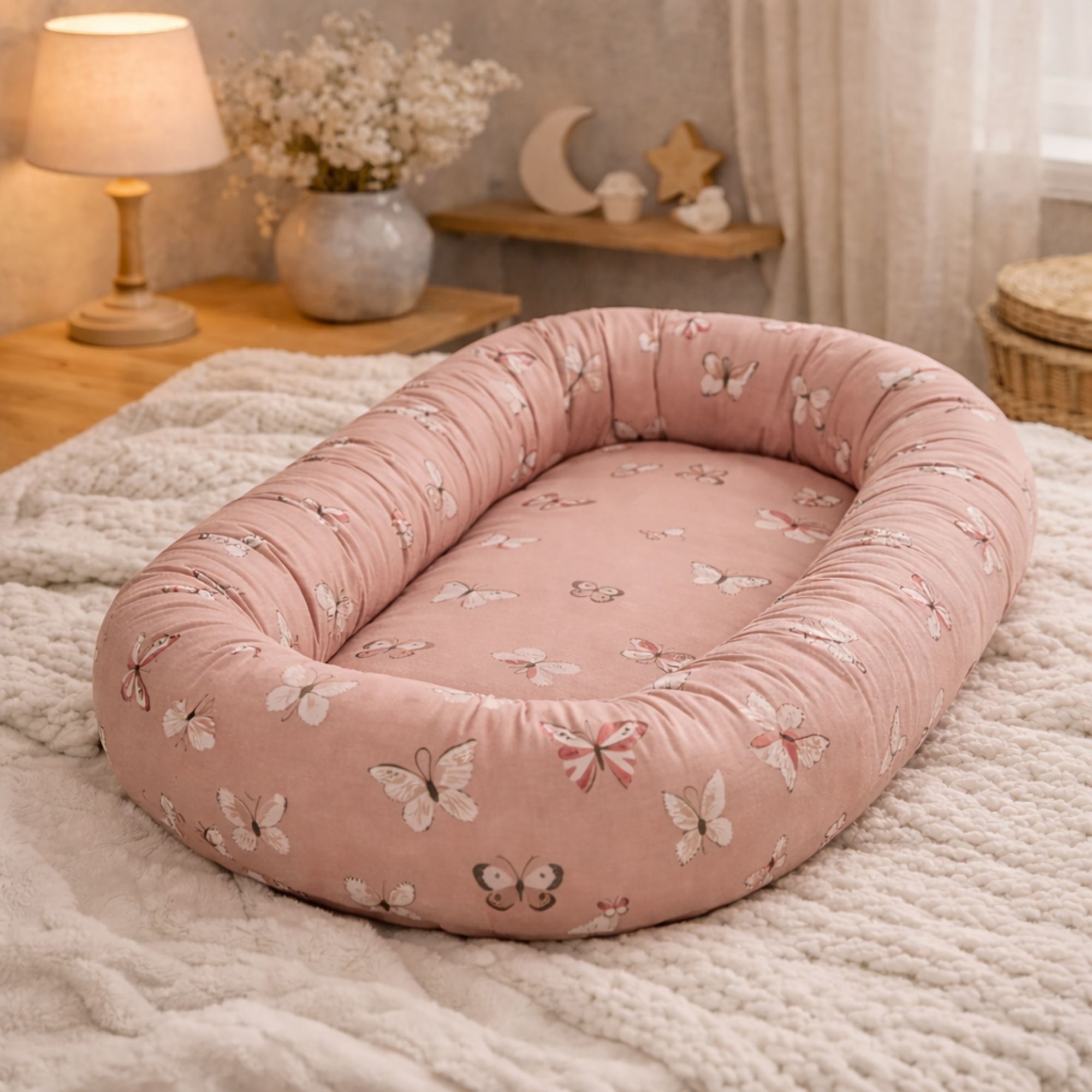 Comfortabel en veilig babynest 82x46 cm in roze met vlinders