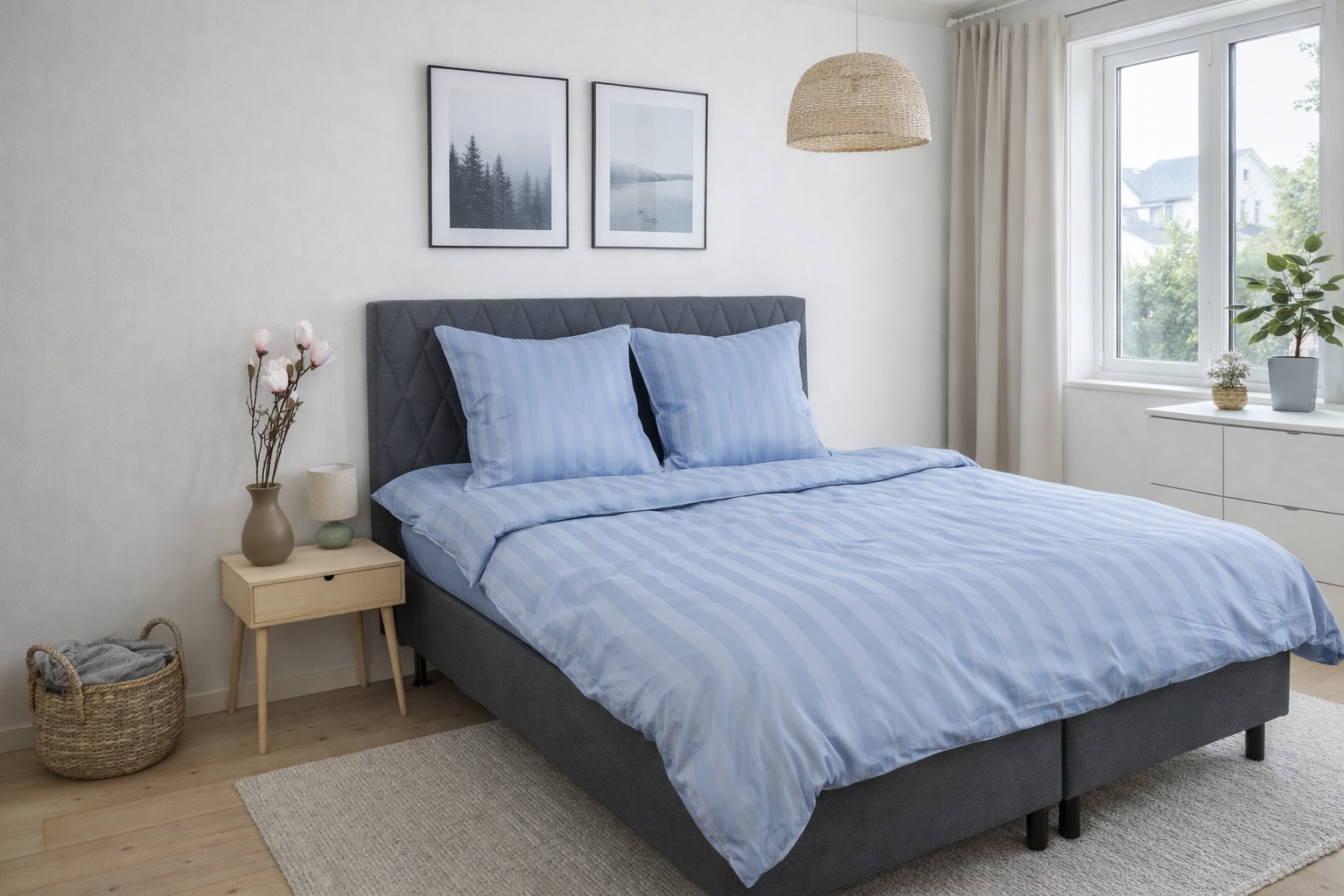 Voorpagina »Beddengoed » Eenpersoons beddengoed » Extra lang beddengoed 140x220 cm Bamboe beddengoed - 140x220 cm - 100% natuurlijk bamboe - Blauw, jacquard geweven beddenset met strepen Bespaar60% Nordstrand Home 136,4954,49EURSpar 82,- Op voorraad Selecteer maat Selecteer variant Aantal In winkelwagen Bekijk meer van:Nordstrand Home Artikelnr:943-2 Lees onze beddengoedgids Bekijk ons grote assortiment lakens Bekijk ons grote assortiment dekbedden 140x200 Heb je vragen over het product? 100% natuurlijk bamboeZweetabsorberend en ademendHypoallergeen en antibacterieel Dekbedovertrek: 140x220 cm Kussensloop: 1 st. à 60x63 cm Materiaal: 100% puur natuurlijk bamboe Weving: Jacquard geweven Draaddichtheid: 200TC - Zacht en fijn Kleur: Blauw Design: Effenkleur met strepen Merk: Nordstrand Home Sluiting: Dekbedovertrek met YKK-rits, kussensloop met overlap Wassen: 30° delicaat (Belangrijk om enzymvrij wasmiddel te gebruiken) Droogkast: Ja Strijkbestendig: Ja Certificering: STANDARD 100 by OEKO-TEX (2022OK2496 AITEX) Dit is je garantie dat het product vrij is van schadelijke stoffen. Zacht bamboe beddengoed met strepen Verwen jezelf met bamboe beddengoed van Nordstrand Home - een beddengoedset met een elegant design en een zachte aanraking. De jacquard geweven stof met smalle, fijne strepen geeft het beddengoed een exclusieve uitstraling, terwijl de bamboevezels een ongelooflijke zachtheid bieden tegen de huid. Bamboe beddengoed biedt de perfecte mix van comfort en luxe. Gemaakt van natuurlijke bamboevezels, is dit beddengoed ongelooflijk zacht en vriendelijk voor de huid, wat bijdraagt aan een heerlijke nachtrust. Derudover is bamboe beddengoed bekend om zijn fantastische duurzaamheid, zodat je vele jaren van de kwaliteit kunt genieten. Een extra voordeel van bamboe beddengoed is dat het eenvoudig te onderhouden is. Het is machinewasbaar en behoudt zijn uiterlijk zonder te slijten, zoals traditioneel beddengoed vaak doet. Voordelen van bamboe: Ongeëvenaard comfort: Bamboevezels staan bekend om hun zachtheid en comfort. Duurzaamheid op lange termijn: Een slijtvast materiaal dat jarenlang meegaat en een slimme investering is. Gemakkelijk te onderhouden: Eenvoudig te wassen in de machine en het behoudt zijn goede uitstraling zonder slijtage. Als je beddengoed wilt dat duurzaamheid, kwaliteit en comfort combineert, is bamboe beddengoed de voor de hand liggende keuze. Koop hier bijpassende kussenslopen voor je extra kussens Met Nordstrand Home ben je verzekerd van huishoudtextiel met een Deens design - in Scandinavische stijl. Nordstrand Home legt veel nadruk op een gevoel van welzijn in een mooie maar ontspannen omgeving. Met Nordstrand Home hoef je geen compromissen te sluiten; je vindt altijd producten in klassieke en modieuze kleuren. Nordstrand Home - zodat je je thuis voelt! Hier vind je ons uitgebreide assortiment kwaliteitslakens Terug naar Extra lang beddengoed 140x220 cm