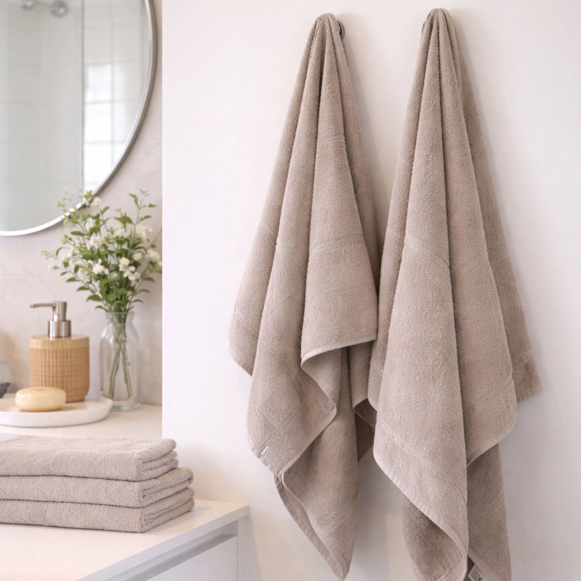 Bamboevezels staan bekend om hun natuurlijke zachtheid en hoge Absorptievermogen. De holle structuur van de vezels zorgt ervoor dat de handdoek meer water kan opnemen en tegelijkertijd sneller droogt dan traditionele katoenen handdoeken. De combinatie met slijtvast katoen biedt optimale duurzaamheid en maakt ze daarom perfect voor dagelijks gebruik.