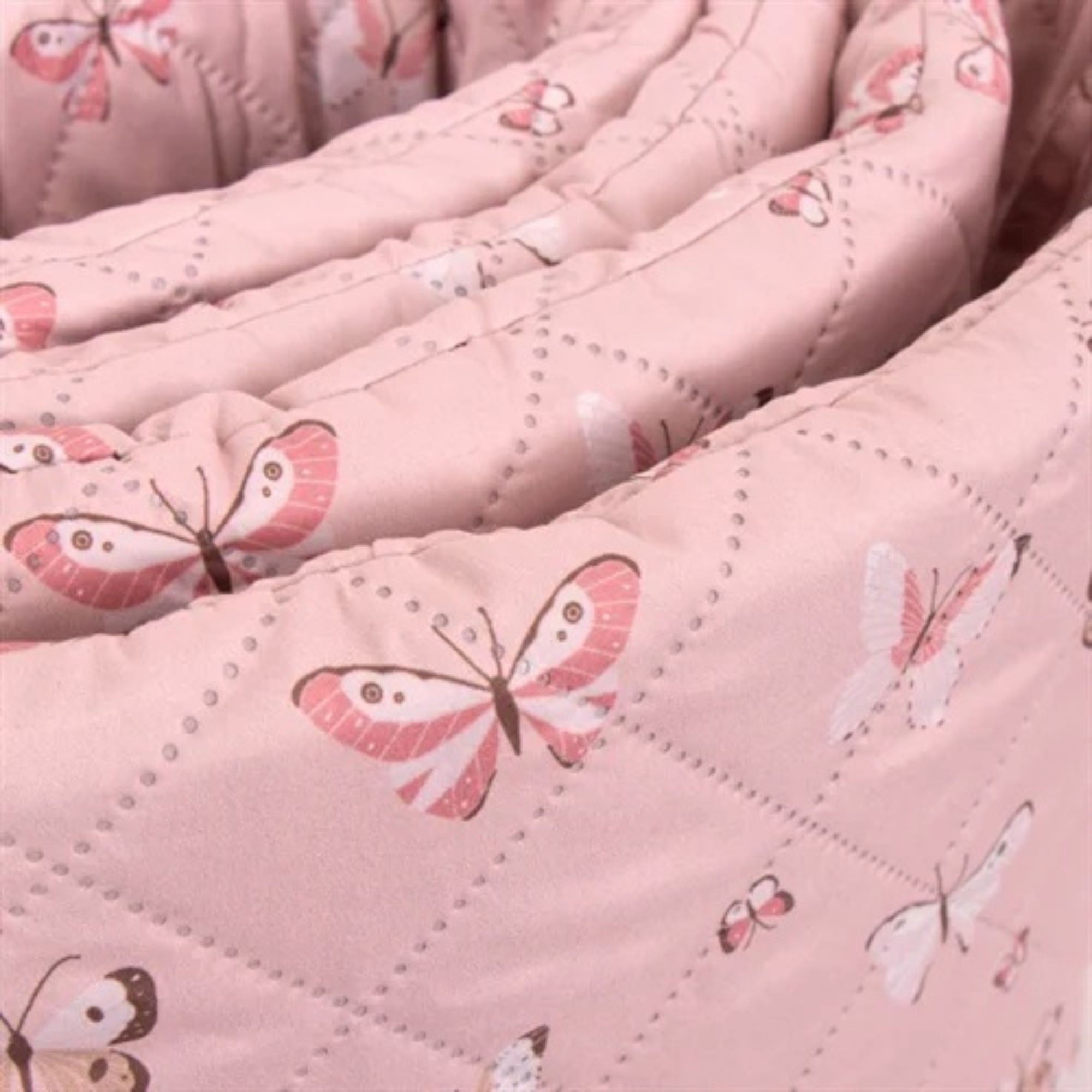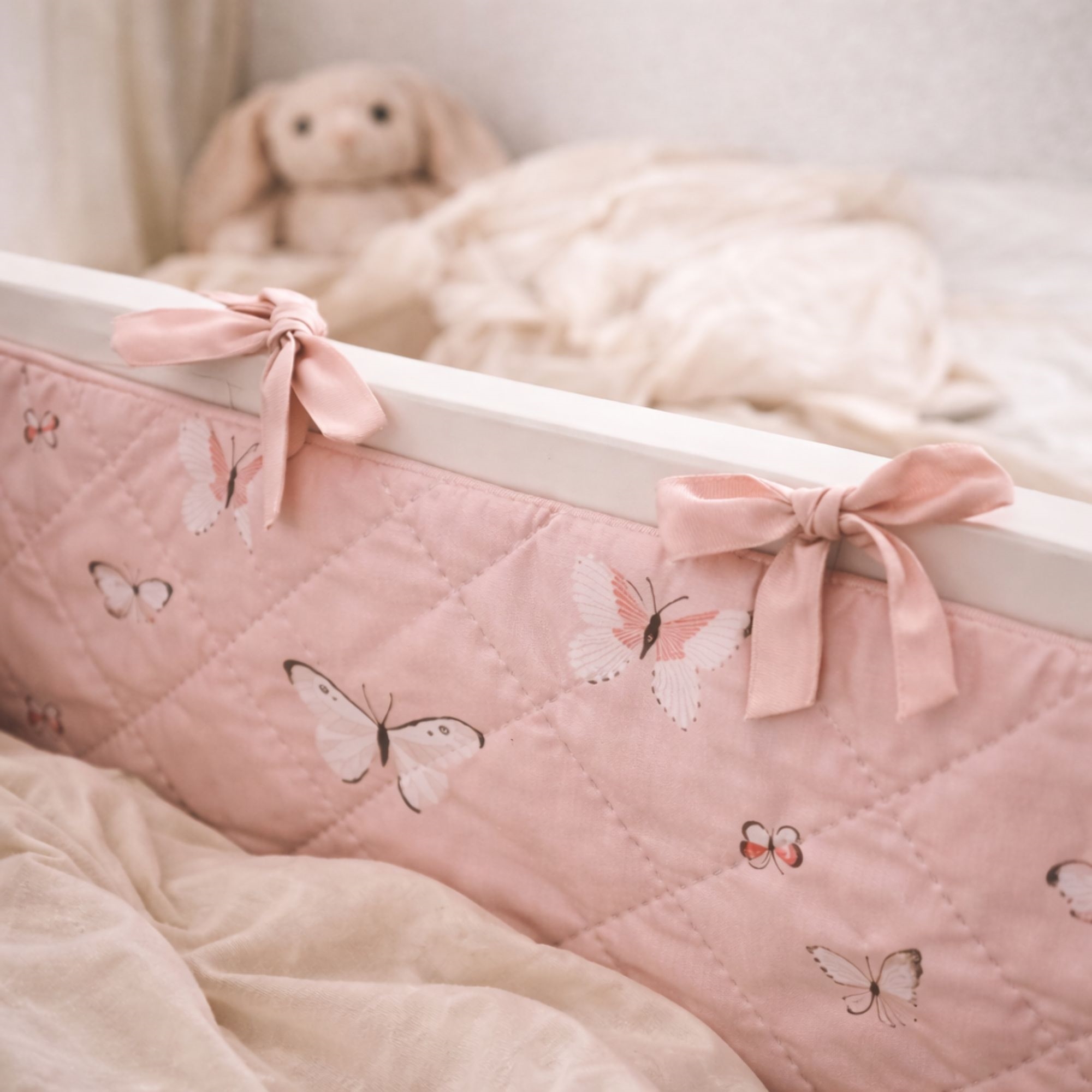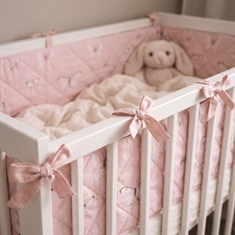 De zachte bekleding en het mooie vlindermotief in roze tinten zorgen voor een gezellig en kindvriendelijk uiterlijk in het babybed. De bedbumper wordt eenvoudig bevestigd met de aangehechte bindlinten, zodat hij stevig op zijn plaats blijft zitten.