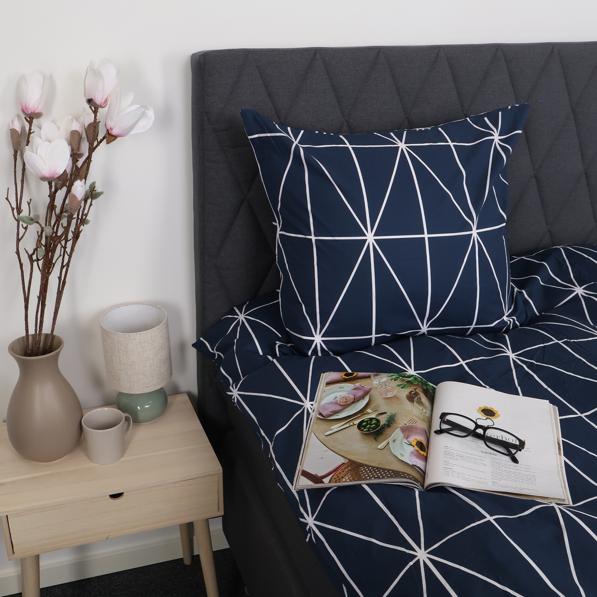 Voorpagina »Beddengoed » Eenpersoons beddengoed » Eenpersoons beddengoed 140x200 cm Beddengoed 140x200 cm - 100% katoen - Blauw met witte harlekijnruit Bespaar66% Nordstrand Home 68,4923,49EURBespaar 45,- Weinig op voorraad Selecteer maat Selecteer variant Aantal In winkelwagen Bekijk meer van:Nordstrand Home Artikelnr:2232-1 Lees onze beddengoedgids Bekijk ons grote assortiment hoeslakens Bekijk ons grote assortiment dekbedden 140x200 Heb je vragen over het product? Natuurlijk en ademend materiaalVoelt zacht en comfortabel aan op de huidPraktische ritssluiting in slijtvast kwaliteit Dekbedovertrek: 140x200 cm Kussensloop: 1 st. à 60x63 cm Materiaal: 100% zacht katoen Weving: 170TC Percale weving (Thread count = aantal draden per vierkante inch) Kleur: Blauw met witte harlekijnruit Design: Harlekijn Brand: Nordstrand Home Sluiting: Dekbedovertrek en kussensloop met ritssluiting Wassen: 60° Droogtrommel: Ja Geschikt voor strijken: Ja Certificering: STANDARD 100 by OEKO-TEX® (2023OK2234). Uw garantie dat het product vrij is van schadelijke chemicaliën. Beddengoed in katoen met harlekijnruit Geef de slaapkamer een strakke en rustige uitstraling met dit elegante beddengoed in katoen van Nordstrand Home. Het klassieke harlekijnontwerp in blauw creëert een harmonieuze sfeer en past perfect in zowel moderne als Scandinavische interieurs. Het dekbedovertrekset is vervaardigd van 100% zacht katoen en geweven in een dichte 170TC percale kwaliteit. Percale weving betekent dat de stof extra fijn en dicht geweven is, wat zorgt voor een gladde en ademende oppervlakte. Deze weving zorgt ervoor dat katoenen beddengoed licht en aangenaam aanvoelt op de huid - terwijl het tegelijkertijd slijtvast is en was na was mooi blijft. De dichte weving zorgt er ook voor dat de kleur mooi en helder blijft, zelfs na herhaalde wasbeurten op 60 graden. Dit maakt dit percale beddengoed tot een praktisch en duurzaam keuze voor dagelijks gebruik. Het beddengoed is gecertificeerd met STANDARD 100 by OEKO-TEX. Het is uw garantie dat het product getest is en vrij van schadelijke chemicaliën. Daarom is het een veilige keuze voor het hele gezin – ook voor mensen met een gevoelige huid. Zowel dekbedovertrek als kussensloop worden gesloten met een praktische ritssluiting, zodat het beddengoed de hele nacht netjes blijft liggen. Bekijk al ons katoenen beddengoed hier Nordstrand Home Met Nordstrand Home bent u verzekerd van woontextiel in Deens design - in Noordse stijl. Nordstrand Home hecht veel waarde aan het gevoel van welzijn in een fraaie, maar tegelijkertijd ontspannen omgeving. Met Nordstrand Home hoeft u geen compromissen te sluiten; u vindt altijd producten in klassieke en modieuze kleuren. Nordstrand Home – Zo voel je je thuis! Bekijk het volledige assortiment van Nordstrand Home hier Terug naar Eenpersoons beddengoed 140x200 cm