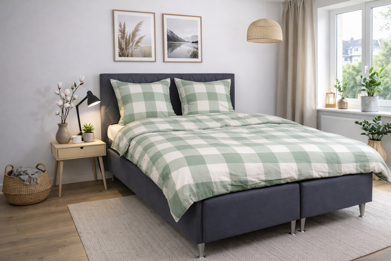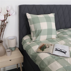 Voorpagina »Beddengoed » Eenpersoons beddengoed » Eenpersoons beddengoed 140x200 cm Beddengoed 140x200 cm - 100% katoen - Groen geruit Bespaar66% Nordstrand Home 68,4923,49EURBespaar 45,- Op voorraad Selecteer maat Selecteer variant Aantal In winkelwagen Bekijk meer van:Nordstrand Home Artikelnr:2234-1 Lees onze beddengoedgids Bekijk ons ruime assortiment lakens Bekijk ons ruime assortiment dekbedden 140x200 Heb je vragen over het product? Natuurlijk en ademend materiaalVoelt zacht en comfortabel aan op de huidPraktische ritsluiting in slijtvaste kwaliteit Dekbedovertrek: 140x200 cm Kussensloop: 1 st. à 60x63 cm Materiaal: 100% zacht katoen Weving: 170TC Percale weving (Thread count = aantal draden per vierkante inch) Kleur: Groen Design: Geruit Merk: Nordstrand Home Sluiting: Dekbedovertrek en kussensloop met rits Wassen: 60° Droogtrommel: Ja Geschikt om te strijken: Ja Certificering: STANDARD 100 by OEKO-TEX® (2023OK2234). Uw garantie dat het product vrij is van schadelijke chemische stoffen. Beddengoed van katoen met groen geruit design Geef de slaapkamer een stijlvol en rustig uiterlijk met dit elegante beddengoed van katoen van Nordstrand Home. Het klassieke geruite design in groene tinten creëert een harmonieuze sfeer en past perfect in zowel moderne als Scandinavische interieurs. Het dekbedovertrekset is gemaakt van 100% zacht katoen en geweven in een dichte 170TC percale kwaliteit. Percale-weving betekent dat de stof extra fijn en dicht geweven is, wat een glad en ademend oppervlak geeft. Deze weving zorgt ervoor dat het katoenen beddengoed licht en comfortabel aanvoelt op de huid, terwijl het ook slijtvast is en wasbeurt na wasbeurt mooi blijft. De dichte weving zorgt er ook voor dat de kleur mooi en helder blijft, zelfs na herhaald wassen op 60 graden. Dit maakt dit percale beddengoed tot een praktische en duurzame keuze voor dagelijks gebruik. Het beddengoed is gecertificeerd met STANDARD 100 by OEKO-TEX. Het is uw garantie dat het product getest is en vrij van schadelijke chemische stoffen. Daarom is het een veilige keuze voor het hele gezin – ook voor mensen met een gevoelige huid. Zowel dekbedovertrek als kussensloop worden gesloten met een praktische rits, zodat het beddengoed 's nachts netjes blijft zitten. Bekijk al ons katoenen beddengoed hier Nordstrand Home Met Nordstrand Home bent u verzekerd van woontextiel in Deens design - in Scandinavische stijl. Nordstrand Home hecht veel waarde aan het gevoel van welzijn in een mooie, maar tegelijkertijd ontspannen omgeving. Met Nordstrand Home hoeft u geen concessies te doen; u vindt altijd producten in klassieke en modieuze kleuren. Nordstrand Home – Zo voelt u zich thuis! Bekijk het volledige assortiment van Nordstrand Home hier Terug naar Eenpersoons beddengoed 140x200 cm