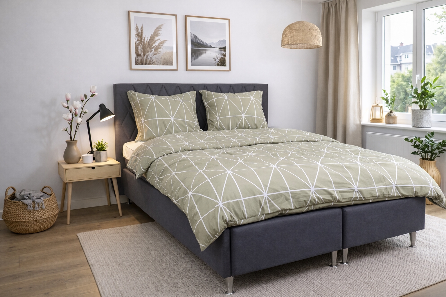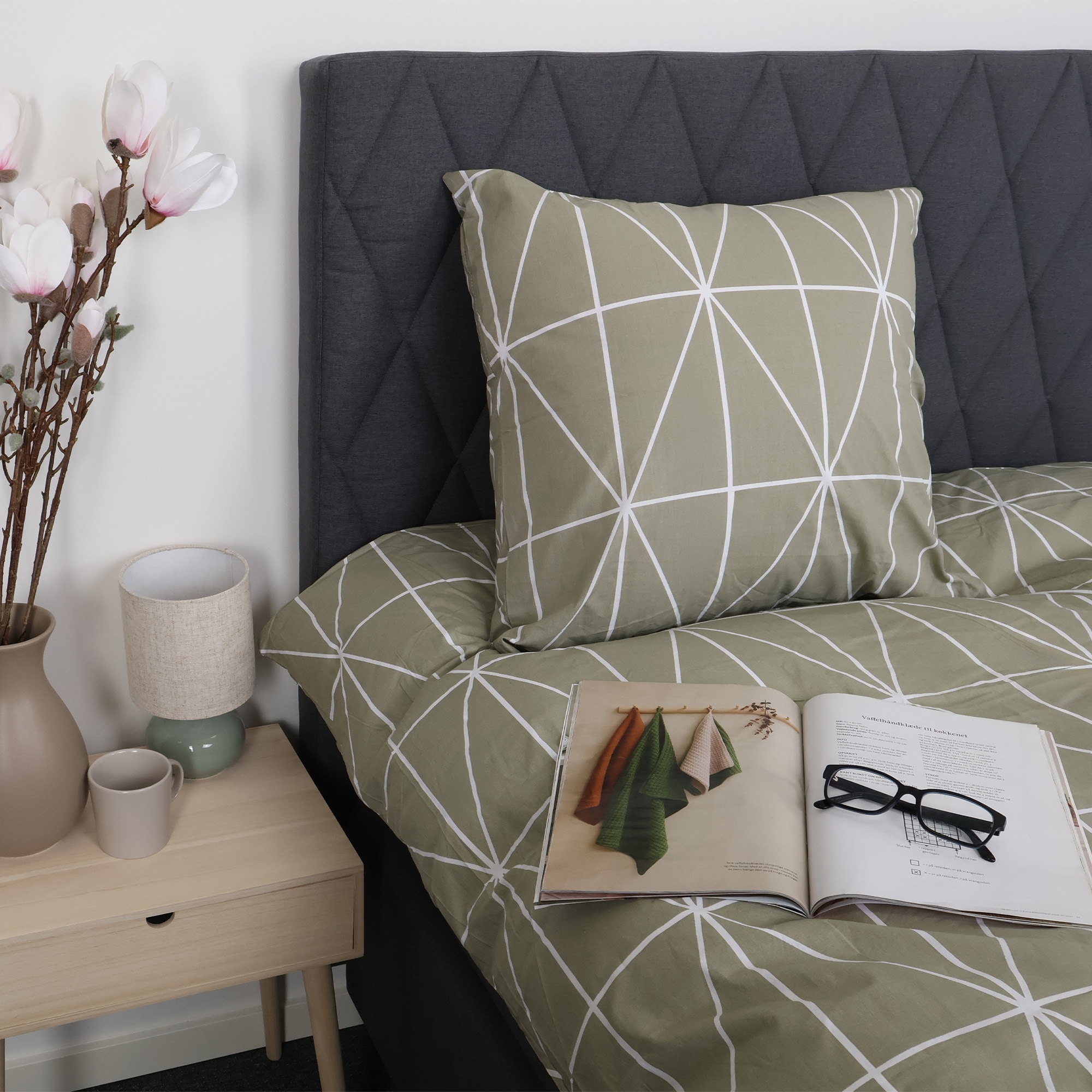 Voorpagina »Beddengoed » Eenpersoons beddengoed » Eenpersoons beddengoed 140x200 cm Beddengoed 140x200 cm - 100% katoen - Groen met witte harlekinruiten Bespaar66% Nordstrand Home 68,4923,49EURBespaar 45,- Op voorraad Selecteer maat Selecteer variant Aantal In winkelwagen Bekijk meer van:Nordstrand Home Artikelnr:2230-1 Lees onze beddengoedgids Bekijk ons ruime assortiment lakens Bekijk ons ruime assortiment dekbedden 140x200 Heb je vragen over het product? Natuurlijk en ademend materiaalVoelt zacht en comfortabel aan op de huidPraktische ritssluiting in slijtvaste kwaliteit Dekbedovertrek: 140x200 cm Kussensloop: 1 st. á 60x63 cm Materiaal: 100% zacht katoen Weving: 170TC Percale weving (Thread count = aantal draden per vierkante inch) Kleur: Groen met witte harlekinruiten Design: Harlekin Brand: Nordstrand Home Sluiting: Dekbedovertrek en kussensloop met ritssluiting Wassen: 60° Drogen: Ja Strijken: Ja Certificering: STANDARD 100 by OEKO-TEX® (2023OK2234). Uw garantie dat het product vrij is van schadelijke chemische stoffen. Beddengoed van katoen met harlekinpatroon Geef de slaapkamer een strakke en rustige uitstraling met dit elegante beddengoed van katoen van Nordstrand Home. Het klassieke harlekinpatroon in groen creëert een harmonieuze sfeer en past perfect in zowel moderne als Scandinavische interieurs. Het dekbedovertrekset is gemaakt van 100% zacht katoen en geweven in een dichte 170TC percale kwaliteit. Percaleweving betekent dat de stof extra fijn en dicht is geweven, wat een glad en ademend oppervlak geeft. Deze weving zorgt ervoor dat katoenen beddengoed licht en aangenaam aanvoelt op de huid, terwijl het tegelijkertijd slijtvast is en wassen na wassen mooi blijft. De dichte weving zorgt er ook voor dat de kleur mooi en helder blijft, zelfs na herhaald wassen op 60 graden. Dit maakt dit percale beddengoed tot een praktische en duurzame keuze voor dagelijks gebruik. Het beddengoed is gecertificeerd volgens STANDARD 100 by OEKO-TEX. Dat is uw garantie dat het product getest is en vrij van schadelijke chemische stoffen. Daarom is het een veilige keuze voor het hele gezin – ook voor mensen met een gevoelige huid. Zowel het dekbedovertrek als de kussensloop sluiten met een praktische ritssluiting, zodat het beddengoed 's nachts mooi blijft zitten. Bekijk al ons katoenen beddengoed hier Nordstrand Home Met Nordstrand Home bent u verzekerd van woontextiel in Deens design - in Noordse stijl. Nordstrand Home hecht veel waarde aan het gevoel van welzijn in een mooie maar tegelijkertijd ontspannen omgeving. Met Nordstrand Home hoeft u geen compromissen te sluiten; u vindt altijd producten in klassieke en modieuze kleuren. Nordstrand Home – Zo voelt u zich thuis! Bekijk het volledige assortiment van Nordstrand Home hier Terug naar Eenpersoons beddengoed 140x200 cm