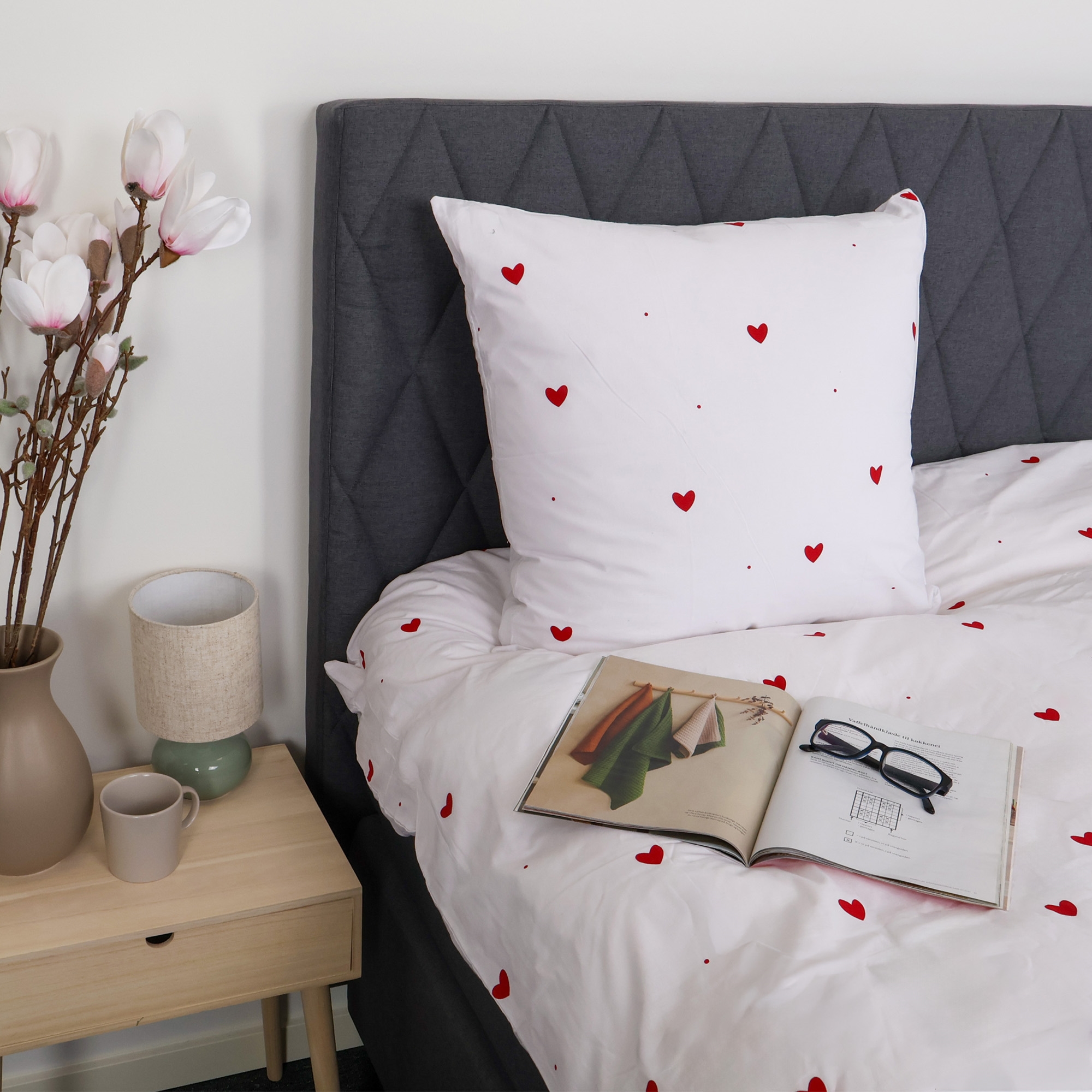 Voorpagina »Beddengoed » Eenpersoons beddengoed » Eenpersoons beddengoed 140x200 cm Beddengoed 140x200 cm - 100% katoen - Wit met hartjes Bespaar50% Nordstrand Home 54,4927,49EURBespaar 27,- Op voorraad Aantal In winkelwagen Bekijk meer van:Nordstrand Home Artikelnr:86-1 Lees onze beddengoedgids Bekijk ons grote assortiment lakens Bekijk ons ruime assortiment dekbedden 140x200 Heb je vragen over het product? Natuurlijk en ademend materiaalVoelt zacht en comfortabel aan op de huidPraktische ritssluiting in slijtvast kwaliteit Dekbedovertrek: 140x200 cm Kussensloop: 1 st. á 60x63 cm Materiaal: 100% zacht katoen Weving: 170TC percale weving (Thread count = aantal draden per vierkante inch) Kleur: Wit en rood Design: Hartjes Merk: Nordstrand Home Sluiting: Dekbedovertrek en kussensloop met ritssluiting Wassen: 60° Droogtrommel: Ja Strijken: Ja Certificering: STANDARD 100 by OEKO-TEX® (2022OK2496). Uw garantie dat het product vrij is van schadelijke chemicaliën. Katoenen beddengoed met wit hartjesdesign Geef de slaapkamer een strak en rustig uiterlijk met dit elegante katoenen beddengoed van Nordstrand Home. Het lieve hartjesdesign zorgt voor een harmonieuze sfeer en past perfect in zowel moderne als Scandinavische interieurs. Het dekbedovertrekset is gemaakt van 100% zacht katoen en geweven in een dichte 170TC percale kwaliteit. Percale-weving betekent dat de stof extra fijn en dicht geweven is, wat zorgt voor een glad en ademend oppervlak. Deze weving zorgt ervoor dat katoenen beddengoed licht en comfortabel aanvoelt op de huid - terwijl het ook slijtvast is en wasbeurt na wasbeurt goed blijft. De dichte weving zorgt er ook voor dat de kleur mooi en helder blijft, zelfs na herhaalde wasbeurten op 60 graden. Dit maakt dit percale-beddengoed tot een praktische en duurzame keuze voor dagelijks gebruik. Het beddengoed is gecertificeerd met STANDARD 100 by OEKO-TEX. Het is uw garantie dat het product getest is en vrij van schadelijke chemicaliën. Daarom is het een veilige keuze voor het hele gezin – ook voor mensen met een gevoelige huid. Zowel dekbedovertrek als kussensloop worden gesloten met een praktische ritssluiting, zodat het beddengoed de hele nacht netjes blijft zitten. Bekijk al ons katoenen beddengoed hier Nordstrand Home Met Nordstrand Home bent u verzekerd van woningtextiel in Deens design - in Scandinavische stijl. Nordstrand Home hecht veel waarde aan het gevoel van welzijn in een mooi, maar tegelijk ontspannen milieu. Met Nordstrand Home hoeft u geen concessies te doen; u vindt altijd producten in klassieke en modieuze kleuren. Nordstrand Home – Zo voelt u zich thuis! Bekijk het volledige assortiment van Nordstrand Home hier Terug naar Eenpersoons beddengoed 140x200 cm