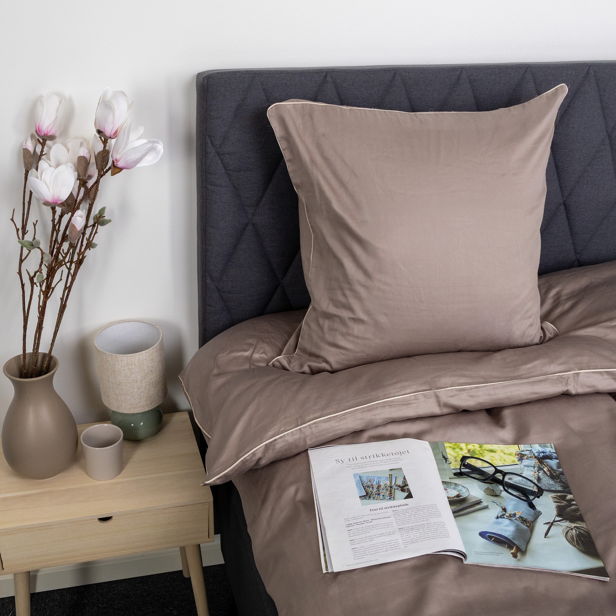 Creëer een elegant en luxe uitstraling in de slaapkamer met deze exclusieve set van 100% katoensatijn met decoratieve pipingrand van By Borg. Het effen ontwerp in diep grijs gecombineerd met een lichtere pipingrand geeft een stijlvolle en verfijnde look die de totale uitstraling van de slaapkamer verbetert.