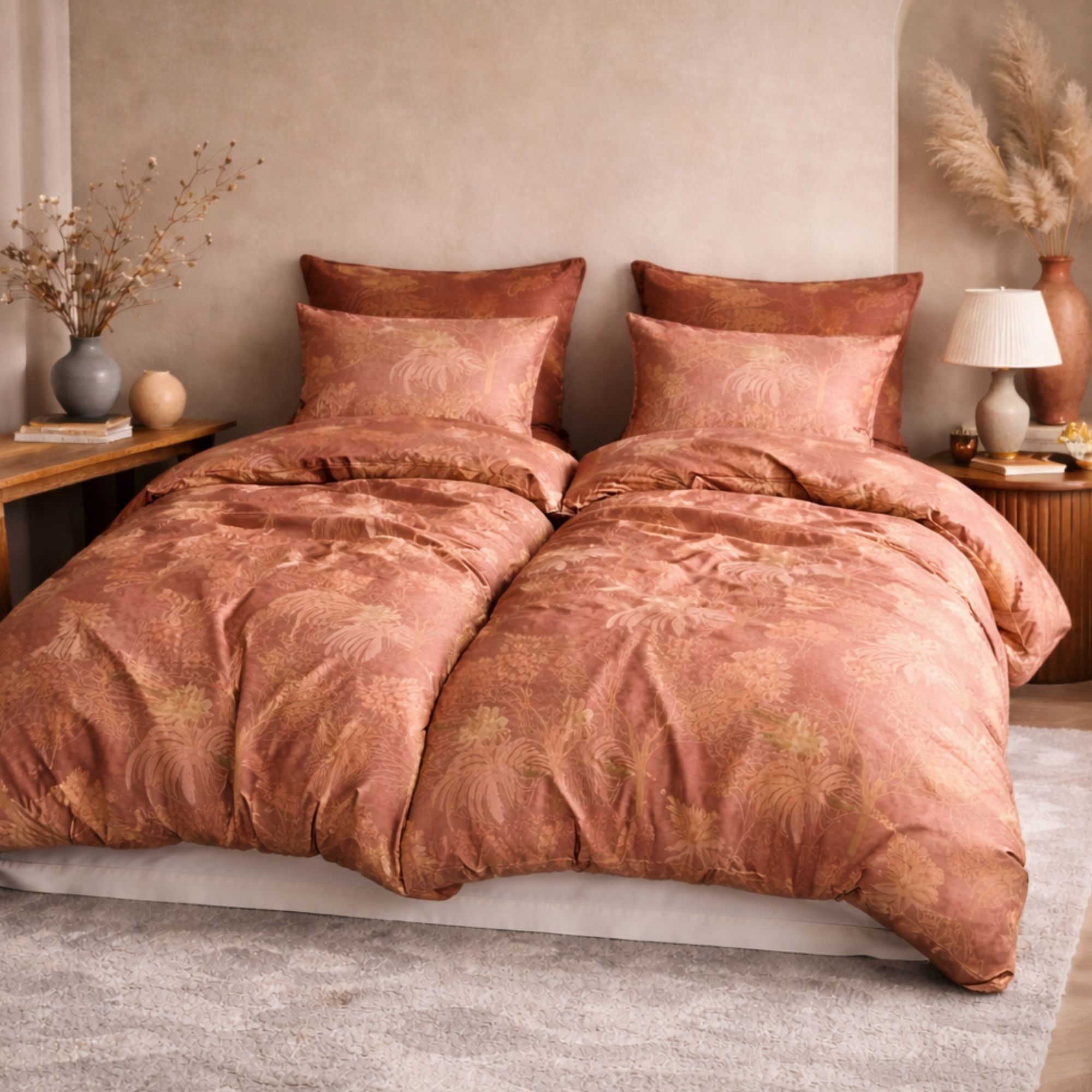 Voorpagina »Beddengoed » Eenpersoons beddengoed » Eenpersoons beddengoed 140x200 cm Beddengoed 140x200 cm - 100% katoensatijn - Høie Of Scandinavia - Margrethe Terracotta Bespaar28% Høie Of Scandinavia 95,4968,49EURBespaar 27,- Op voorraad Selecteer maat Selecteer variant Aantal In winkelwagen Bekijk meer van:Høie Of Scandinavia Artikelnr:6905-1 Lees onze beddengoedgids Bekijk ons ruime assortiment lakens Bekijk ons ruime assortiment dekbedden 140x200 Heb je vragen over het product? Zachte kwaliteit die prettig aanvoelt op de huidSatijnbinding die een glad en exclusief oppervlak geeftEen subtiele glans in de stof zorgt voor een luxe uitstraling Dekbedovertrek: 140x200 cm Kussensloop: 1 stuk á 60x63 cm Materiaal: 100% katoensatijn Weving: Extra fijne 220TC satijnbinding (Thread count = aantal draden per vierkante inch) Kleur: Roodachtig Design: Margrethe Terracotta Merk: Høie of Scandinavia Sluiting: Dekbedovertrek met ritssluiting, kussensloop met omslag Wassen: 60° Drogen in de droger: Ja Strijkbaar: Ja Certificering: EASY CARE behandeld, wat betekent dat het niet kreukt na het wassen. Certificering: STANDARD 100 by OEKO-TEX® (M24LHANWS). Uw garantie dat het product vrij is van schadelijke chemische stoffen. Gemusterd beddengoed in katoensatijn van Høie Het beddengoed is gemaakt van 100% katoensatijn met een extra fijne 220TC satijnbinding, die een ongelooflijk zacht en glad oppervlak geeft met een subtiele glans. De hoge kwaliteit zorgt voor een comfortabele en luxueuze slaapbeleving, waarbij comfort en esthetiek hand in hand gaan. Een groot voordeel van katoensatijn is de duurzaamheid. De stof is dicht geweven en sterk, wat het beddengoed bestand maakt tegen slijtage en herhaald wassen. Tegelijkertijd wordt het vaak zelfs zachter na verloop van tijd, zonder dat dit iets afdoet aan de vorm of kwaliteit. Dat maakt katoensatijn tot een goede en praktische keuze, omdat het luxe combineert met dagelijkse functionaliteit. Het beddengoed is STANDARD 100 by OEKO-TEX® gecertificeerd, wat uw garantie is dat het product vrij is van schadelijke chemische stoffen. Het is ook Easy Care behandeld, wat zorgt voor minder kreuk en een betere pasvorm na het wassen. Easy Care maakt uw beddengoed extra zacht en gemakkelijk te strijken. Bekijk al ons katoensatijnen beddengoed hier Høie Of Scandinavia Høie of Scandinavia is een bekend Scandinavisch textielmerk dat sinds 1850 een lange geschiedenis heeft, met name op het gebied van beddengoed, dekbedden en kussens. Høie staat bekend om hoge kwaliteit, tijdloos design en comfort - dit komt terug in hun Scandinavische stijl en functionaliteit. Høie combineert traditioneel vakmanschap met moderne productie en materialen om producten te maken die zowel prettig zijn om in te slapen als duurzaam in het dagelijks gebruik. Bekijk het volledige Høie assortiment hier Terug naar Eenpersoons beddengoed 140x200 cm