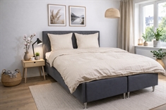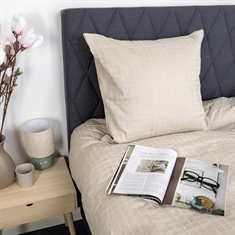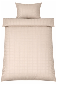 De zandkleurige vierkantjes geven een moderne en verfijnde uitstraling die perfect past in zowel minimalistische als klassieke slaapkamers. Dekbedovertrek en kussensloop sluiten met een verborgen rits, wat een nette afwerking geeft en het dekbed stevig op zijn plaats houdt.