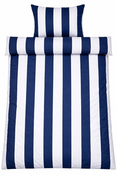 Creëer een strak en harmonieuze uitstraling in de slaapkamer met dit blauw-wit gestreepte beddengoed in 100% katoensatijn. Het brede Nordic Stripe-design geeft een rustig en modern uiterlijk met een vleugje klassieke Scandinavische stijl - perfect voor wie zowel comfort als een mooi en uitnodigend slaapvertrek wil.