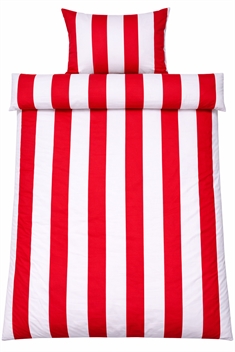 Creëer een strak en harmonieus geheel in de slaapkamer met dit rood-wit gestreepte beddengoed van 100% katoensatijn. Het brede Nordic Stripe-design geeft een rustig en modern effect met een vleugje klassieke Noordse stijl - perfect voor wie zowel comfort als een mooie, uitnodigende slaapkamer wil.