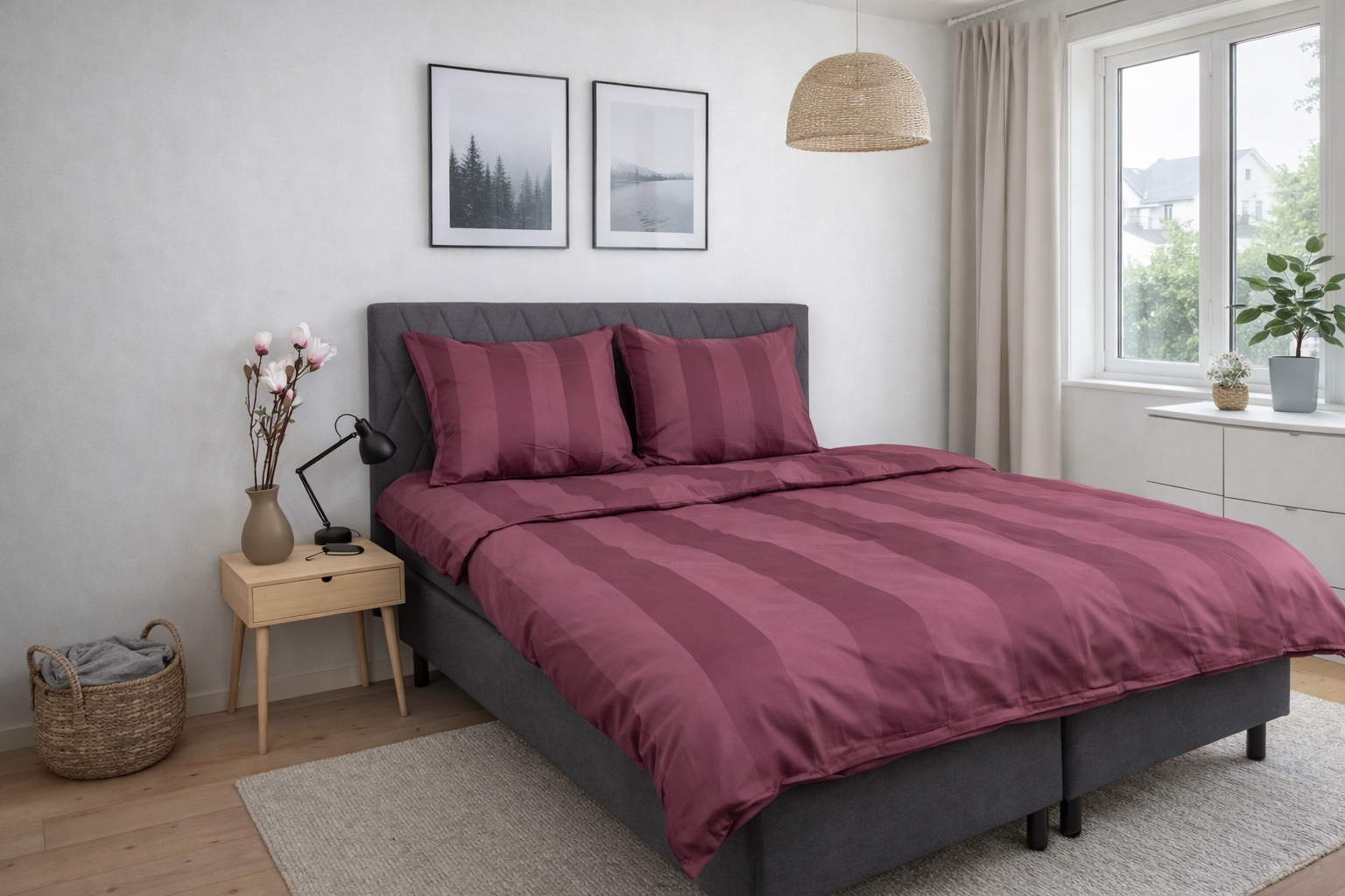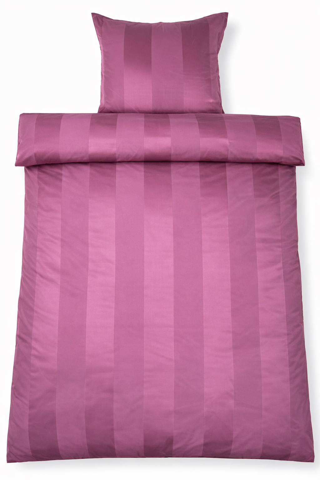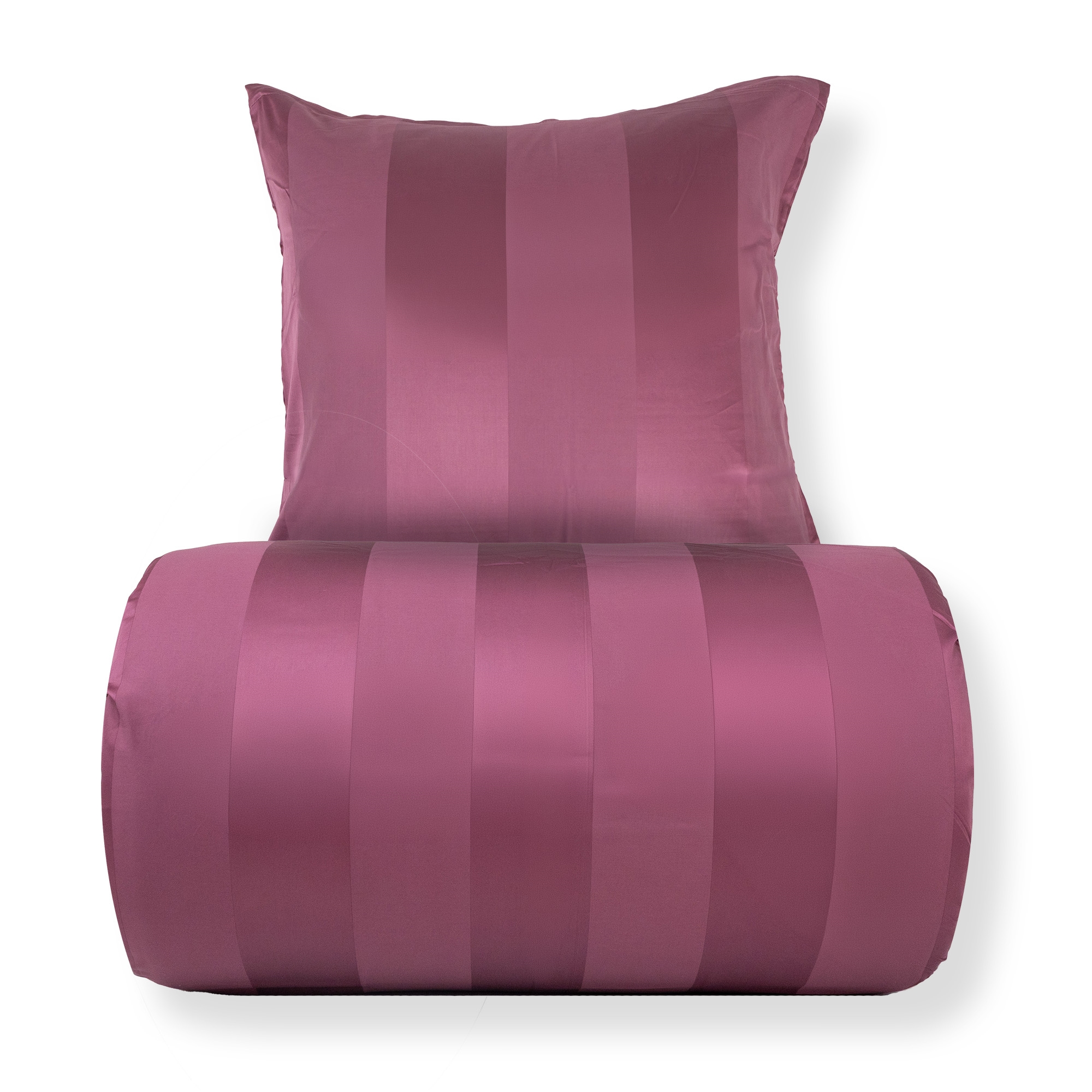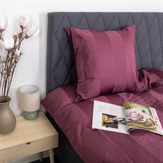 Creëer een exclusieve hotelachtige sfeer in de slaapkamer met dit pruimkleurige gestreepte beddengoed in 100% katoensatijn. Het elegante ontwerp met brede jacquardgeweven strepen combineert tijdloze minimalisme met luxueus comfort en is perfect voor wie een stijlvol en uitnodigend slaapklimaat wil.