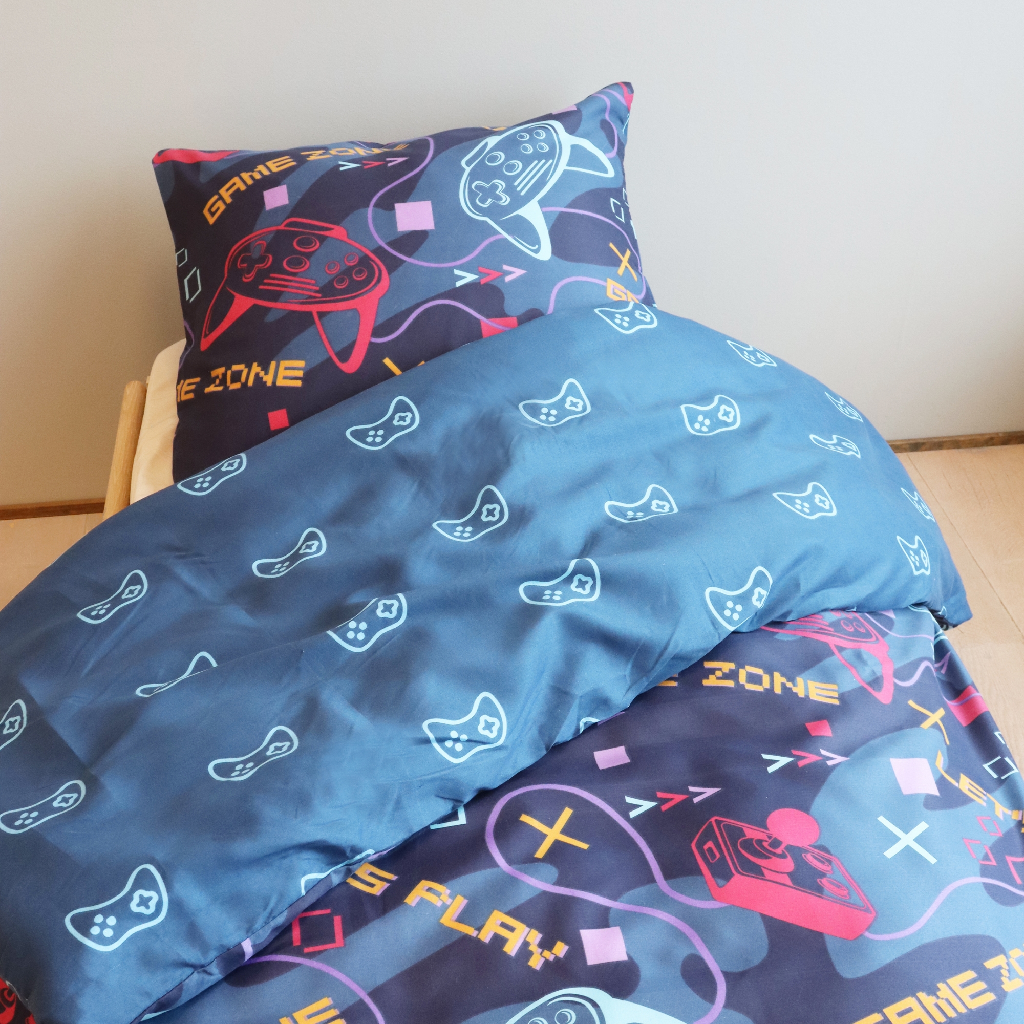 Voorpagina »Beddengoed » Eenpersoons beddengoed » Eenpersoons beddengoed 140x200 cm Beddengoed 140x200 cm - Microvezel - Omkeerbaar gamer-motief Bespaar32% Licens 20,4913,99EURBespaar 7,- Op voorraad Aantal In winkelwagen Bekijk meer van:Licens Artikelnr:2430-1 Lees onze beddengoedgids Bekijk ons grote assortiment lakens Bekijk ons grote assortiment dekbedden 140x200 Heb je vragen over het product? Glad en kreukvrij beddengoed dat er netjes uit blijftSlijtvast materiaal met goede ademendheidMooie kleurvastheid die was na was blijft behouden Dekbedovertrek: 140x200 cm Kussensloop: 1 stuk à 60x63 cm Materiaal: 100% microvezel Kleur: Blauw Motief: Omkeerbaar gamer-motief Sluiting: Dekbedovertrek met knopen, kussensloop met overlap Wassen: 40° Drogen: Ja, op lage temperatuur Kan gestreken worden: Ja Certificering: STANDARD 100 by OEKO-TEX® (2024OK2128). Uw garantie dat het product vrij is van schadelijke chemicaliën voor de gezondheid. Microvezel beddengoed met gamer-motief Vernieuw de slaapkamer met een fraai en praktisch dekbedovertrekset in 100% microvezel met een gamerprint. Microvezel is een populaire keuze als u zacht, licht en functioneel beddengoed wilt dat gemakkelijk te onderhouden is in het dagelijks gebruik. Het beddengoed is vervaardigd van microvezel met een klassieke weving en geprint patroon. Het materiaal staat bekend om zijn gladde en aangename oppervlak, dat zacht aanvoelt op de huid en een comfortabele nachtrust biedt. Tegelijk heeft microvezel een hoge kleurvastheid, wat betekent dat de kleuren mooi blijven, was na was. Microvezel is een sneldrogend en ademend materiaal, dat zich bijzonder goed leent voor wie beddengoed wil dat snel droogt en nauwelijks kreukt. Het dekbedovertrek sluit met knopen en de kussensloop heeft een overlap, wat zorgt dat het dekbed en het kussen op hun plaats blijven en het verwisselen van beddengoed eenvoudig maakt. Het set is omkeerbaar; aan de voorkant ziet u veel gamer-motieven. Keert u het set om, dan is er een motief van controllers dat de uitstraling rustiger maakt. Het beddengoed is gecertificeerd volgens STANDARD 100 by OEKO-TEX®, wat uw garantie is dat het product getest is en vrij van schadelijke chemicaliën voor de gezondheid. Het kan gewassen worden op 40 graden en kan in de droger op lage temperatuur. Bekijk al ons microvezel-beddengoed hier Terug naar Eenpersoons beddengoed 140x200 cm
