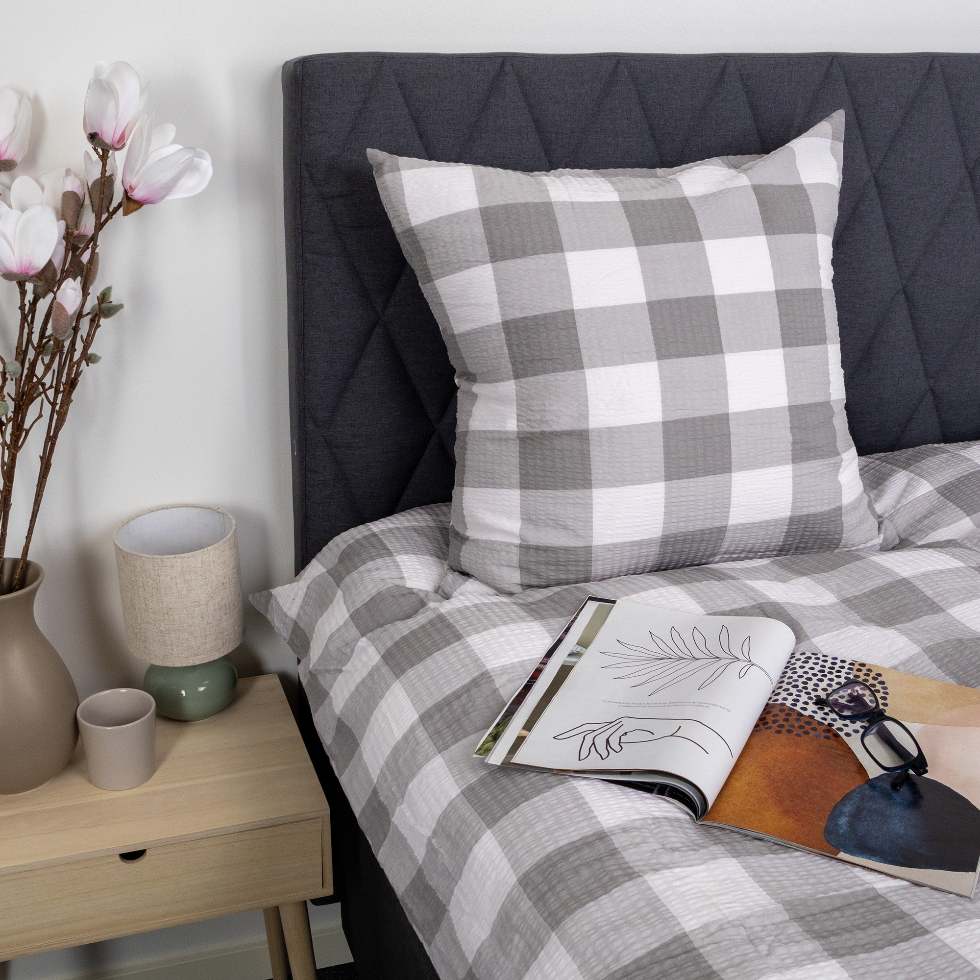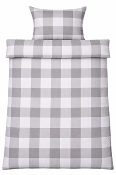 Dekbedovertrek en kussensloop sluiten met een rits, wat het makkelijk maakt om het beddengoed te wisselen en zowel dekbed als kussen de hele nacht veilig op hun plaats houdt. Het geruite design in wit en grijs geeft een rustig en tijdloos uiterlijk dat goed past in zowel moderne als klassieke slaapkamers.