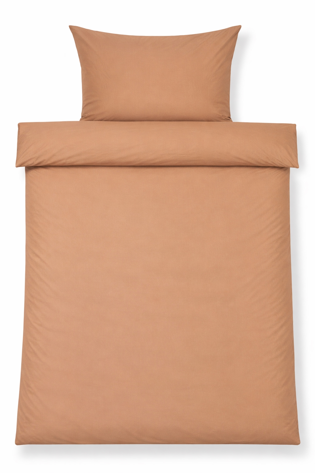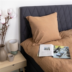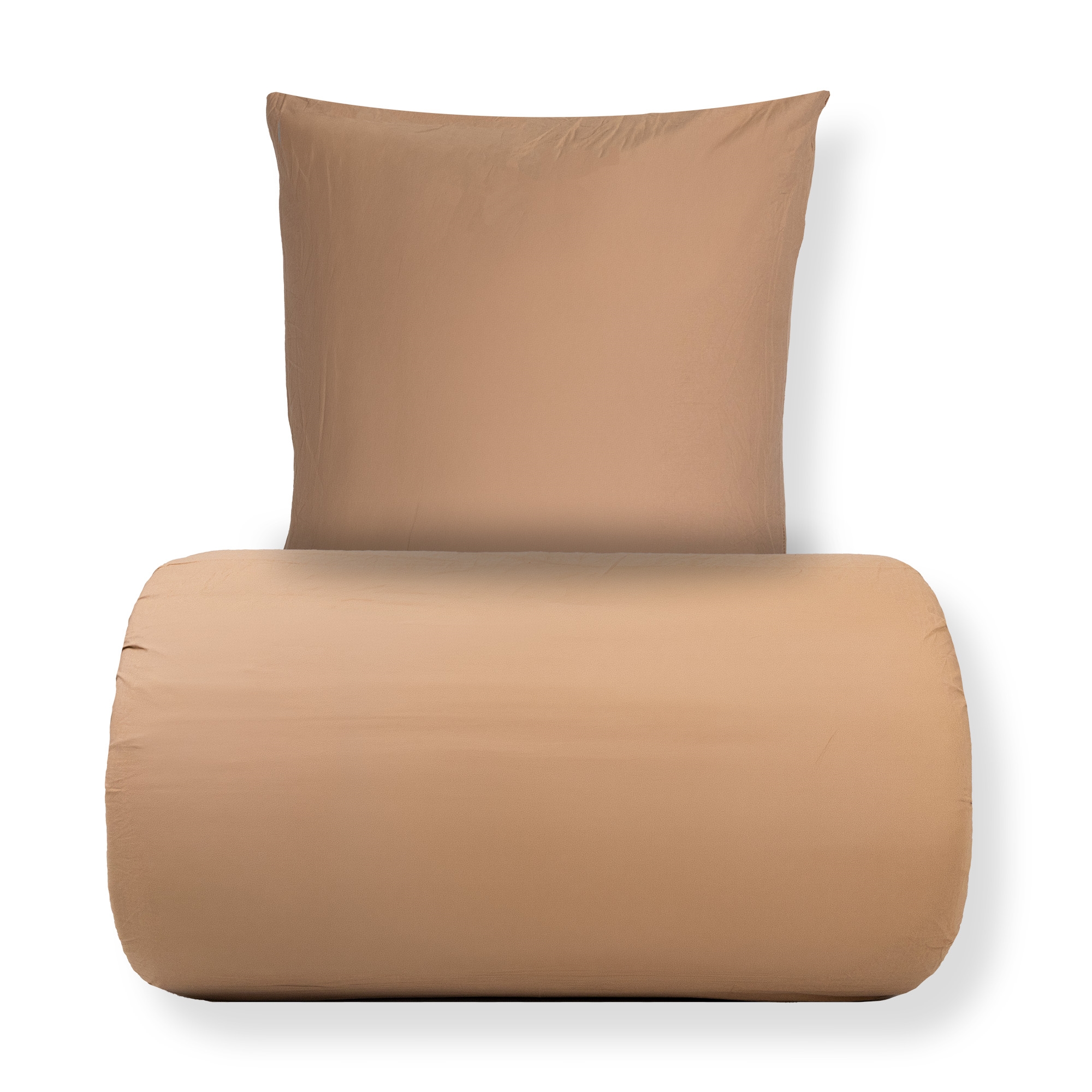 Dekbedovertrek en kussenslopen worden afgesloten met een verborgen ritssluiting aan de binnenkant, wat zorgt voor een strakke uitstraling en het verwisselen van beddengoed vergemakkelijkt. De bruine tint en het effen design maken deze set eenvoudig te combineren met zowel lichte als donkere elementen in de slaapkamer.