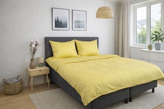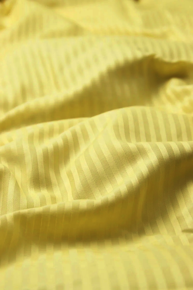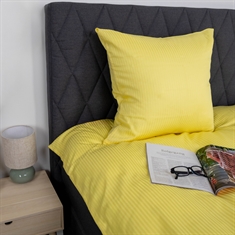 Het dekbedovertrek en de kussensloop sluiten met een verborgen ritssluiting, wat zorgt voor een strakke uitstraling en ervoor dat het dekbed op zijn plaats blijft. De klassieke gele kleur en de geweven strepen maken het beddengoed gemakkelijk te combineren met zowel moderne als klassieke slaapkamers.