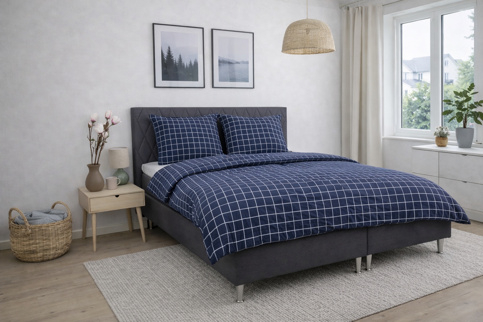 Voorpagina »Beddengoed » Eenpersoons beddengoed » Extra lang beddengoed 140x220 cm Beddengoed 140x220 cm - Katoenen flanel beddengoed - Blauw met witte ruiten Bespaar50% Nordstrand Home 81,9940,99EURBespaar 41,- Op voorraad Selecteer maat Selecteer variant Aantal In winkelwagen Bekijk meer van:Nordstrand Home Artikelnr:258-2 Lees onze beddengoedgids Bekijk ons grote assortiment lakens Bekijk ons grote assortiment dekbedden 140x220 Heb je vragen over het product? Warm en behaaglijk beddengoed, dat aangenaam aanvoelt op de huidAdemend en zacht materiaal met hoog comfortOngelooflijk zacht en pluizig oppervlak Dekbedovertrek: 140x220 cm Kussensloop: 1 stuk á 60x63 cm Materiaal: 100% katoen flanel beddengoed Weving: 200TC (Thread count = aantal draden per vierkante inch) Kleur: Blauw met witte ruiten Design: Check Small Merk: Nordstrand Home Sluiting: Dek- en kussenslopen met binnenrits Wassen: 60°C Kan in de droger: Ja Strijken mogelijk: Ja Certificering: STANDARD 100 by OEKO-TEX® (20182KO658). Uw garantie dat het product vrij is van schadelijke chemicaliën. Katoenen flanel beddengoed met ruitpatroon - extra zacht en warm Creëer een gezellige en uitnodigende sfeer in de slaapkamer met dit geruite flanel beddengoed in blauw met witte details. De zachte katoenen flanel biedt een warme en comfortabele sensatie - perfect voor koude nachten. Het beddengoed is vervaardigd van 100% katoen flanel beddengoed met een dichte 200TC-weving. Flanel kenmerkt zich doordat de katoenvezels zijn opgeruwd en geborsteld aan de oppervlakte. Deze behandeling creëert de bekende, pluizige zachte structuur, waardoor flanel beddengoed extra comfortabel is om onder te slapen. Het geborstelde oppervlak houdt de warmte dichter bij het lichaam en geeft een heerlijk warm gevoel, zonder dat het materiaal zijn natuurlijke ademend vermogen verliest. Katoenen flanel is daarom een uitstekende keuze voor wie het vaak koud heeft ’s nachts of een warmer beddengoed wil in de herfst- en wintermaanden. Tegelijkertijd is het materiaal slijtvast en blijft het zacht wasbeurt na wasbeurt. Het geruite design combineert mooie witte ruiten met een blauwe achtergrond, wat een rustig en harmonieus uitstraling in de slaapkamer creëert. Een geruit dekbedovertrek dat zowel warm aanvoelt als elegant oogt. Dek- en kussenslopen worden gesloten met een binnenrits, wat zorgt voor een nette en praktische afwerking. Het beddengoed is gecertificeerd volgens STANDARD 100 by OEKO-TEX, wat uw garantie is dat het product getest is en vrij van schadelijke chemicaliën. Het kan gewassen worden op 60°C en is bestand tegen zowel drogen in de droogtrommel als strijken. Bekijk al ons flanel beddengoed hier Nordstrand Home Met Nordstrand Home bent u verzekerd van woontextiel in Deens design - in Noordse stijl. Nordstrand Home hecht veel waarde aan het gevoel van welzijn in een mooi, maar tegelijkertijd ontspannen milieu. Met Nordstrand Home hoeft u geen concessies te doen; u vindt altijd producten in klassieke en modieuze kleuren. Nordstrand Home – Zo voelt u zich thuis! Bekijk het complete assortiment van Nordstrand Home hier Terug naar Extra lang beddengoed 140x220 cm