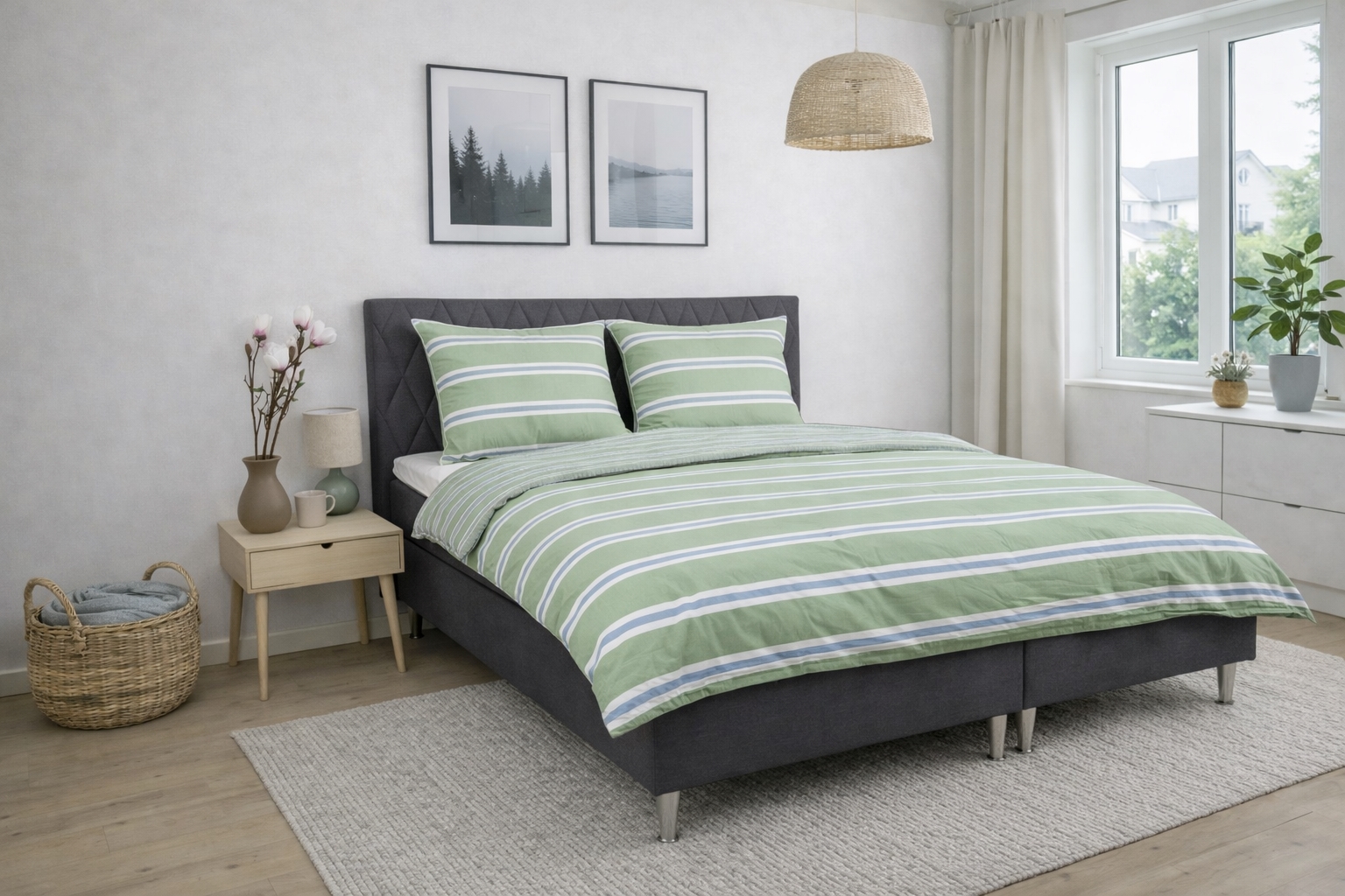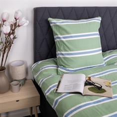 Voorpagina »Beddengoed » Eenpersoons beddengoed » Extra lang beddengoed 140x220 cm Beddengoed 140x220 cm - Katoenen flanel beddengoed - Groen met strepen Bespaar50% Nordstrand Home 81,9940,99EURBespaar 41,- Op voorraad Selecteer maat Selecteer variant Aantal In winkelwagen Bekijk meer van:Nordstrand Home Artikelnr:255-2 Lees onze beddengoedsgids Bekijk ons ruime assortiment lakens Bekijk ons ruime assortiment dekbedden 140x220 Heb je vragen over het product? Warm en aangenaam beddengoed dat prettig aanvoelt op de huidAdemend en zacht materiaal met hoog comfortUiterst zacht en wollig oppervlak Dekbedovertrek: 140x220 cm Kussensloop: 1 st. á 60x63 cm Materiaal: 100% katoenen flanel beddengoed Weving: 200TC (Thread count = aantal draden per vierkante inch) Kleur: Groen Design: Gestreept Brand: Nordstrand Home Sluiting: Dekbedovertrek en kussensloop met binnenrits Wassen: 60° Drogen: Ja Strijken: Ja Certificering: STANDARD 100 by OEKO-TEX® (20182KO658). Uw garantie dat het product vrij is van schadelijke chemicaliën. Katoenen flanel beddengoed met strepen - extra zacht en warm Creëer een gezellige en uitnodigende sfeer in de slaapkamer met dit gestreepte flanel beddengoed in groen met blauwe en witte details. De zachte katoenen flanel biedt een warme en comfortabele beleving - perfect voor frisse nachten. Het beddengoed is gemaakt van 100% katoenen flanel met een dichte 200TC weving. Flanel wordt gekenmerkt doordat de katoenvezels opgeruwd en geborsteld zijn aan het oppervlak. Deze behandeling creëert de bekende, wollige zachte structuur die flanel beddengoed extra aangenaam maakt om onder te slapen. Het geborstelde oppervlak houdt warmte dichter bij het lichaam en geeft een heerlijk warm gevoel, zonder dat het materiaal zijn natuurlijke ademend vermogen verliest. Katoenen flanel is daarom een uitstekende keuze voor wie het 's nachts vaak koud heeft of een warmer beddengoed wil in herfst- en wintermaanden. Tegelijkertijd is het materiaal slijtvast en blijft het zacht, was na was. Het gestreepte design combineert fraaie blauwe en witte strepen met een groene achtergrond, wat een rustig en harmonieus effect in de slaapkamer geeft. Een gestreept beddengoed dat zowel warm aanvoelt als er stijlvol uitziet. Dek- en kussenslopen worden gesloten met een binnenrits, wat zorgt voor een nette en praktische afwerking. Het beddengoed is gecertificeerd volgens STANDARD 100 by OEKO-TEX, wat uw garantie is dat het product getest is en vrij van schadelijke chemicaliën. Het kan op 60 graden gewassen worden en is geschikt voor zowel drogen in de droger als strijken. Bekijk al ons flanel beddengoed hier Nordstrand Home Met Nordstrand Home bent u verzekerd van woningtextiel in Deens design - in Noordse stijl. Nordstrand Home hecht veel waarde aan het gevoel van welzijn in een mooi, maar tegelijkertijd ontspannen milieu. Met Nordstrand Home hoeft u geen compromissen te sluiten; u vindt altijd producten in klassieke en modieuze kleuren. Nordstrand Home – Zo voelt u zich thuis! Bekijk het volledige assortiment van Nordstrand Home hier Terug naar Extra lang beddengoed 140x220 cm
