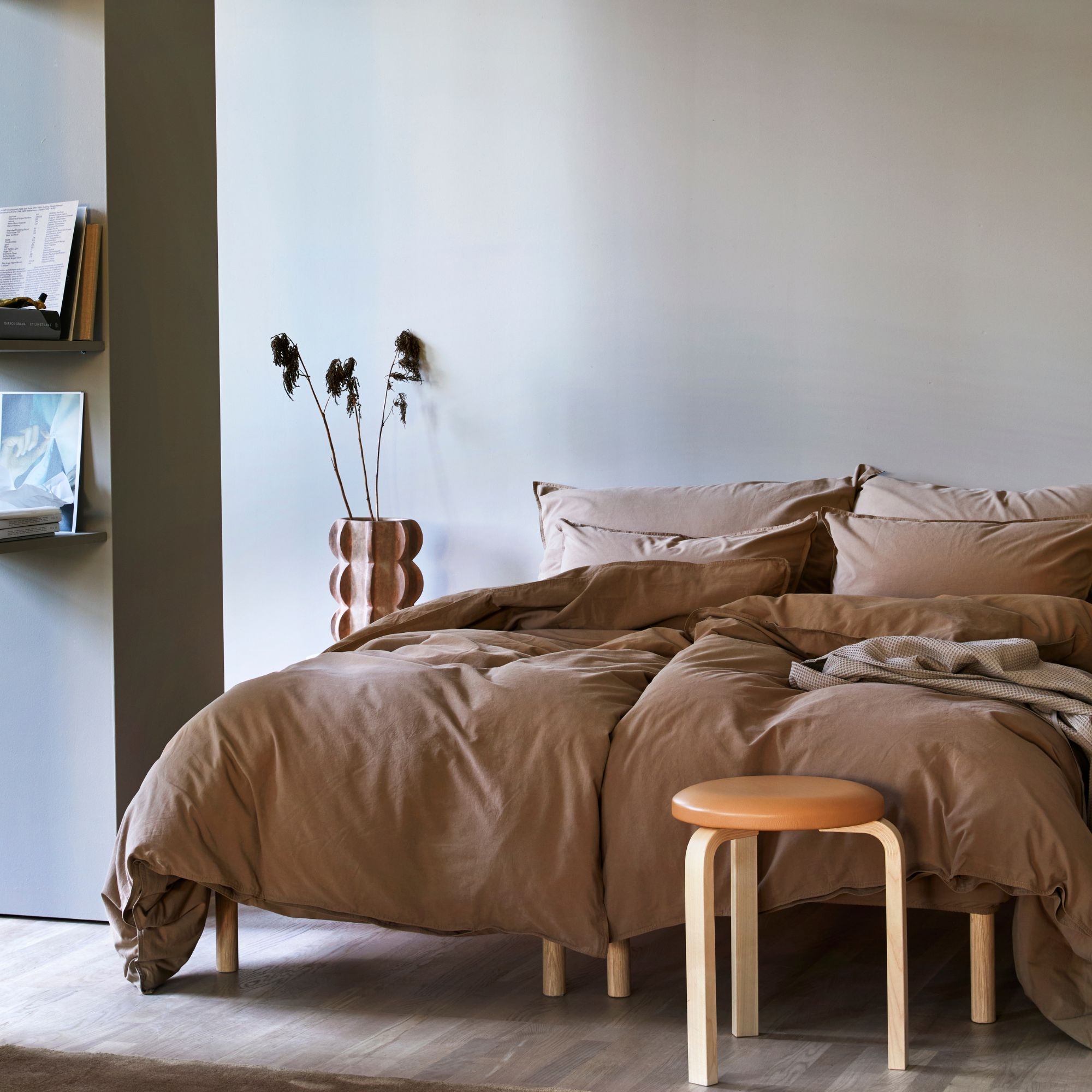 Voorpagina »Beddengoed » Eenpersoons beddengoed » Extra lang beddengoed 140x220 cm Beddengoed 140x220 cm - Stonewashed - Høie of Scandinavia - Frøya Cinnamon Bespaar21% Høie Of Scandinavia 95,4974,99EURBespaar 21,- Weinig op voorraad Aantal In winkelwagen Bekijk meer van:Høie Of Scandinavia Artikelnr:6956-2 Lees onze beddengoedgids Bekijk ons ruime assortiment lakens Bekijk ons ruime assortiment dekbedden 140x220 Heb je vragen over het product? Gewassen look, met een unieke uitstralingExtra hoge draaddichtheid die zorgt voor een zachte oppervlakteSvanemærket en duurzaam geproduceerd Dekbedovertrek: 140x220 cm Kussensloop: 1 st. à 60x63 cm Materiaal: 100% biologisch stonewashed katoen Weefsel: Extra fijn 300TC (Thread count = aantal draden per vierkante inch) Kleur: Bruin Design: Frøya Cinnamon Merk: Høie of Scandinavia Sluiting: Dekbedovertrek met knopen, kussensloop met overslag Was: 60° Droogtrommel: Ja Strijken: Ja Certificering: Svanemærket (2112 0008). Voor een betere toekomst. Certificering: MADE IN GREEN by OEKO-TEX® (M1VLV2KU7). Uw garantie dat het product vrij is van schadelijke chemicaliën voor de gezondheid. Effen beddengoed in biologisch katoen van Høie Creër een gezellige en rustige sfeer in de slaapkamer met deze Frøya-beddenset in 100% biologisch katoen. Het beddengoed is stonewashed, wat betekent dat de vezels zijn verzacht, waardoor het dekbedovertrek de juiste finish en een natuurlijke gekreukte look krijgt. Daarnaast is het garengeverfd, wat betekent dat de draden worden gekleurd voordat ze worden geweven. Het voordeel hiervan is dat het dieper en duurzamer kleurresultaat geeft. Biologisch katoen wordt geteeld met aandacht voor zowel mensen als het milieu. Bij de teelt worden geen schadelijke pesticiden, bestrijdingsmiddelen of kunstmest gebruikt, waardoor het katoen vriendelijker is voor het milieu en voor degenen die bij de productie werken. Tegelijk betekent het minder chemicaliën in het eindproduct, wat voordelig kan zijn voor mensen met een gevoelige huid of allergie. Goed om te weten is dat de Frøya-serie 30% minder water gebruikt dan traditionele verfmethode. Het beddengoed is MADE IN GREEN by OEKO-TEX® gecertificeerd, wat uw garantie is dat het product vrij is van gezondheidsgevaarlijke chemicaliën. Daarnaast is het Svanemærket, wat garandeert dat het beddengoed voldoet aan strenge eisen op het gebied van milieu, gezondheid en kwaliteit - van productie tot het afgewerkte product. Bekijk al ons stonewashed beddengoed hier Høie Of Scandinavia Høie of Scandinavia is een bekend Scandinavisch textielmerk dat sinds 1850 een lange historie heeft, vooral op het gebied van beddengoed, dekbedden en kussens. Høie staat bekend om hoge kwaliteit, tijdloos design en comfort - dat weerspiegelt zich in hun noordse stijl en functionaliteit. Høie combineert traditioneel vakmanschap met moderne productie en materialen om producten te maken die zowel prettig zijn om in te slapen als duurzaam in het dagelijks gebruik. Bekijk het volledige assortiment Høie hier Terug naar Extra lang beddengoed 140x220 cm