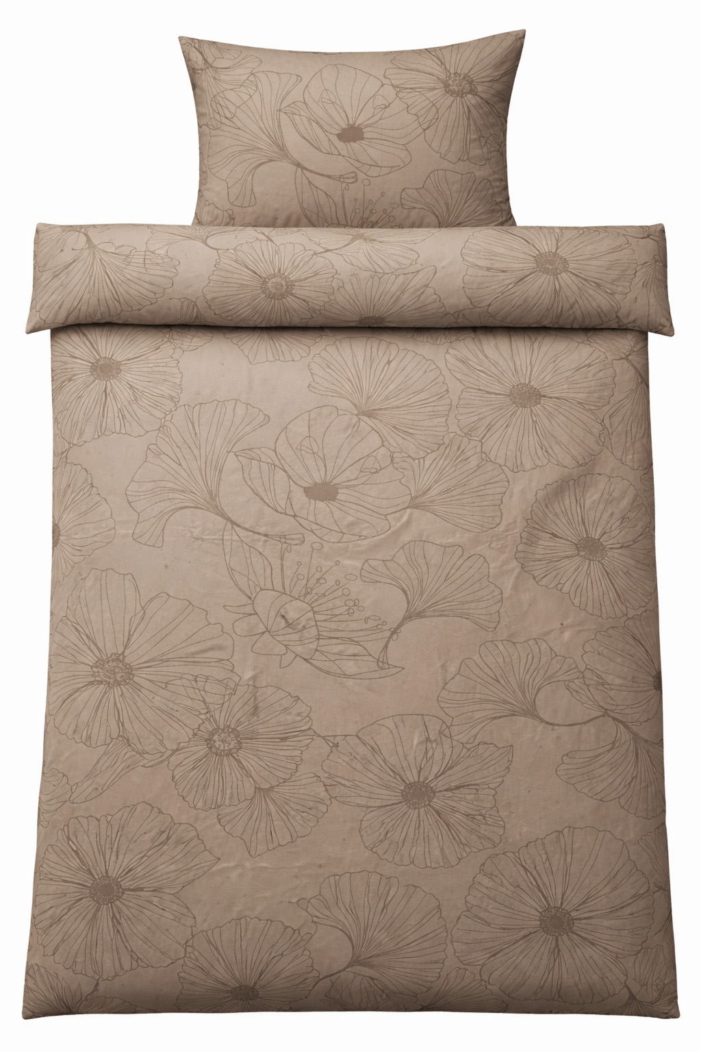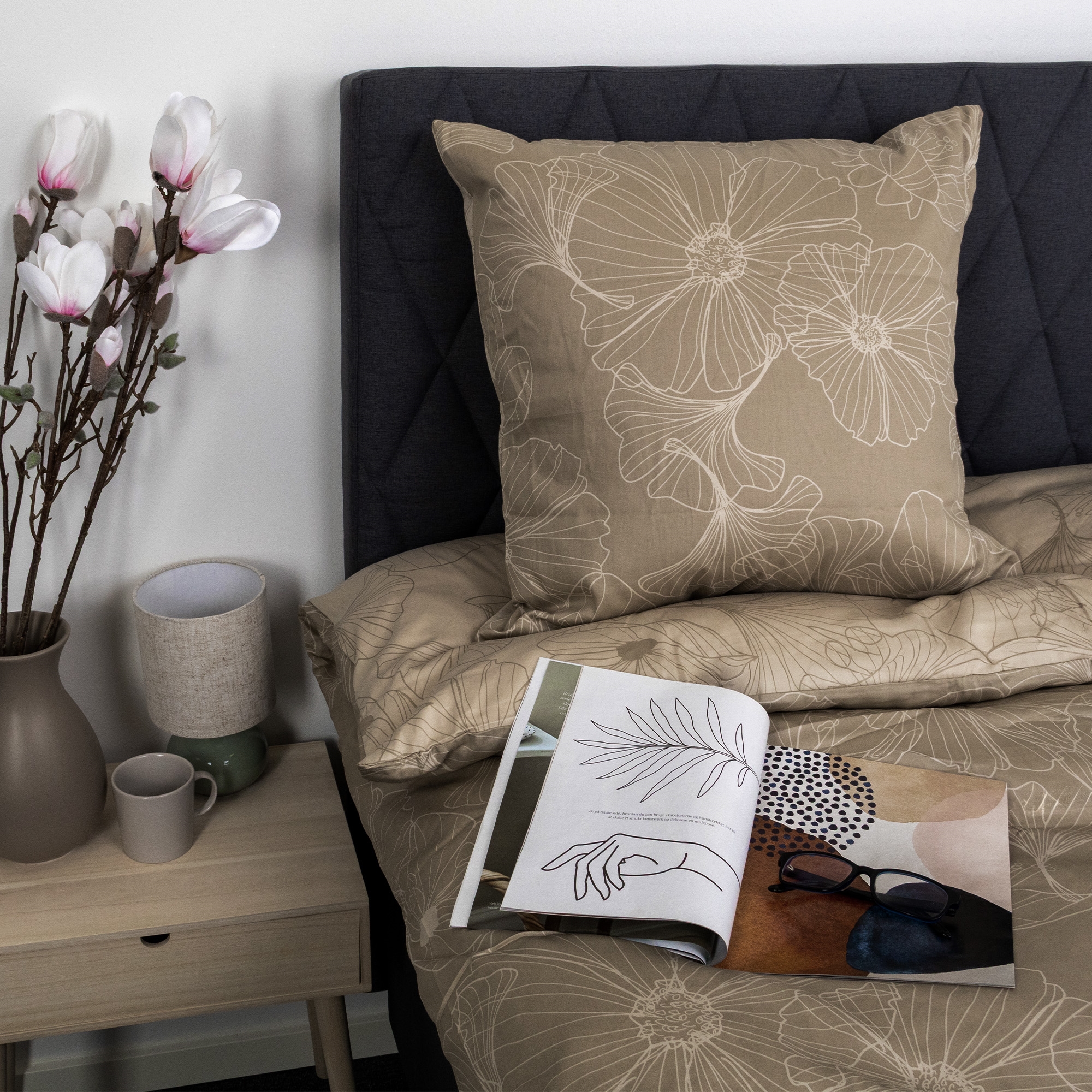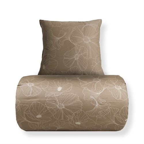 Het omkeerbare design geeft u twee verschillende looks in één set. De voorzijde heeft een elegant bloemenprint in een licht zandkleurige tint, terwijl de achterzijde donker zandkleurig is. Dit maakt het beddengoed gemakkelijk te combineren met verschillende kleuren, kussens en plaids en biedt meer flexibiliteit in de inrichting.