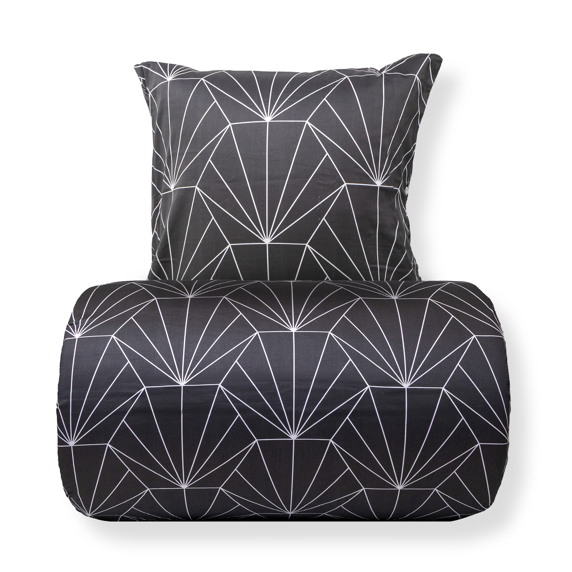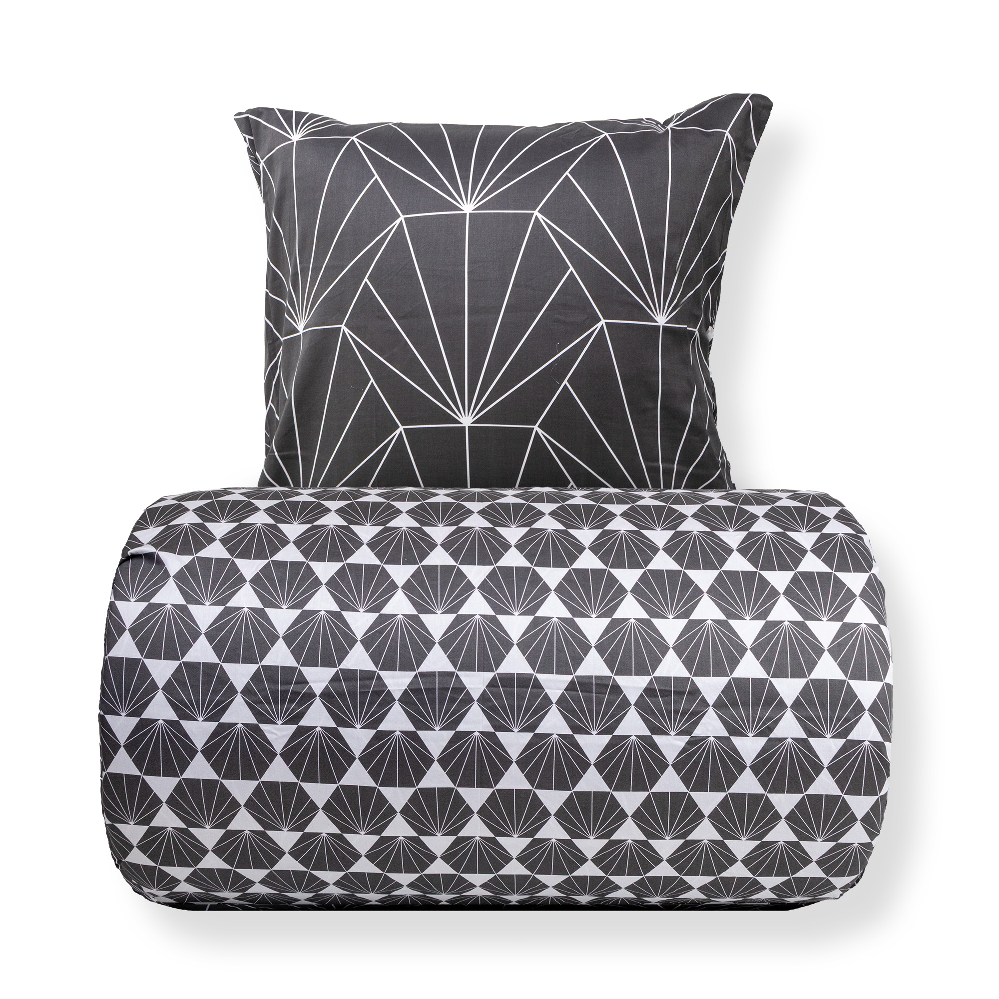 Het wendbare design geeft u twee verschillende looks in één set. De voorkant is gedecoreerd met een modern grafisch patroon, terwijl de achterkant een meer ingetogen geometrische uitstraling heeft. Dit maakt het beddengoed gemakkelijk te combineren met verschillende kleuren, kussens en plaids en biedt meer flexibiliteit in de inrichting.