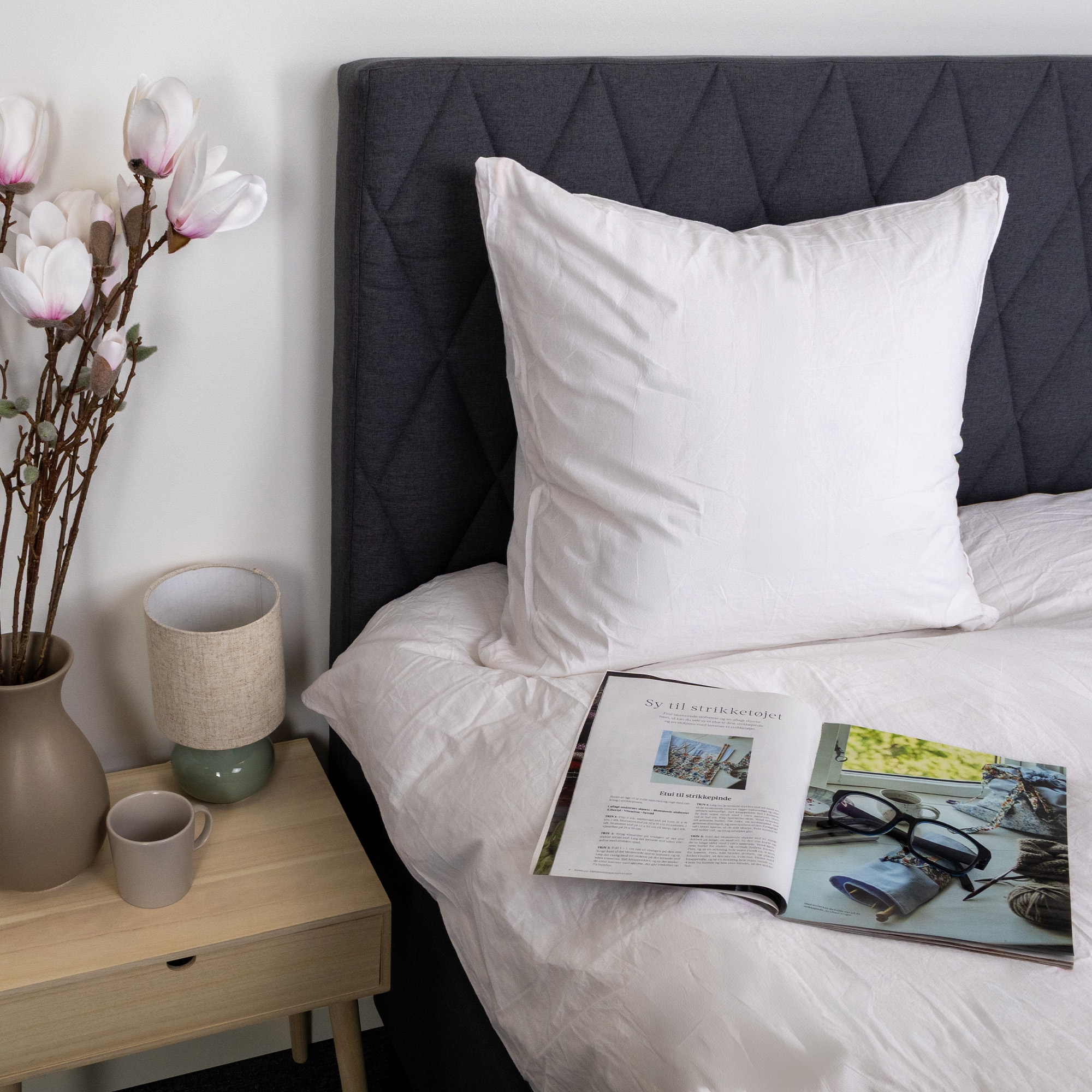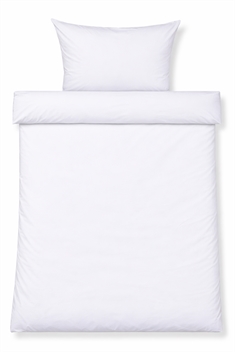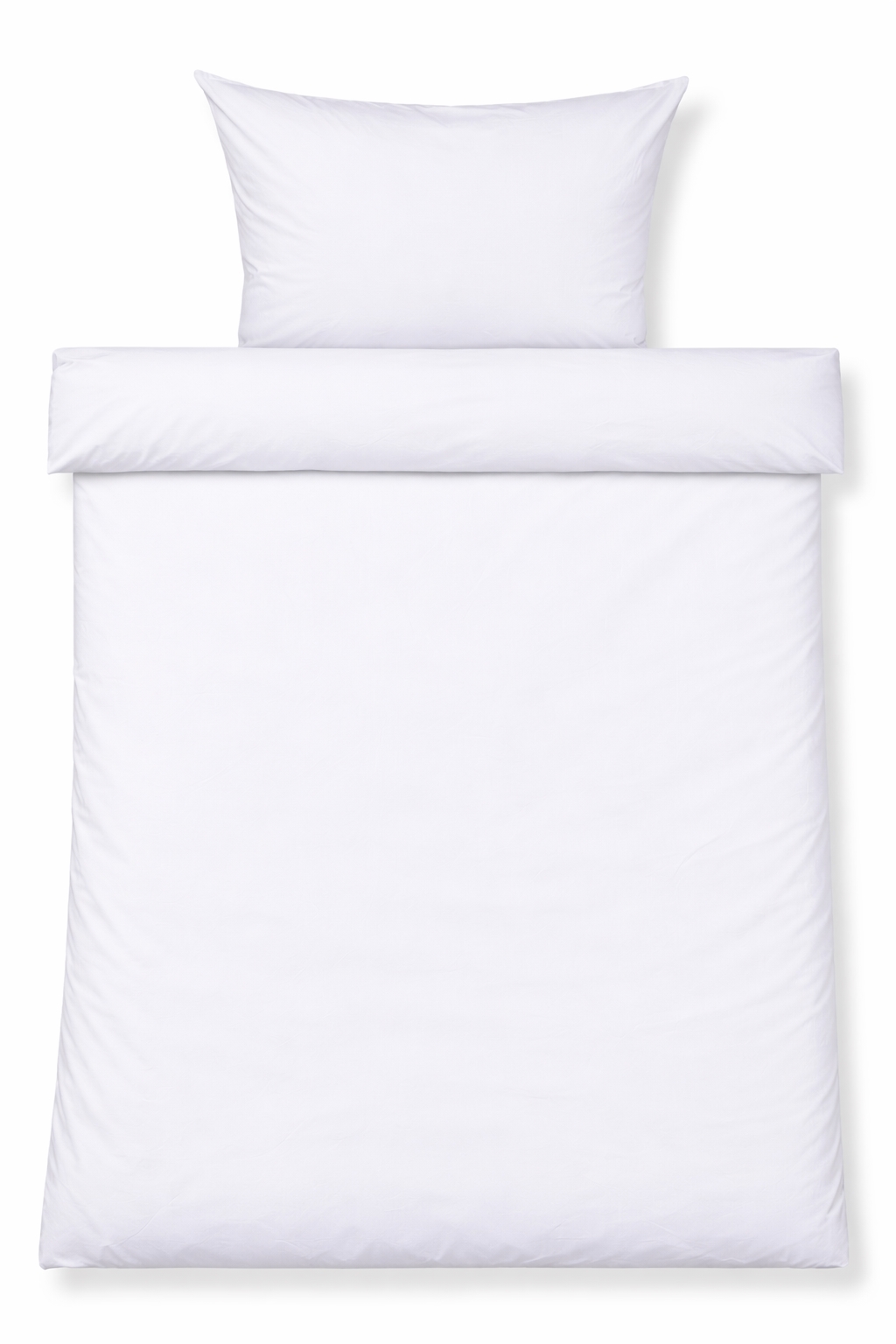Dekbedovertrek en kussensloop sluiten met een verborgen rits aan de binnenkant, wat zorgt voor een nette uitstraling en het verwisselen van beddengoed vereenvoudigt. De witte tint en het effen design maken de set eenvoudig te combineren met zowel lichte als donkere elementen in de slaapkamer.