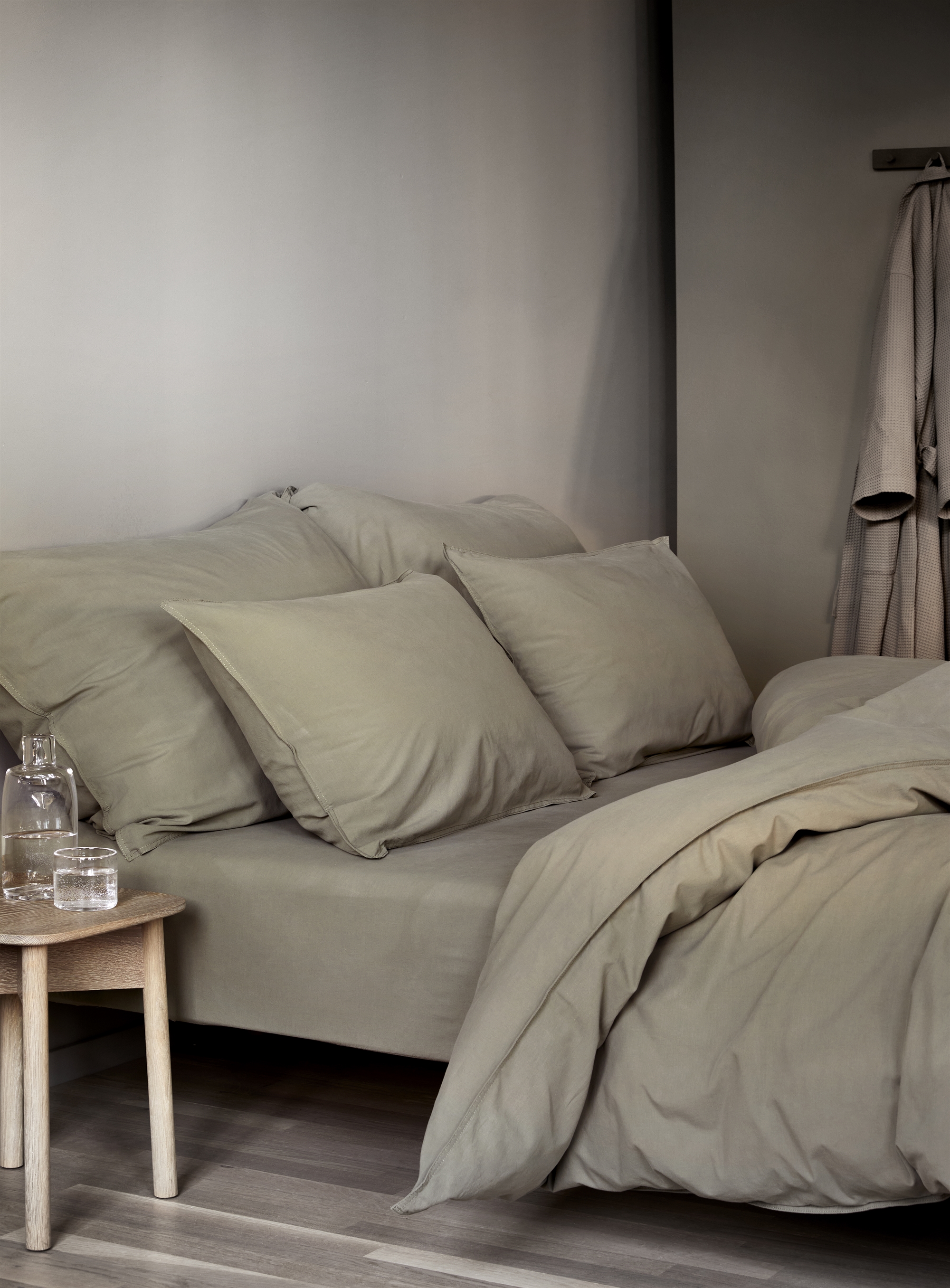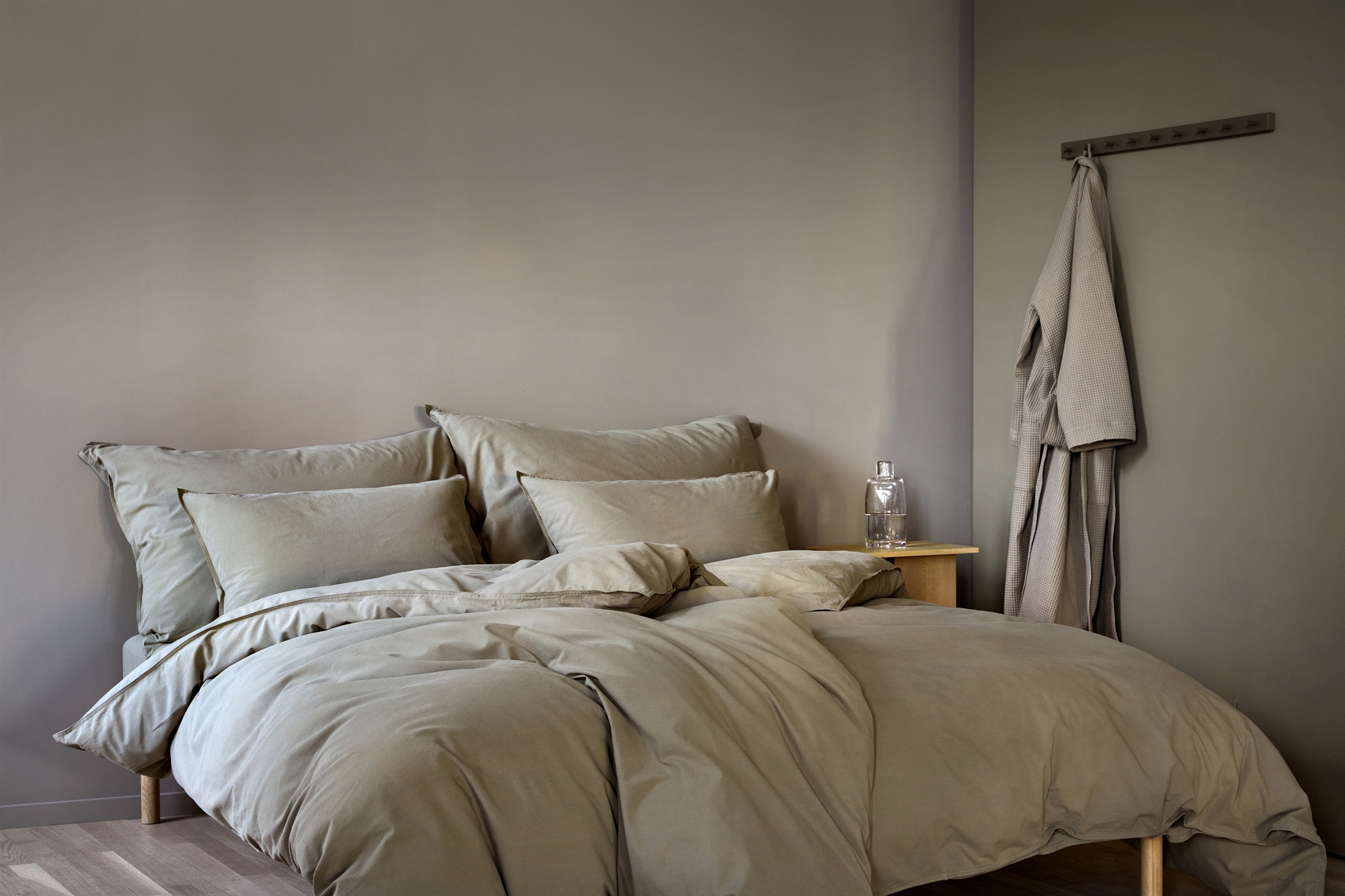 Voorpagina »Beddengoed » Eenpersoons beddengoed » Extra lang beddengoed 140x220 cm Biologisch beddengoed 140x220 cm - 100% stonewashed katoen - Frøya olijfgroen - Høie of Scandinavia beddengoed Bespaar25% Høie Of Scandinavia 108,9981,99EURSpar 27,- Op voorraad Selecteer maat Selecteer variant Aantal In winkelwagen Bekijk meer van:Høie Of Scandinavia Artikelnr:8243-2 Lees onze beddengoedsgids Bekijk ons grote assortiment lakens Heb je vragen over het product? Stonewashed katoen - Voor een robuuste lookExtra fijne wevingSvanemærket Dekbedovertrek: 140x220 cm Kussensloop: 1 st. à 60x63 cm Materiaal: 100% stonewashed, biologisch katoen Weving: Extra fijn 300TC (Thread count = aantal draden per vierkante inch) Kleur: Olijfgroen Design: Frøya olijfgroen Merk: Høie of Scandinavia Sluiting: Dekbedovertrek met knopen, kussensloop met overlap Wassen: 60°C Drogen in wasdroger: Ja Strijken: Ja Certificering: Svanemærket (2112 0008) Certificering: MADE IN GREEN by OEKO-TEX® (M1VLV2KU7). Uw garantie dat het product vrij is van schadelijke chemicaliën voor de gezondheid. Heerlijk beddengoed van 100% biologisch katoen, dat zowel vriendelijk is voor het milieu als zacht op de huid. Het set is garengeverfd, wat zorgt voor een duurzame kleur die mooi blijft, was na was. De stonewashed look geeft een zachte en licht gekreukte structuur. Goed om te weten: in de Frøya-serie wordt 30% minder water gebruikt dan bij traditionele verftechnieken. De Frøya-serie is gemaakt van 100% biologisch katoen, dat garengeverfd en stonewashed is, wat de vezels verzacht en precies die unieke behandeling geeft waardoor het beddengoed die echte stonewashed finish en look krijgt en een natuurlijke gekreukte uitstraling. Dat het set garengeverfd is betekent dat het katoengaren gekleurd wordt voordat het geweven wordt. Er is gekozen voor katoen dat bekend staat om zijn zuiverheid en hoge slijtvastheid, en de extra fijne katoenvezels voelen aangenaam op de huid. Als je van robuust beddengoed houdt dat je jaar na jaar kunt waarderen, is de Frøya-serie wat je in de slaapkamer wilt laten stralen. De stonewash geeft het beddengoed ook een meer ontspannen uitstraling, die op precies de juiste manier kreukt. Goed om te weten is dat in de Frøya-serie 30% minder water wordt gebruikt dan bij traditionele verftechnieken - en dat het Svanemærket is voor een betere morgen. Het beddengoed is OEKO-TEX gecertificeerd, wat betekent dat het getest is en vrij van schadelijke chemicaliën voor de gezondheid. Dit is een teken van verantwoorde productie, dat niet alleen het milieu ten goede komt, maar ook ons lichaam en onze huid, omdat het het risico op allergische reacties vermindert. Bekijk het ruime assortiment van Høie hier Høie is een Scandinavisch merk dat traditie en vernieuwing verenigt. Het bedrijf bestaat sinds 1850 en heeft door de jaren heen bijgedragen aan de vorming en ontwikkeling van Scandinavische textiel en ontwerpen. Beddengoed van Høie is dagelijkse luxe die iedereen verdient. Vind kwaliteitslakens hier Terug naar Extra lang beddengoed 140x220 cm