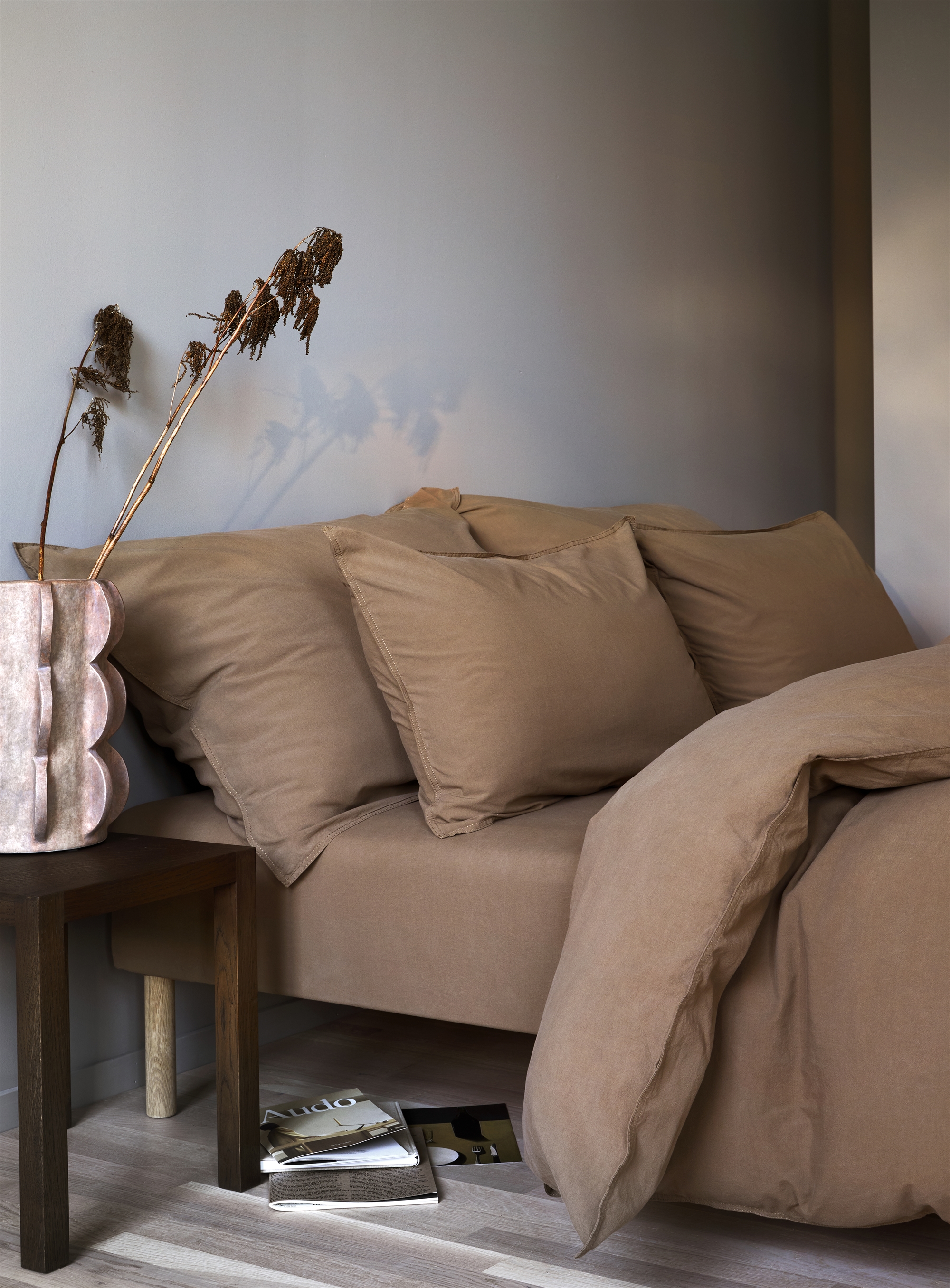 Voorpagina »Beddengoed » Tweepersoons beddengoed » Tweepersoons beddengoed 200x220 cm Biologisch tweepersoons beddengoed 200x220 cm - 100% stonewashed katoen - Frøya karamelbruin - Høie of Scandinavia bedlinnen 2 x kussensloopBespaar25% Høie Of Scandinavia 163,49122,49EURSpar 41,- Gratis verzending voor dit artikelOp voorraad Selecteer maat Selecteer variant Aantal In winkelwagen Bekijk meer van:Høie Of Scandinavia Artikelnr:8249-5 Lees onze beddengoedgids Bekijk ons grote assortiment lakens Bekijk ons grote assortiment dekbedden 200x220 Heb je vragen over het product? Stonewashed katoen - Voor een rauwe lookExtra fijne wevingSvanemærket Dekbedovertrek: 200x220 cm Kussenslopen: 2 stuks á 60x63 cm Materiaal: 100% stonewashed, biologisch katoen Weving: Extra fijn 300TC (Thread count = antal tråde pr. kvadrattomme) Kleur: Karamelbruin Design: Frøya karamelbruin Merk: Høie of Scandinavia Sluiting: Dekbedovertrek met knopen, kussenslopen met overlap Was: 60° Drogen in de droger: Ja Strijken: Ja Certificering: Svanemærket (2112 0008) Certificering: MADE IN GREEN by OEKO-TEX® (M1VLV2KU7). Jouw garantie dat het product vrij is van schadelijke chemische stoffen. Heerlijk tweepersoons beddengoed in 100% biologisch katoen, dat zowel milieuvriendelijk is als zacht voor de huid. Het hoeslaken is garengeverfd wat zorgt voor een duurzame kleur die mooi blijft, was na was. De stonewashed look geeft een zachte en licht gekreukte structuur. Goed om te weten is dat er in de Frøya-serie 30% minder water wordt gebruikt dan bij traditionele verfmethoden. De Frøya-serie is geproduceerd van 100% biologisch katoen, dat garengeverfd en stonewashed is, wat de vezels verzacht en precies die unieke behandeling geeft waardoor het tweepersoons beddengoed die echte stonewashed finish en look krijgt en een natuurlijke gekreukte uitstraling. Het garengeverfde proces betekent dat de katoendraad wordt geverfd voordat het geweven wordt. Er is katoen gekozen dat bekend staat om zijn zuiverheid en hoge slijtvastheid, en de extra fijne katoendraden voelen aangenaam aan op de huid. Als je houdt van een rauw beddengoed dat je jaar na jaar kunt blijven waarderen, is de Frøya-serie degene die moet schitteren in de slaapkamer. De stonewash zorgt ook voor een meer ontspannen uitstraling van het beddengoed, dat op de juiste manier kreukt. Goed om te weten is dat er in de Frøya-serie 30% minder water wordt gebruikt dan bij traditionele verfmethoden - en dat het Svanemærket is voor een betere morgen. Het tweepersoons beddengoed is OEKO-TEX gecertificeerd, wat betekent dat het getest is en vrij van schadelijke chemicaliën. Dit is een teken van verantwoorde productie, wat niet alleen het milieu ten goede komt, maar ook ons lichaam en onze huid, omdat het het risico op allergische reacties vermindert. Bekijk het uitgebreide assortiment van Høie hier Høie is een Scandinavisch merk dat traditie verenigt met vernieuwing. Het bedrijf bestaat sinds 1850 en heeft door de jaren heen bijgedragen aan de vormgeving en ontwikkeling van Scandinavische textiel en design. Beddengoed van Høie is alledaagse luxe die iedereen verdient. Vind kwaliteitslakens hier Terug naar Tweepersoons beddengoed 200x220 cm