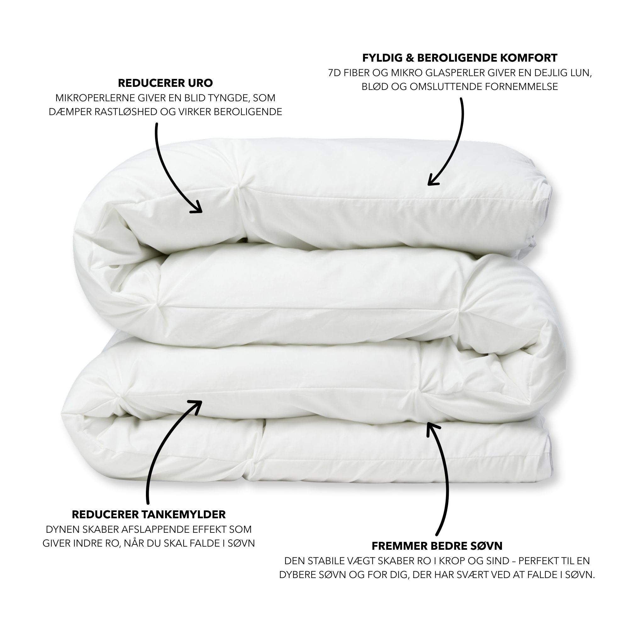 Voorpagina »Dekbedden » Eenpersoons dekbedden » Eenpersoons dekbed 140x200 cm Dekbed 140x200 cm - Hybride verzwaarde dekbed 7 kg met glasparels - Vierseizoenen dekbed met extra gewicht - Warm verzwaard dekbed van Nordstrand Home Bespaar39% Nordstrand Home 312,99190,49EURSpar 122,- Gratis verzending voor dit artikelOp voorraad Aantal In winkelwagen Bekijk meer van:Nordstrand Home Artikelnr:NS770-1 Lees onze dekbedgids Lees over het onderhoud van dekbedden en kussens Bekijk ons grote assortiment kussens Heb je vragen over het product? Gecombineerd vezel- & verzwaard dekbedVol & zacht100% ademende katoenen tijk Afmeting: 140x200 cm Type: Hybride verzwaard dekbed - Vezeldekbed met gewicht Leeftijd vanaf: +3 jaar Vulling: Micro glasparels & 7D polyestervezel Totale gewicht: 7 kg Tijk: 100% katoen Constructie: 6 doorgestikte kanalen & 10x14 cassettes - voor gelijkmatige warmte- & gewichtsverdeling Met lussen voor bevestiging van beddengoed in elke hoek Merk: Nordstrand Home Wassen: 30° fijnwas Drogen: Nee Onderhoud: Het wordt aanbevolen om het dekbed te luchten. Niet kloppen of stofzuigen. Certificering: STANDARD 100 by OEKO-TEX® (22.HCN.43663). Uw garantie dat het product vrij is van schadelijke chemicaliën. Een heerlijk warm hybride dekbed - dat alles combineert wat goed is van een verzwaard dekbed, met de volheid van een heerlijk vezeldekbed. De fijne micro glasparels aan de ene kant van het dekbed zorgen voor een goed en hoog gewicht, terwijl de vezelvulling aan de andere kant van het dekbed zorgt voor de heerlijke volheid en gelijkmatige warmte. Het unieke verzwaarde dekbed, ook wel hybride dekbed genoemd, is een combinatie dekbed dat je de juiste balans geeft van gewicht, rust, hoog comfort en heerlijke warme warmte. Een vierseizoenen dekbed samengesteld uit zachte 7D vezel en micro glasparels, met een heerlijke 100% katoenen tijk. Elk van de 3 materialen heeft eigenschappen die samen een dekbed creëren dat voldoet aan een behoefte aan rust, comfort en warmte, die niet te vinden is bij andere soorten dekbedden. Het hybride dekbed is een uniek en innovatief element voor je slaap, dat slaapstoornissen vermindert, meer lichamelijke rust creëert en je de mogelijkheid biedt voor een betere slaap. Met het hybride dekbed wordt nu een extra niveau gecreëerd - het gewicht wordt gecombineerd met een heerlijk zacht vezeldekbed, en er wordt nu ook een heerlijke warme nachtrust en hoog comfort gecreëerd. Het dekbed mag niet worden gebruikt door personen met een laag lichaamsgewicht, kleine kinderen of zwangere vrouwen. Het dekbed mag niet worden gebruikt door kinderen onder de 3 jaar. We raden aan om een verzwaard dekbed te kiezen dat ongeveer 10% van je lichaamsgewicht is. Als je het moeilijker vindt om 's nachts om te draaien, kies dan een verzwaard dekbed dat iets onder de 10% ligt. Functie van het verzwaarde dekbed: Het gewicht van het glaspareldekbed stimuleert het zenuwstelsel van het lichaam en kalmeert daardoor lichaam en geest, zodat het gemakkelijker is om tot rust te komen. Voor velen kan het een grote uitdaging zijn om 's avonds het lichaam tot rust te brengen, en ook de gedachten. Dit dekbed is geproduceerd om precies deze uitdaging op te lossen. Als het lichaam tot rust komt, zul je meestal merken dat de gedachten ook volgen, en omgekeerd. Het verzwaarde dekbed is daarom bijzonder geschikt voor mensen die slaapstoornissen ervaren of moeite hebben om in slaap te vallen. Slaapkwaliteit is een van de sleutels tot een geest en lichaam in balans, daarom is het ook belangrijk om dit te optimaliseren en naar het lichaam te luisteren wanneer het iets signaleert, bijvoorbeeld bij onrust of rusteloosheid. Bekijk ons grote assortiment beddengoed in 140x200 cm hier Met Nordstrand Home ben je verzekerd van woningtextiel in Deens design - in Scandinavische stijl. Nordstrand Home legt grote nadruk op het gevoel van welzijn in een mooie en ontspannen omgeving. Met Nordstrand Home producten hoef je geen compromissen te sluiten, je zult altijd producten vinden binnen het grote assortiment, van hoge kwaliteit en klassiek design in een moderne samenstelling. Nordstrand Home – Zo voel je je thuis! Terug naar Eenpersoons dekbed 140x200 cm