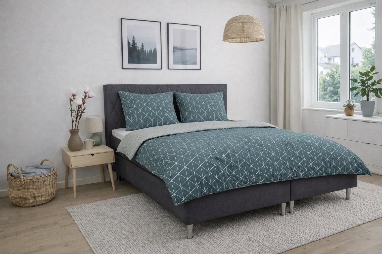 Geeft de slaapkamer een decoratieve en stijlvolle uitstraling met deze dekbedovertrekset in 100% katoen met omkeerbaar harlequin-design. Het omkeerbare design geeft je twee verschillende looks in één set. Hierdoor is het beddengoed gemakkelijk te combineren met verschillende kleuren, kussens en plaids en biedt het meer flexibiliteit in de inrichting.