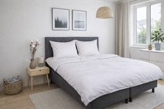 Egyptisch katoen is een natuurlijk en ademend materiaal dat helpt de lichaamstemperatuur 's nachts te reguleren. Tegelijk heeft het materiaal goede vochtabsorberende eigenschappen, die bijdragen aan een droge en comfortabele slaapomgeving.