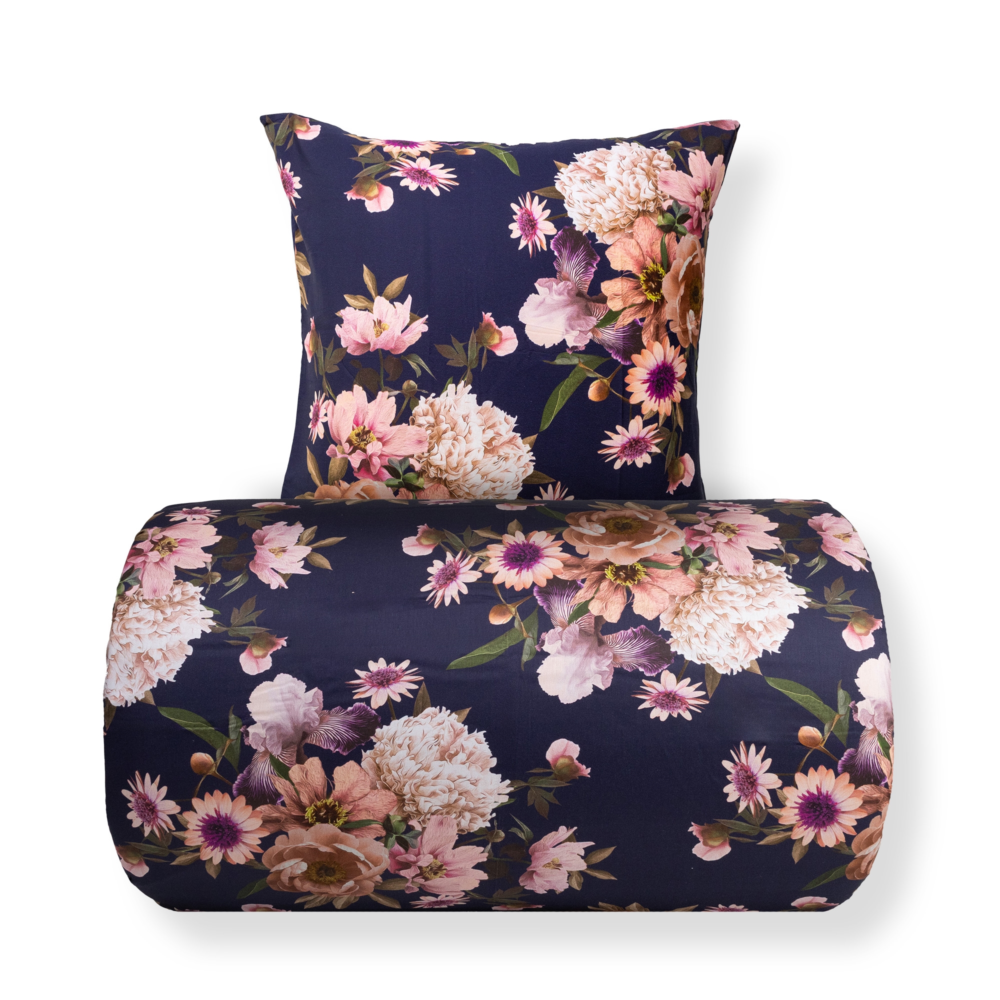 Creîr een elegante en persoonlijke uitstraling in de slaapkamer met deze omkeerbare dekbedovertrekset in 100% katoensatijn. Het beddengoed combineert een mooie bloemenprint in donkerblauw aan de ene kant met een rustige, effen achterkant, zodat u gemakkelijk van uitstraling kunt wisselen afhankelijk van stemming en inrichting.