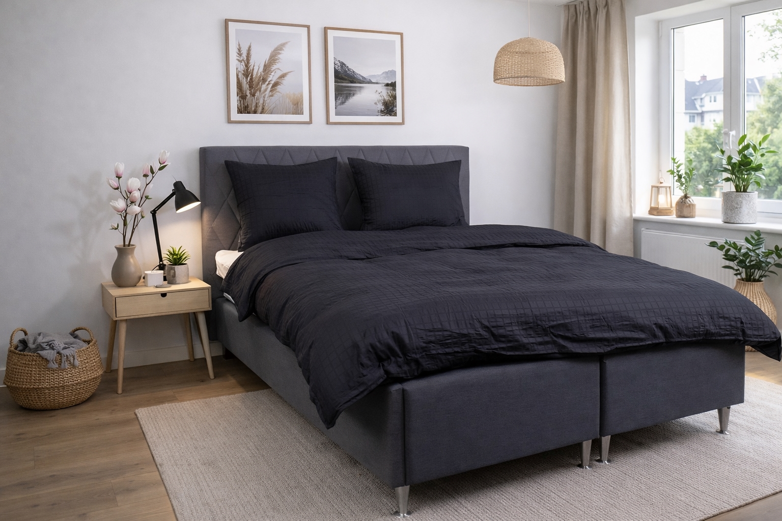 De zwarte ruitjes geven een modern en verfijnd uiterlijk dat perfect past in zowel minimalistische als klassieke slaapkamers. Het dekbedovertrek en de kussenslopen worden gesloten met een onzichtbare rits, wat een nette afwerking geeft en het dekbed stevig op zijn plaats houdt.