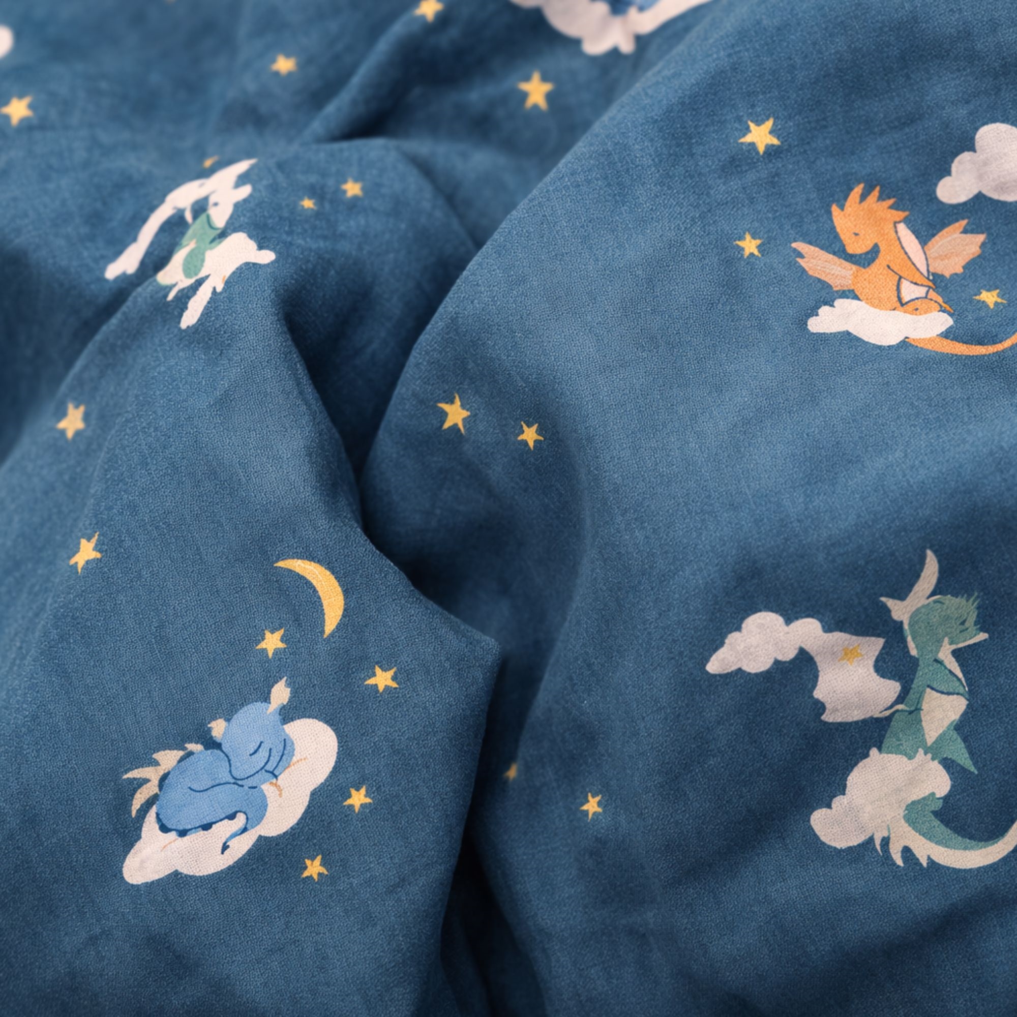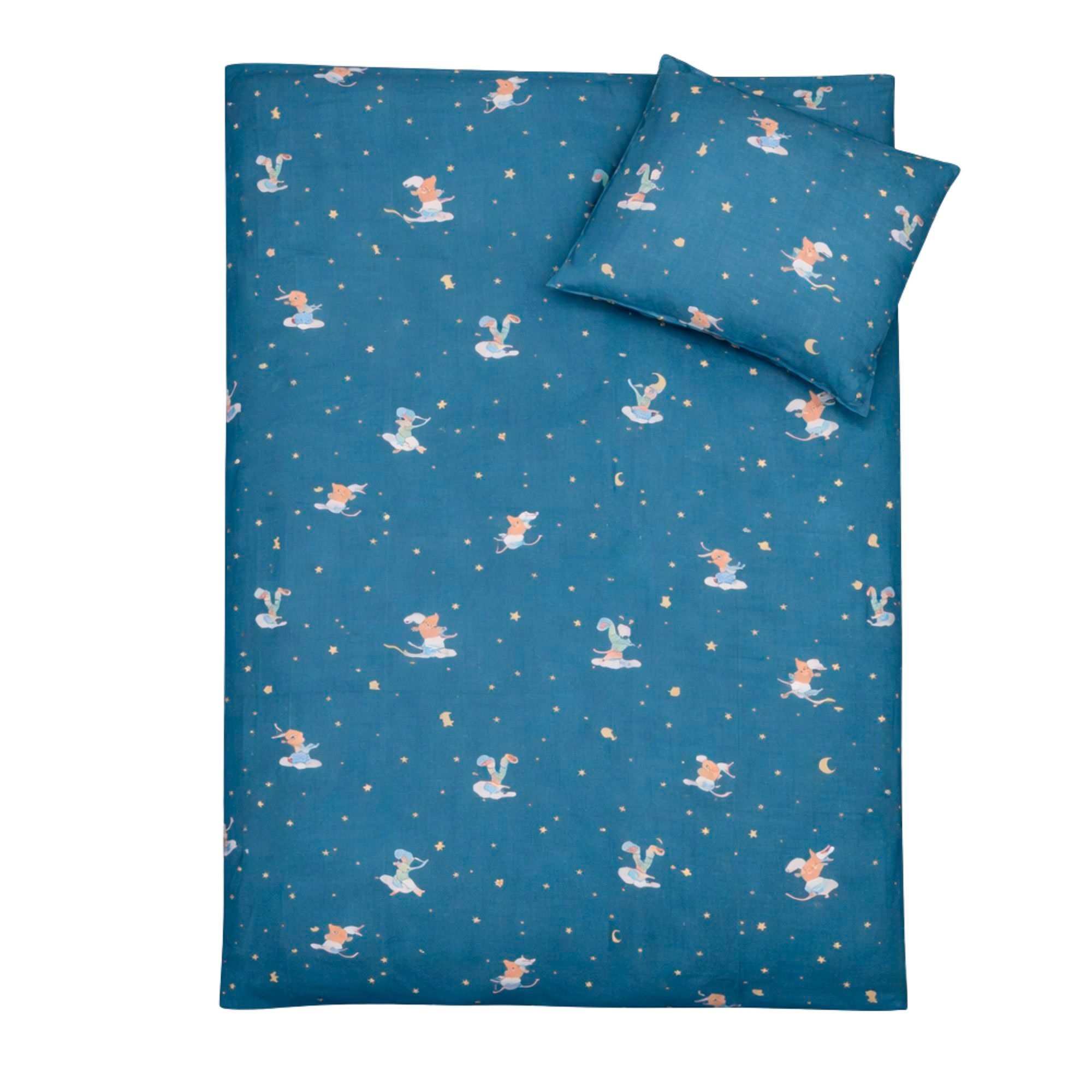 By Mats babybeddengoed 70x100 cm - blauw met draken en wolken