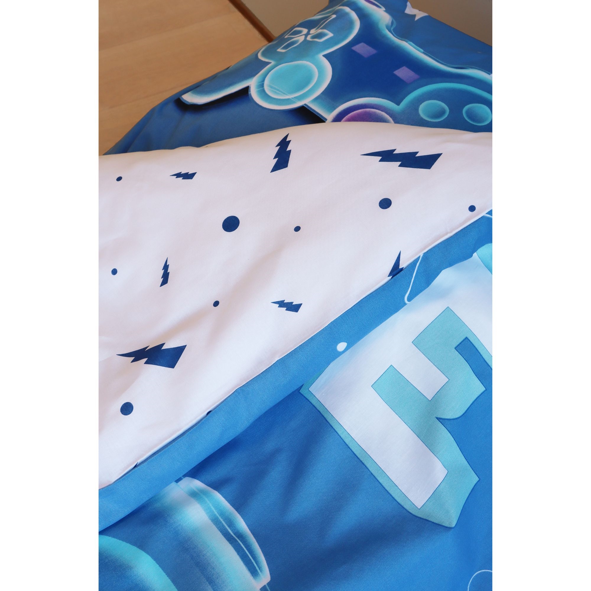 Voorpagina »Beddengoed » Beddengoed voor kinderen » Beddengoed voor kinderen 140x200 cm Gamer-beddengoed - 100% katoen - Kinderbeddengoed 140x200 cm - Blauw - Game Over Bespaar43% Licens 47,9927,49EURBespaar 21,- Op voorraad Aantal In winkelwagen Bekijk meer van:Licens Artikelnr:2471-1 Lees onze beddengoedgids Bekijk ons grote assortiment lakens Bekijk ons grote assortiment dekbedden 140x200 Heb je vragen over het product? Hoge ademende eigenschappen die het slaapcomfort vergroten100% zacht en comfortabel katoenPerfect voor de gamerkamer Dekbedovertrek: 140x200 cm Kussensloop: 60x63 cm Materiaal: 100% zacht katoen Kleur: Blauw en wit Design: Gamer Keerbaar: - Voorzijde: Controller - Achterzijde: Volledige print van een bliksem Sluiting: Dekbedovertrek met knopen en kussensloop met overlap Wassen: 60°C Drogen: Ja Geschikt om te strijken: Ja Certificering: STANDARD 100 by OEKO-TEX® (17.HPK.23879). Uw garantie dat het product vrij is van gezondheidsschadelijke chemicaliën. Gamer-beddengoed 140x200 cm - Blauw gamer-beddenset in 100% katoen Dit kindersets is vervaardigd van 100% zacht katoen, dat hoog comfort combineert met duurzame kwaliteit. Het pure katoen maakt het beddengoed ademend en prettig tegen de huid, zodat uw kind de beste voorwaarden heeft voor een goede en veilige nachtrust. Als u kiest voor kinderbeddengoed in 100% katoen, krijgt u: Zachte en comfortabele kwaliteit tegen de huid Hoge ademende eigenschappen voor een gezond slaapklimaat Slijtvast materiaal dat was na was meegaat Kinderslaapgoed moet tegen een stootje kunnen. Daarom kan ons katoenen beddengoed gewassen worden op 60°C, wat bijdraagt aan een hoog hygiëneniveau. De hoge wastemperatuur helpt bij het verwijderen van bacteriën en houdt het beddengoed fris en schoon. Al ons kinderbeddengoed in 140x200 cm is OEKO-TEX gecertificeerd. Dat is uw garantie dat het beddengoed getest is en vrij van schadelijke chemicaliën. Als u kiest voor OEKO-TEX gecertificeerd beddengoed, kiest u voor zekerheid en veiligheid voor uw kind. Geef de kamer een coole gamerlook met dit stoere gamer-beddengoed. Het ontwerp toont een gamecontroller in neon-geïnspireerde stijl samen met de tekst “Game Over”, wat het beddengoed een moderne en gaming-geïnspireerde uitstraling geeft. Ontdek favorieten en nog veel meer in ons ruime assortiment accessoires voor de kinderkamer Terug naar Beddengoed voor kinderen 140x200 cm