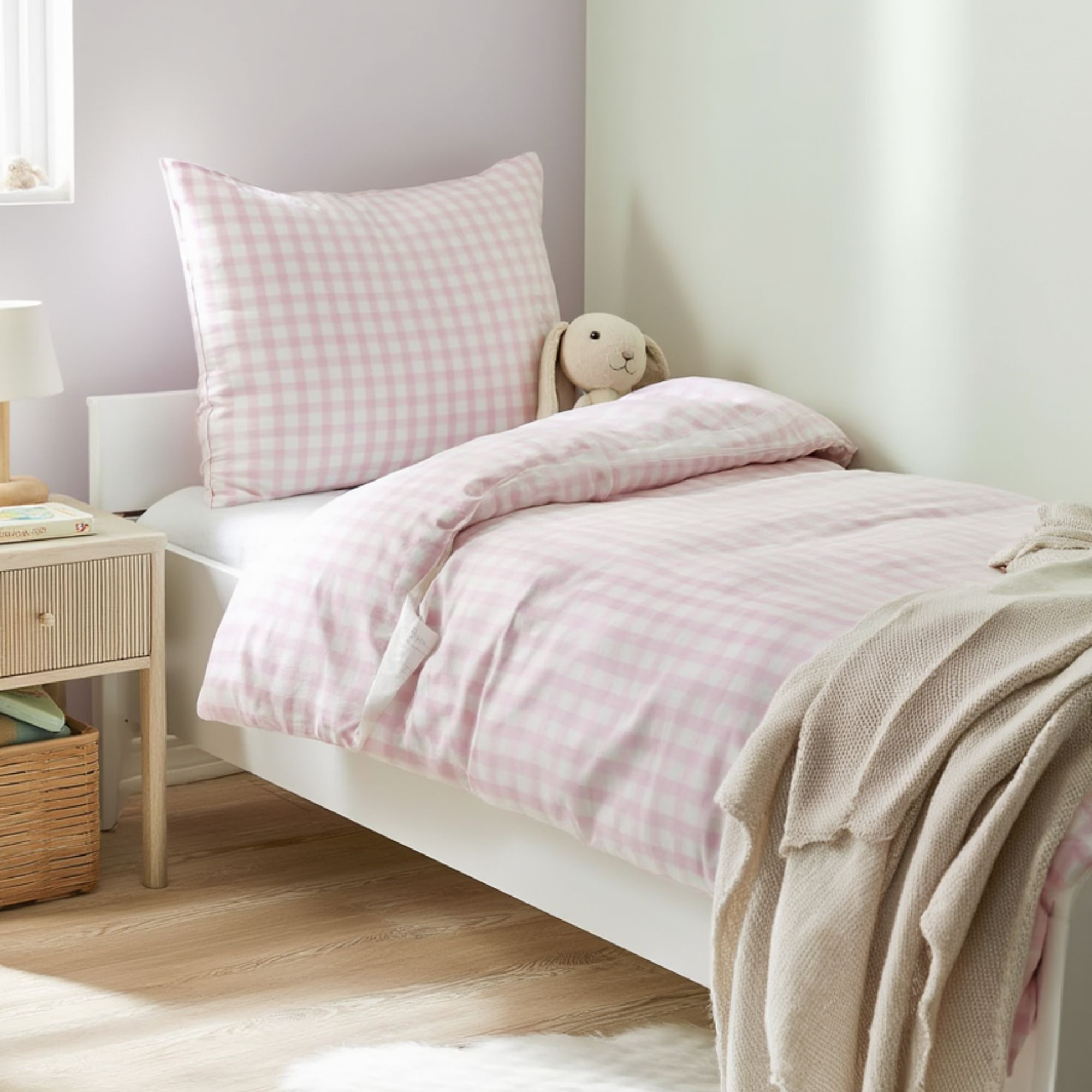 By Mats babybeddengoed 70x100 cm - wit en lichtroze met ruitjes