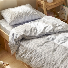 Creëer een lichte en rustige sfeer in de kinderkamer met dit mooie babybeddengoed van By Mats in wit met blauwe strepen. Het eenvoudige en Scandinavische ontwerp geeft een zachte en harmonieuze uitstraling, die mooi past in zowel moderne als klassieke interieurs.