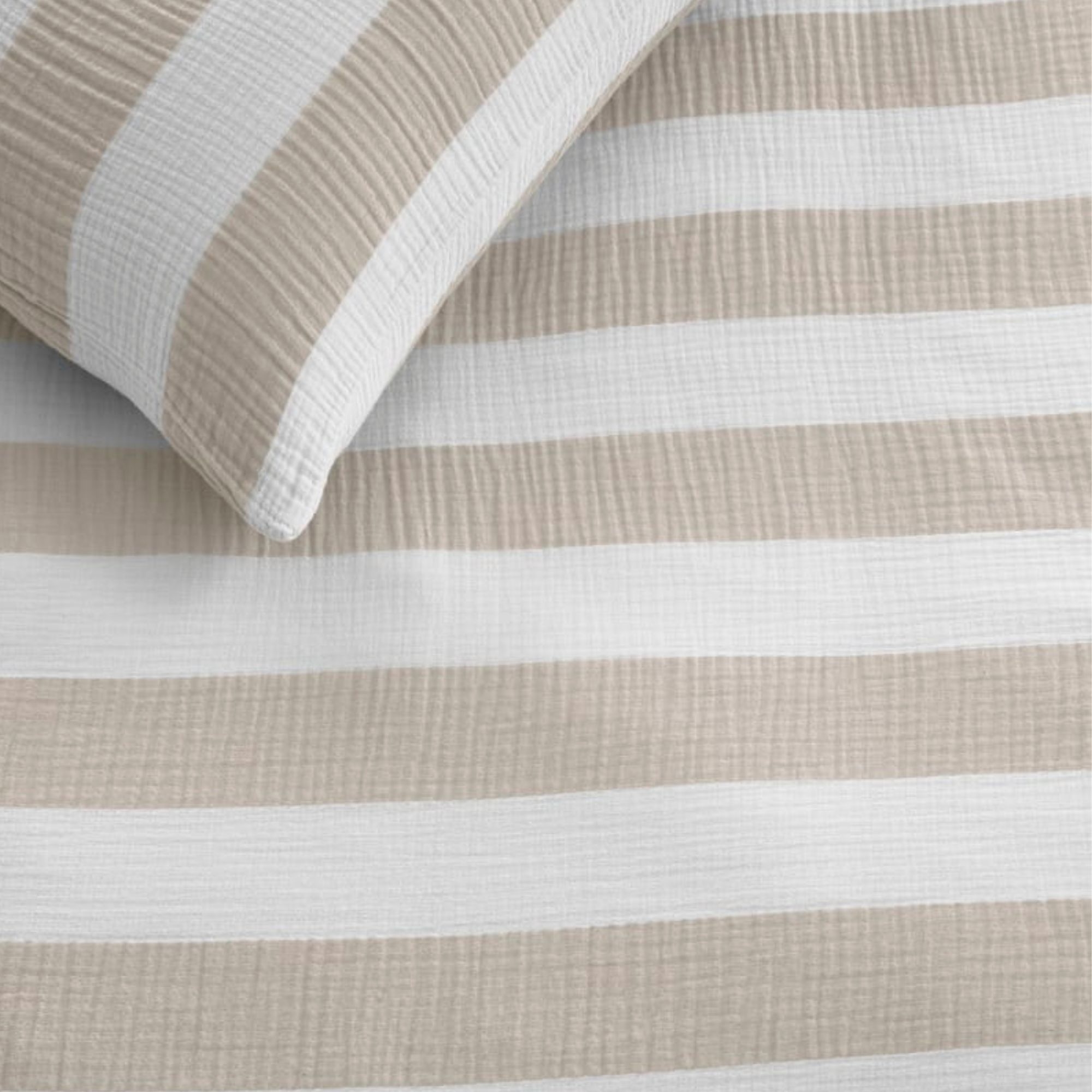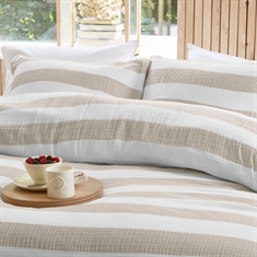 Voorpagina »Beddengoed » Eenpersoons beddengoed » Eenpersoons beddengoed 140x200 cm Gestreept beddengoed 140x200 cm - Beddenset van 100% zacht mousseline katoen - Striped Sand - Riviéra Maison bedlinnen Bespaar22% Essenza 122,4995,49EURSpar 27,- Gratis verzending voor dit artikelOp voorraad Aantal In winkelwagen Bekijk meer van:Essenza Artikelnr:331778-1 Lees onze beddengoedgids Bekijk ons grote assortiment hoeslakens Bekijk ons grote assortiment dekbedden 140x200 Heb je vragen over het product? OEKO-TEX certificering100% zacht katoenZachte en heerlijke kwaliteit Dekbedovertrek: 140x200 cm Kussensloop: 60x63 cm Materiaal: 100% mousseline katoen  Weving: Extra fijne 200TC percale (Thread count = aantal draden per vierkante inch) Kleur: Zandkleurig Design: Striped Sand Merk: Riviéra Maison Sluiting: Dekbedovertrek sluit met rits, kussensloop met overlap Wassen: 60° Drogen in droger: Ja Strijken toegestaan: Ja Certificering: STANDARD 100 by OEKO-TEX® (08-4341 Shirley). Dit garandeert dat het product vrij is van schadelijke chemicaliën. Deze beddenset is gemaakt van 100% mousseline katoen, wat zorgt voor extra zachtheid met goede slijtvastheid. Doordat de stof mousseline is, krijgt het een kreukeffect. Daarnaast is het bedlinnen 100% doorgekleurd, wat betekent dat de kleur tijdens de productie in de katoenvezels wordt gebonden. Dit resulteert in een ongelooflijk hoge kleur- en wasbestendigheid. De beddenset is OEKO-TEX® gecertificeerd. De certificering garandeert dat het product geen schadelijke chemicaliën bevat en onder goede omstandigheden is geproduceerd, zodat je ’s nachts veilig kunt slapen - en wij zorgen ook goed voor het milieu. Verfris je bed en slaapkamer met een mooi en heerlijk beddenset zoals deze. Maak gebruik van de mogelijkheid om maximale slaapcomfort te garanderen door een nieuw zacht hoeslaken van hoge kwaliteit toe te voegen. Bekijk hier ons grote assortiment kwaliteits hoeslakens Terug naar Eenpersoons beddengoed 140x200 cm