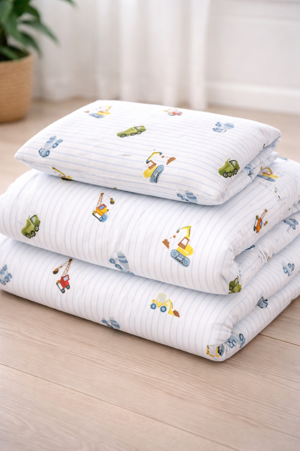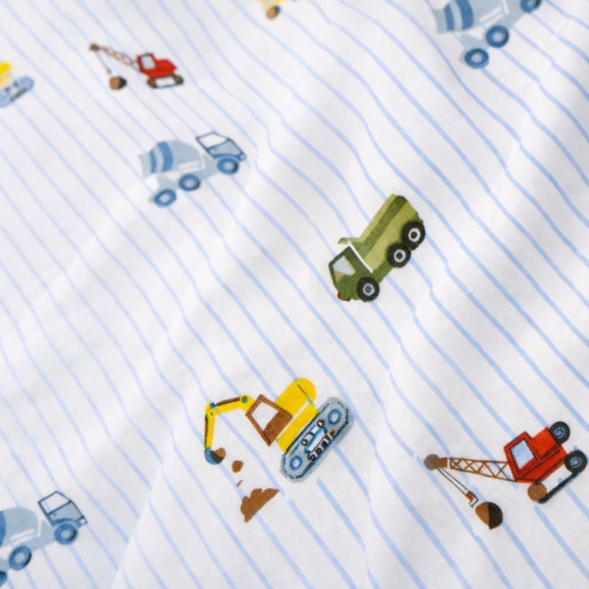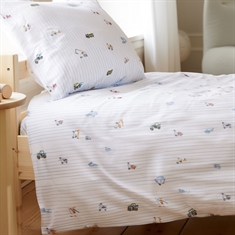By Mats babybeddengoed 70x100 cm - wit met blauwe strepen en bouwmachines