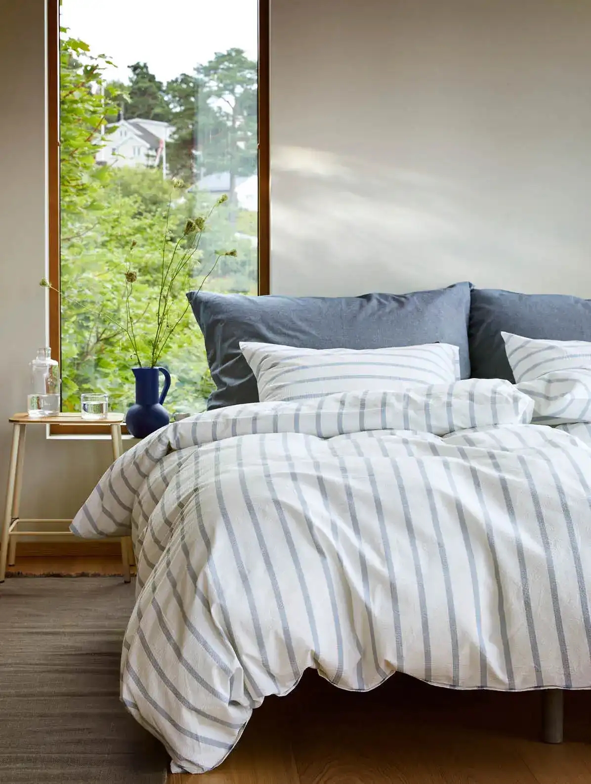 Voorpagina »Beddengoed » Eenpersoons beddengoed » Extra lang beddengoed 140x220 cm Geweven krepp beddengoed 140x220 cm - 100% zacht katoen - Wit met blauwe strepen - Seersucker beddengoed - Eilert Høie Of Scandinavia Bespaar36% Høie Of Scandinavia 95,4961,49EURSpar 34,- Op voorraad Selecteer maat Selecteer variant Aantal In winkelwagen Bekijk meer van:Høie Of Scandinavia Artikelnr:8037-2 Lees onze beddengoedgids Bekijk ons grote assortiment lakens Heb je vragen over het product? OEKO-TEX® gecertificeerdZacht, licht en luchtigExclusief luchtig geweven krepp Dekbedovertrek: 140x220 cm Kussensloop: 1 st. à 60x63 cm Materiaal: 100% zacht katoen - Geweven krepp Weving: 200TC Seersucker beddengoed (Thread count = aantal draden per vierkante inch) Kleur: Wit met blauwe strepen Design: Eilert denim blauw Merk: Høie of Scandinavia Sluiting: Dekbedovertrek met ritssluiting, kussensloop met overlap Wassen: 60° Drogen: Ja Strijken: Nee Certificering: STANDARD 100 by OEKO-TEX® (19.HIN.85821 HOHENSTEIN HTTI). Uw garantie dat het product getest is en vrij van schadelijke stoffen. De extra fijne katoenvezels creëren een delicate kreppweving. Perfect voor wie van de zachte en knisperende sensatie houdt. In geweven katoenen krepp van 100% katoen ontstaan de unieke luchtzakken in de weving. De kreppweving is warm in de winter en koel in de zomer, en geeft een zachte en krokante sensatie die was na was behouden blijft. Een klassieker die niet gestreken hoeft te worden. Dit gestreepte beddengoed is vervaardigd van 100% zacht katoen met de weefmethode Seersucker beddengoed, ook wel katoenen krepp genoemd. Deze weving geeft het kreukeffect en zorgt voor holtes met kleine luchtzakken in het materiaal, waardoor het beddengoed licht, luchtig en vaak koeler aanvoelt dan andere materiaalsoorten. In de zomer voelt het beddengoed luchtig aan, en in de winter merk je de warmte van het zachte katoen, wat een unieke voordeel is die deze mooie combinatie van materiaal en weving biedt. Het dekbedovertrek hoeft niet gestreken te worden, omdat het zijn luchtzakken in de weving heeft. Beddengoed met dit type weving is bijzonder geschikt voor wie soms last heeft van warmte 's nachts; het beddengoed kan dan zorgen voor verbeterde ademendheid en een hoog absorptievermogen. Koop eenvoudig kussenslopen voor uw extra kussens hier Vernieuw het bed en de slaapkamer met een mooi en heerlijk set beddengoed als dit. Gebruik ook de mogelijkheid om maximaal slaapcomfort te garanderen door een nieuw zacht laken van hoge kwaliteit toe te voegen. U vindt ons grote assortiment kwaliteitslakens hier Høie is een Scandinavisch merk dat traditie verenigt met vernieuwing. Het bedrijf bestaat sinds 1850 en heeft door de jaren heen bijgedragen aan de vorming en ontwikkeling van Scandinavische textiel en designs. Beddengoed van Høie is alledaagse luxe die iedereen verdient. Terug naar Extra lang beddengoed 140x220 cm