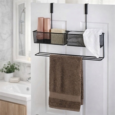Voorpagina »Inrichting » Badkamer accessoires » Opbergen badkamer Hangopslag - Slimme opslag - Zwart metalen ophangrek voor deur met 2 manden - Draadmand Bespaar50% Borg Living 40,9920,49EURBespaar 20,- Op voorraad Aantal In winkelwagen Bekijk meer van:Borg Living Artikelnr:SM005 Bekijk ons assortiment handdoekenpakketten Bekijk ons assortiment badkameropslag Heb je vragen over het product? Slim ophangsysteemVeel mogelijkhedenMooi en eenvoudig design Type: Hangopslag voor de deur Totaal afmetingen: 35x16x60 cm Maat mand: 10x15x25 cm Materiaal: Gepoedercoat staal Beugel diepte (voor over de deur): 5 cm Kleur: Zwart Merk: Borg Living Een nette zwarte draadmand met slim ophangsysteem voor de deur. Praktisch voor ruimtes waar opslag makkelijk en direct toegankelijk moet zijn. Gebruik deze hangopslag in de keuken, badkamer, kinderkamer of een andere plek. Een slimme opslag met veel mogelijkheden. Deze slimme opslag bestaat uit twee manden en een handige droogmogelijkheid met drie rijen onder de manden, bijvoorbeeld voor theedoeken, handdoeken of andere items. De hangopslag is effen zwart en gemaakt van staal dat gepoedercoat is. Deze combinatie maakt de manden en het gehele ophangsysteem beter bestand tegen krassen, deuken en is bovendien makkelijk schoon te maken. Bekijk ons grote assortiment woon- en interieuraccessoires Deze metalen dubbele mand in zwart staal van Borg Living is een slimme en discrete manier om spullen te organiseren. Of je hem nu gebruikt in een kleine ruimte, op kantoor, in de badkamer of in de keuken, deze deurmand is een praktische opbergoplossing die weinig ruimte inneemt. Benut de ruimte op de deur op een slimme en decoratieve manier met deze metalen mand met ophangrek voor de deur. Deze slimme opslag is ontworpen om aan de deur te hangen zonder gebruik van schroeven of gaten, waardoor je ruimte kunt benutten die je normaal misschien niet zou gebruiken. Je krijgt extra opbergruimte zonder vloeroppervlak te gebruiken, wat voor velen waardevol is, bijvoorbeeld in kleine kamers of ruimtes. Dit is vooral praktisch in kleinere ruimtes waar de ruimte beperkt is. Het eenvoudige en stijlvolle design zorgt ervoor dat het in elk interieur past. De zwarte kleur is tijdloos en elegant, en het minimalistische ontwerp maakt dat het in de meeste interieurs past. Daarnaast is de mand gemakkelijk te decoreren, bijvoorbeeld met een lichtsnoer, een bloem of iets anders, wat een gezellige afwerking geeft. Bekijk al onze slimme opbergoplossingen via deze link Terug naar Opbergen badkamer