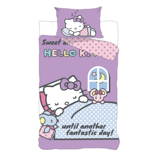Voorpagina »Beddengoed » Beddengoed voor kinderen » Junior beddengoed 100x140 cm Hello Kitty beddengoed 100x140 cm - Paars junior dekbedovertrek met Hello Kitty - Keerbaar motief - 100% katoenen bedlinnen Bespaar57% Licens 47,9920,49EURSpar 28,- Op voorraad Aantal In winkelwagen Bekijk meer van:Licens Artikelnr:3603-8 Lees onze beddengoedgids Bekijk ons grote assortiment hoeslakens Bekijk ons grote assortiment dekbedden 100x140 Heb je vragen over het product? Hoge ademend vermogen100% zacht katoenOEKO-TEX® gecertificeerd Dekbedovertrek: 100x140 cm - Junior dekbedovertrekset Kussensloop: 40x45 cm Materiaal: 100% zacht katoen Kleur: Paars Motief: Hello Kitty Design: Keerbaar - Voorkant met Hello Kitty en tekst, achterkant met stippen Sluiting: Dekbedovertrek met knopen, kussensloop met overlap Wassen: 60° Drogen in droger: Ja Strijkbestendig: Ja Certificering: STANDARD 100 by OEKO-TEX® (17.HPK.23879). Jouw garantie dat het product vrij is van schadelijke chemicaliën. Zacht junior beddengoed van 100% katoen, met een lief ontwerp van Hello Kitty. Gemaakt met lichte en ademende katoendraden die het beddengoed een zachte uitstraling geven, waardoor het dekbed heerlijk aanvoelt voor je kind om onder te slapen. De balans tussen natuurlijke eigenschappen en comfort van het zachte materiaal, gecombineerd met het gezellige ontwerp, maakt deze set tot een favoriet bij je kind. Hello Kitty junior beddengoed met het lieve kattenmeisje Hello Kitty, die we allemaal kennen uit de tekenfilm met dezelfde naam. Het beddengoed heeft een keerbaar design. Op de voorkant zie je Hello Kitty die in bed ligt met tekst, en op de achterkant staan mooie paarse stippen. Het zachte katoenen stof voelt prettig aan op de huid en zorgt voor een goede en rustige nachtrust. Het materiaal is ademend en slijtvast, wat het ideaal maakt voor dagelijks gebruik. Het beddengoed is OEKO-TEX® gecertificeerd, wat garandeert dat het getest is op schadelijke stoffen en veilig is voor kinderen om onder te slapen. Het beddengoed is geschikt voor dagelijks gebruik, omdat het gemakkelijk te wassen is en 60° aankan. Zonder dat strijken nodig is, behoudt het zijn zachtheid en kleur, zelfs na meerdere wasbeurten. Voor het kind moet het bed een veilige plek zijn en alle elementen moeten samen zachte en fijne omgevingen creëren waar het kind tot rust kan komen. Gebruik daarom gerust de interesses van het kind om een veilige slaapkamer te creëren. Bij ons vind je een ruim assortiment aan accessoires voor het bed en de kinderkamer, van hoeslakens tot dekbedden, kussens, beddengoed en nog veel meer, met veel producten met alle favorieten van kinderen. Allemaal elementen die kunnen bijdragen aan het juiste slaapmilieu en kamer voor je kind. Hier vind je heerlijke en zachte kwaliteits hoeslakens voor kinderen Terug naar Junior beddengoed 100x140 cm