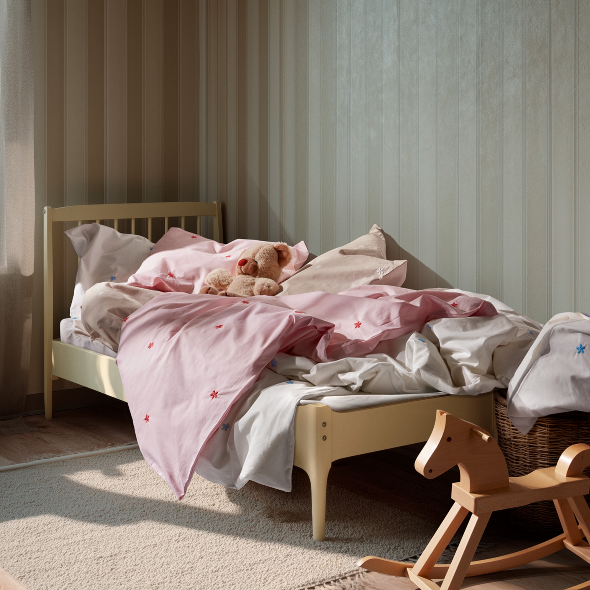 Voorpagina »Beddengoed » Beddengoed voor kinderen » Beddengoed voor baby's 70x100 cm JUNA beddengoed - 100% biologisch katoen - Daisy babybeddengoed 70x100 cm - Roze met geborduurde bloemen JUNA Scherpe prijs:54,49EUR Weinig op voorraad Aantal In winkelwagen Bekijk meer van:JUNA Artikelnr:607407-7 Lees onze beddengoedgids Bekijk ons grote assortiment lakens Bekijk ons grote assortiment dekbedden 70x100 Heb je vragen over het product? Ademend materiaal dat zorgt voor goed comfortBeddengoed dat perfect is voor kinderen met een gevoelige huidSlijtvaste kwaliteit die er was na was mooi blijft uitzien Dekbedovertrek: 70x100 cm - babybeddenset Kussensloop: 40x45 cm Materiaal: 100% biologisch katoen Kleur: Roze Ontwerp: Geborduurde rode bloemen Serie: Daisy Merk: Rosendahl - JUNA Sluiting: Dekbedovertrek en kussensloop met rits Wassen: 60° Drogen in droger: Ja Geschikt om te strijken: Ja Certificering: STANDARD 100 by OEKO-TEX®. Uw garantie dat het product vrij is van schadelijke chemicaliën voor de gezondheid. Certificering: GOTS-gecertificeerd (GOTS Organic Certified by CU1026087). Uw garantie voor biologische textielproductie met aandacht voor milieu, verantwoordelijkheid en vrij van schadelijke chemicaliën gedurende het gehele productieproces. Babybeddengoed 70x100 cm - Daisy van JUNA Creëer een veilige nachtrust met dit mooie babybeddengoed uit de JUNA Daisy serie. Het klassieke roze ontwerp met geborduurde rode bloemen geeft een tijdloze en rustige uitstraling. Het beddengoed is gemaakt van 100% biologisch katoen in een exclusieve percaleweving, wat zorgt voor een zachte, gladde en ademende kwaliteit - perfect voor de tere huid van de baby. De fijne percaleweving geeft een lichte en aangename textuur, terwijl het materiaal slijtvast is en er was na was mooi blijft uitzien. De kleine geborduurde bloemen creëren een knusse en rustige uitstraling die perfect past in elke babykamer. Het beddengoed is zowel GOTS-gecertificeerd als OEKO-TEX® gecertificeerd, wat garandeert dat het is geproduceerd met aandacht voor milieu, verantwoordelijkheid en zonder schadelijke chemicaliën - een veilige keuze voor de kleintjes. Bekijk alle babybeddengoed hier JUNA - Rosendahl JUNA maakt deel uit van Rosendahl Design Group en staat voor woontextiel met aandacht voor zowel esthetiek, kwaliteit als verantwoorde productie. Het merk combineert klassiek Scandinavisch design met hedendaagse trends en creëert textielen die persoonlijkheid en warmte in huis brengen. JUNA is vooral bekend om haar kleurrijke en speelse universum, waar patronen, strepen en grafische expressies hand in hand gaan met zachte materialen en hoog comfort. Met een sterke focus op het milieu gebruikt JUNA gecertificeerde materialen en verantwoorde productiemethoden, zodat je textiel met een gerust hart kunt kiezen. Bekijk het volledige assortiment van Juna hier Terug naar Beddengoed voor baby's 70x100 cm