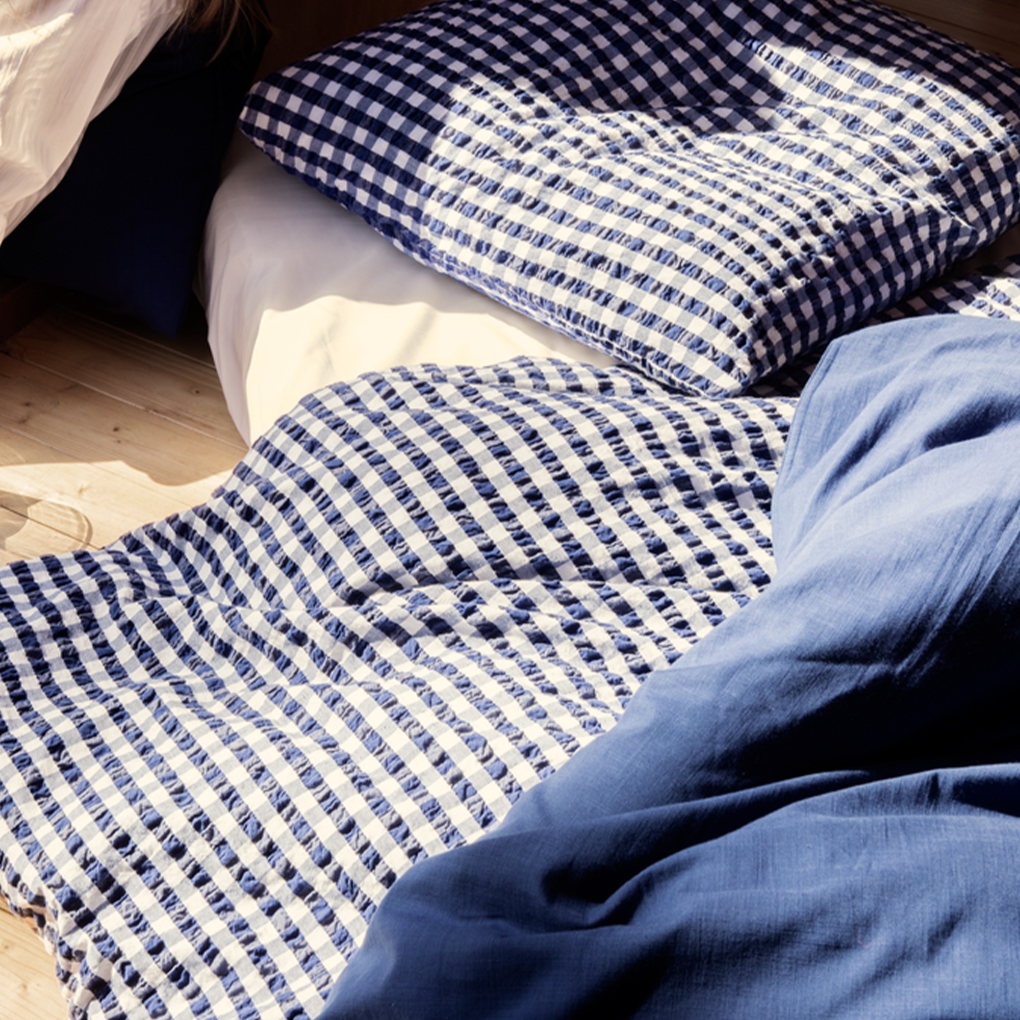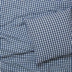 Het zachte katoen in combinatie met de gekreukte structuur geeft een unieke luxegevoel. Tegelijkertijd is het beddengoed praktisch in het dagelijks gebruik, omdat het geen strijken vereist en zijn mooie uitstraling behoudt was na was. De fijne ruiten in donkerblauw geven een rustige en stijlvolle look die past in zowel moderne als klassieke slaapkamers.
