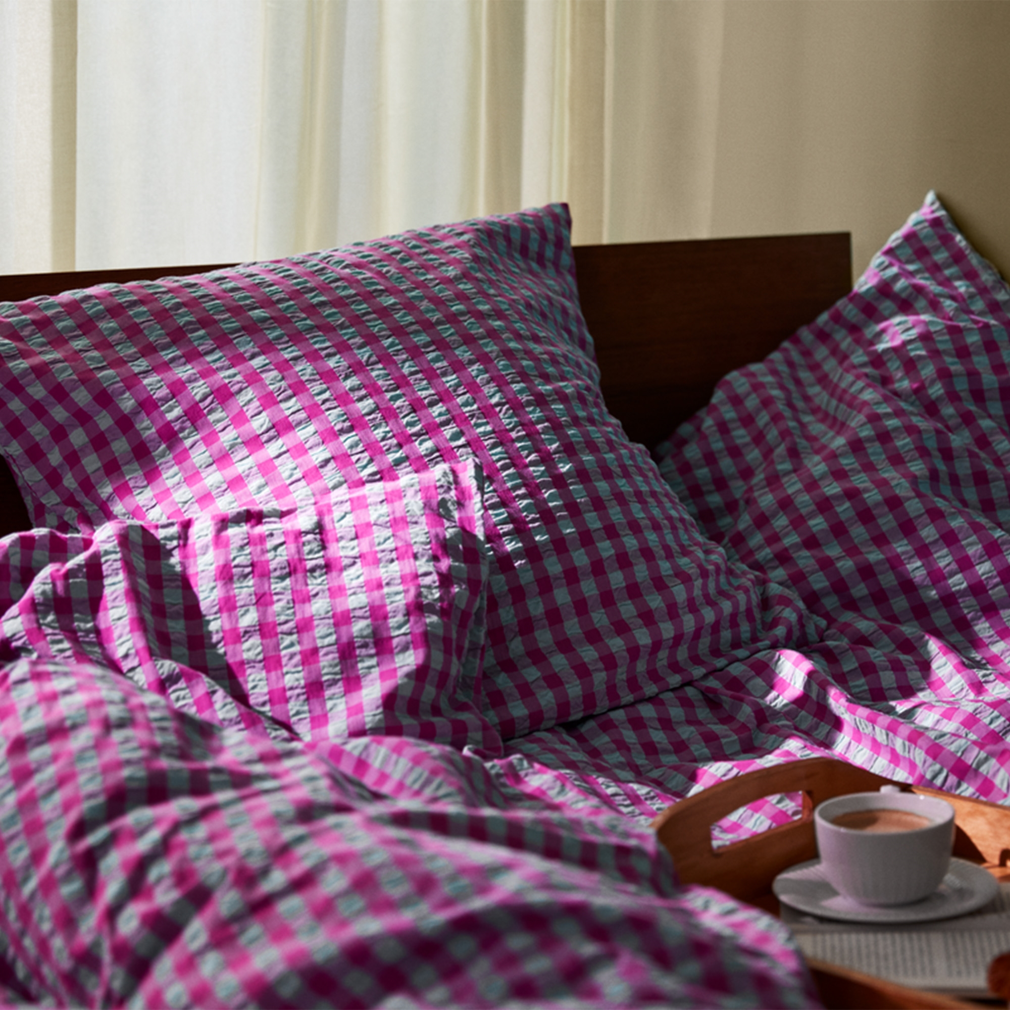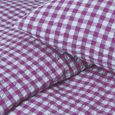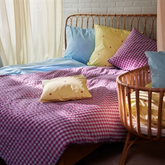 Het zachte katoen gecombineerd met de gekreukelde structuur geeft een unieke luxegevoel. Tegelijkertijd is het beddengoed praktisch in gebruik, omdat het geen strijkwerk vereist en zijn fraaie uitstraling behoudt was na was. Het fijne ruitpatroon in paars zorgt voor een rustige en stijlvolle look die past in zowel moderne als klassieke slaapkamers.