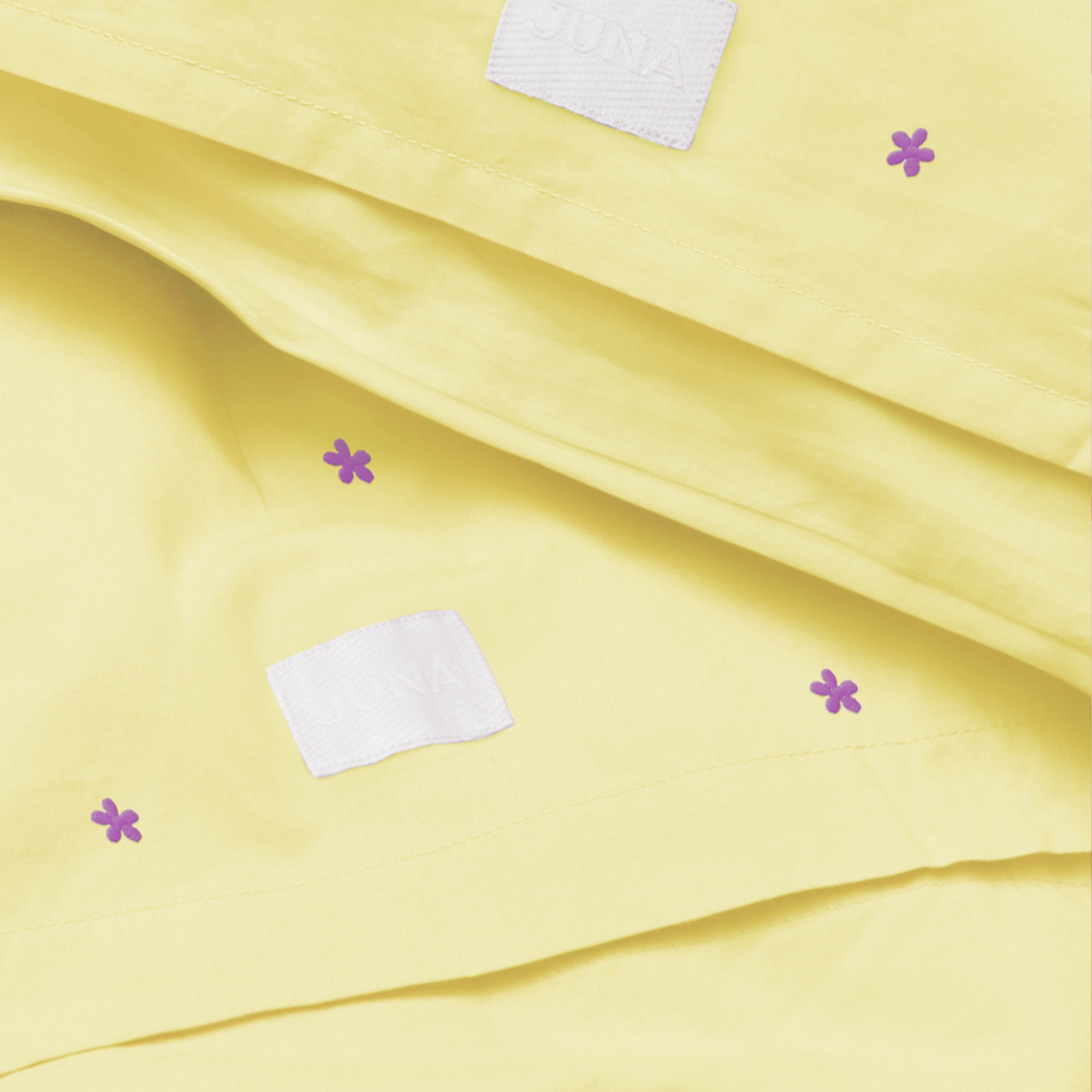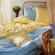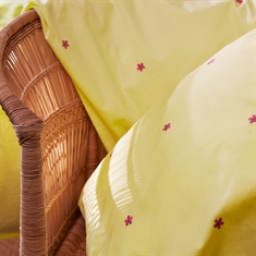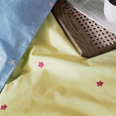 Daisy beddengoed met extra lengte in biologisch katoen - geel met geborduurde bloemen
