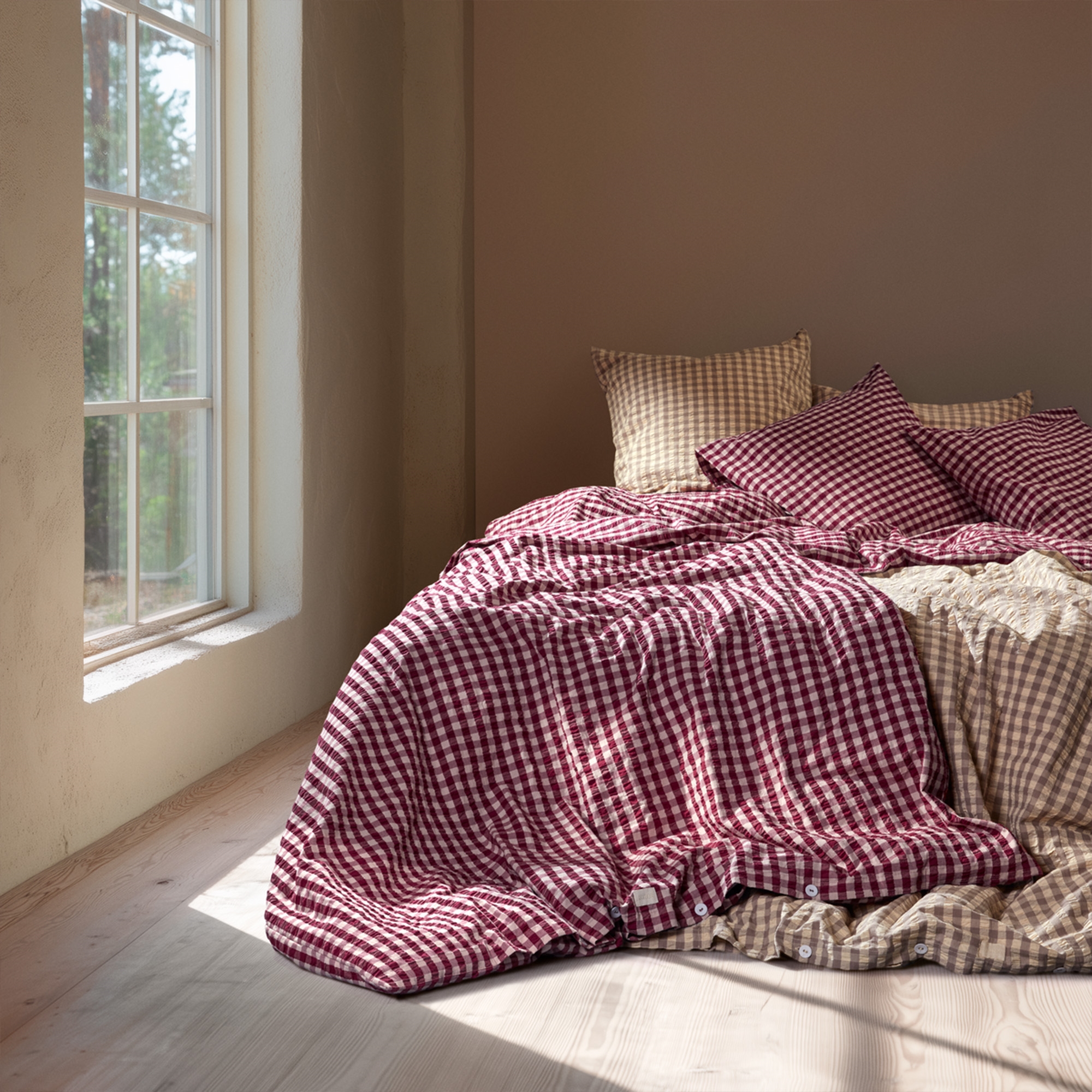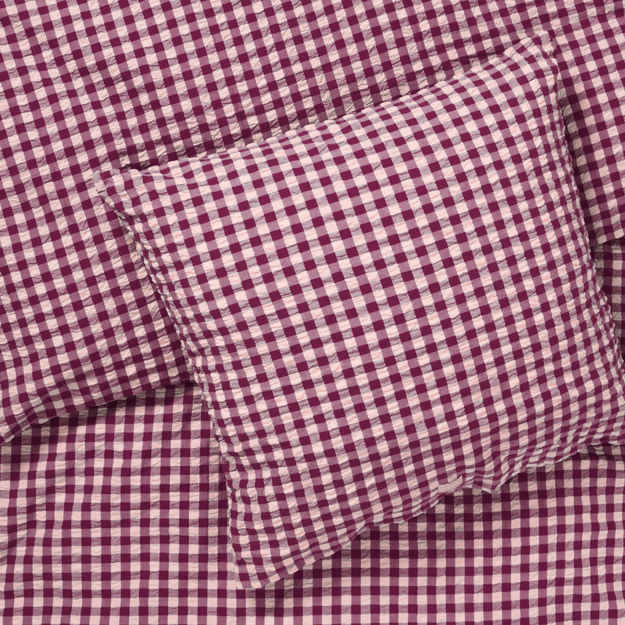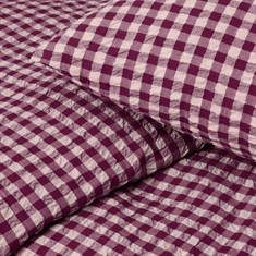 De zachte katoen gecombineerd met de gekreukte structuur geeft een unieke luxegevoel. Tegelijkertijd is het beddengoed praktisch in het dagelijks gebruik, omdat het niet gestreken hoeft te worden en zijn mooie uitstraling behoudt was na was. De fijne ruiten in pruim en roze geven een rustig en tijdloos uiterlijk dat past in zowel moderne als klassieke slaapkamers.