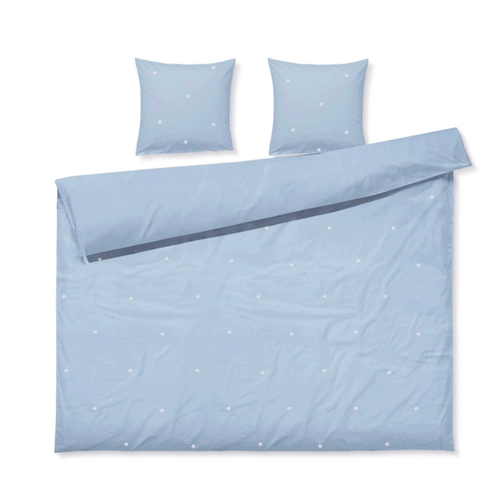 Daisy dubbel dekbedovertrek in biologisch katoen - blauw met geborduurde bloemen